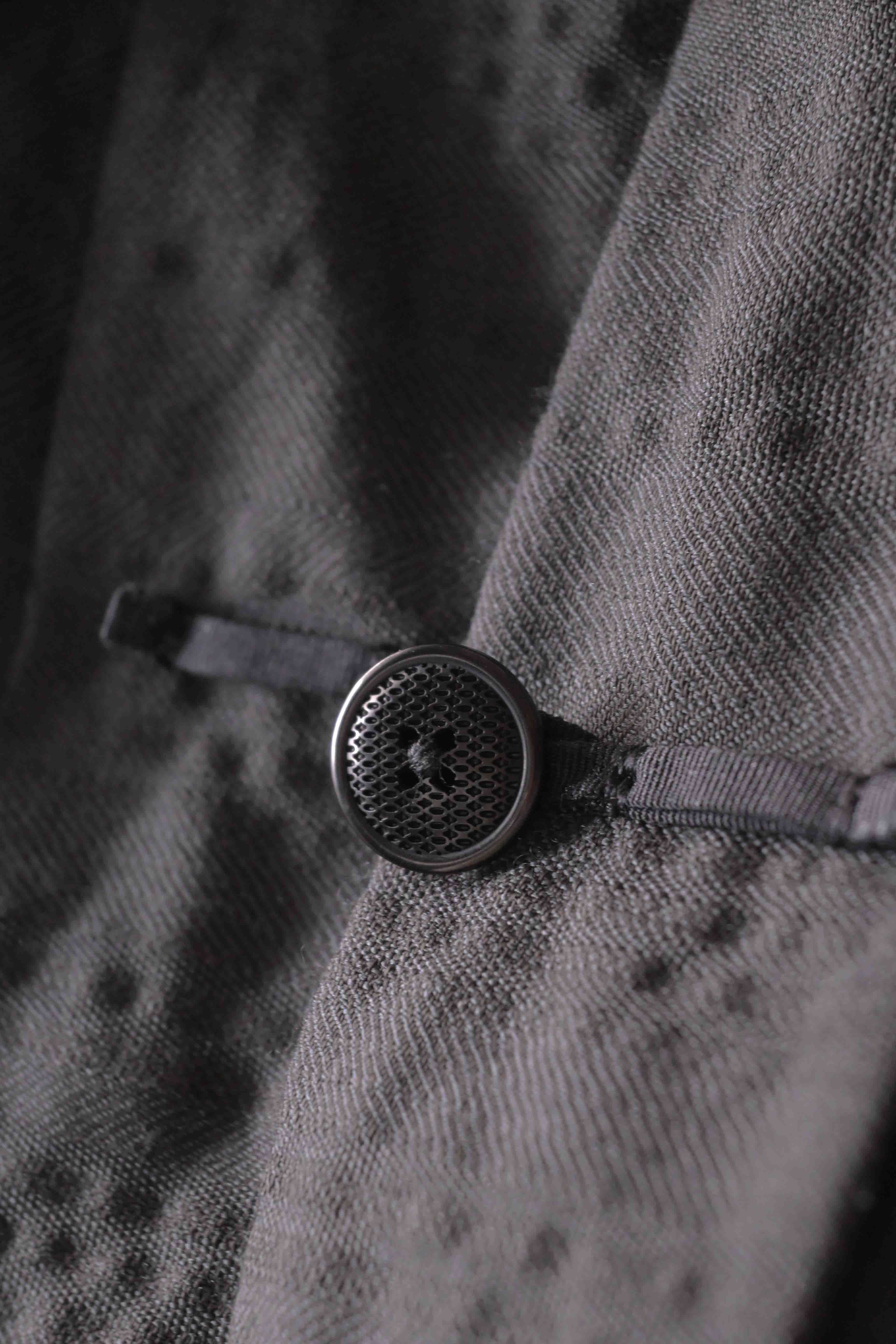 ...and an exquisitely elegant new interpretation of the classic tángzhuāng knotted front closure system using extensive handstitched and hand dyed pure silk grosgrain woven tapes and gorgeous artisan-made incision-cut real horn button designs made only for us by the world’s greatest living buttonmakers—Claudio and Cinzia Fontana in Parma, Italy. all entirely handstitched in pure silk Bozzolo Reale Milano Seta threads (which required at least 25 minutes to create each closure assembly)...