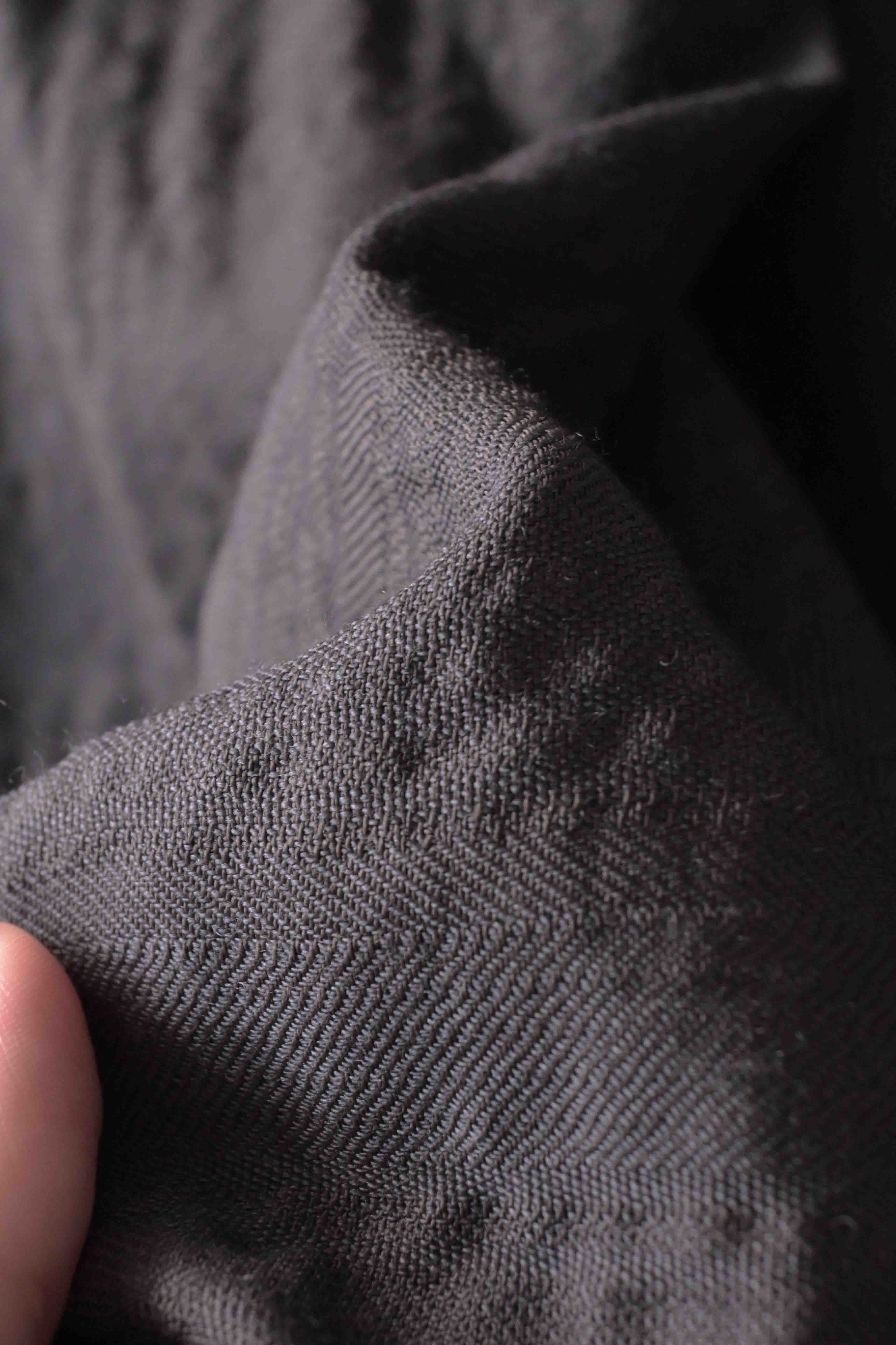 This super limited edition GBS Evolution IX.2 EV9WJ03 handmade jacket design is the only piece of its kind made by hand in the entire world. It was created exclusively from our original modified dolman sleeved wide body Asian historical jacket pattern from our extensive tailoring research, and cut using an elegant lightweight 100% pure wool broken herringbone weave luxury suiting fabric woven only for us by the world's leading research fabric maker -- Luigi Parisotto in Sarcedo, Vicenza Italy...