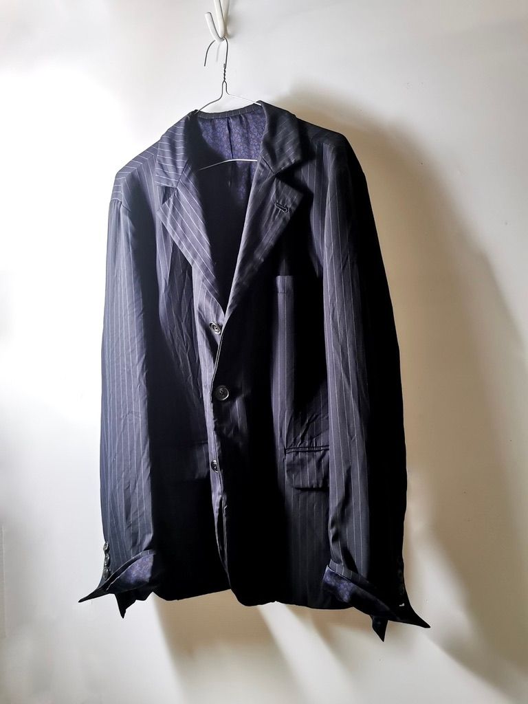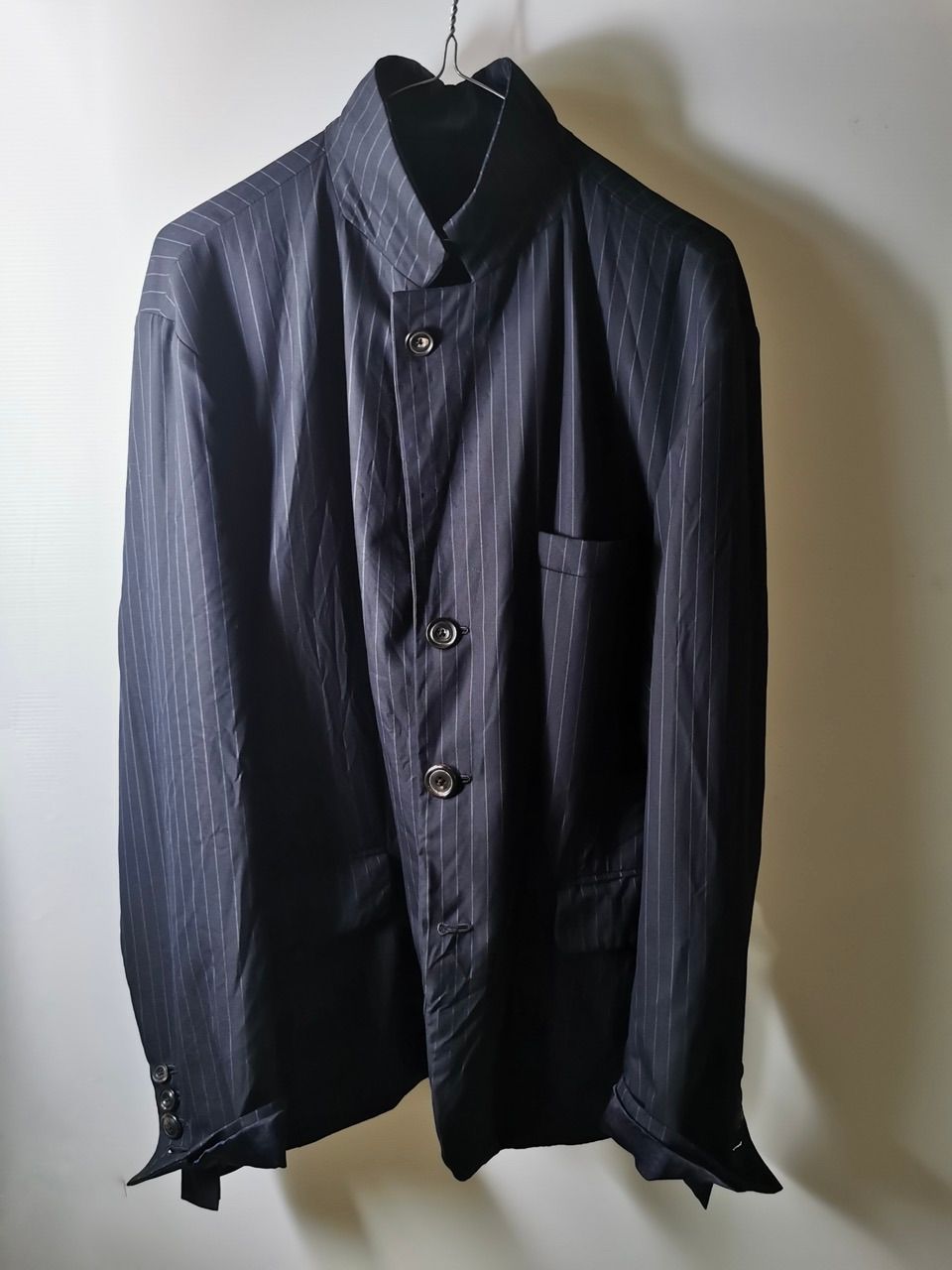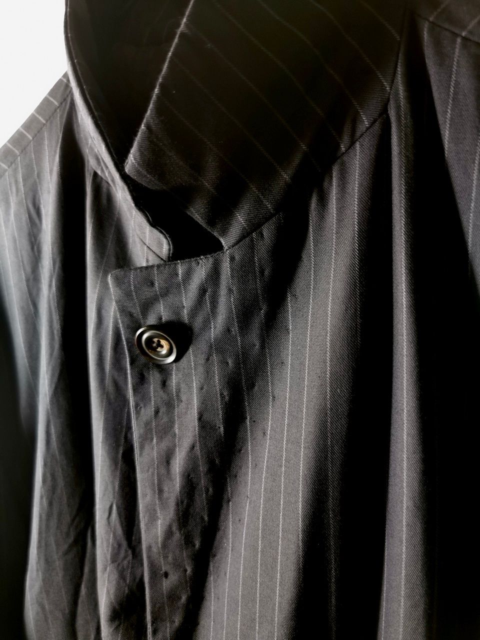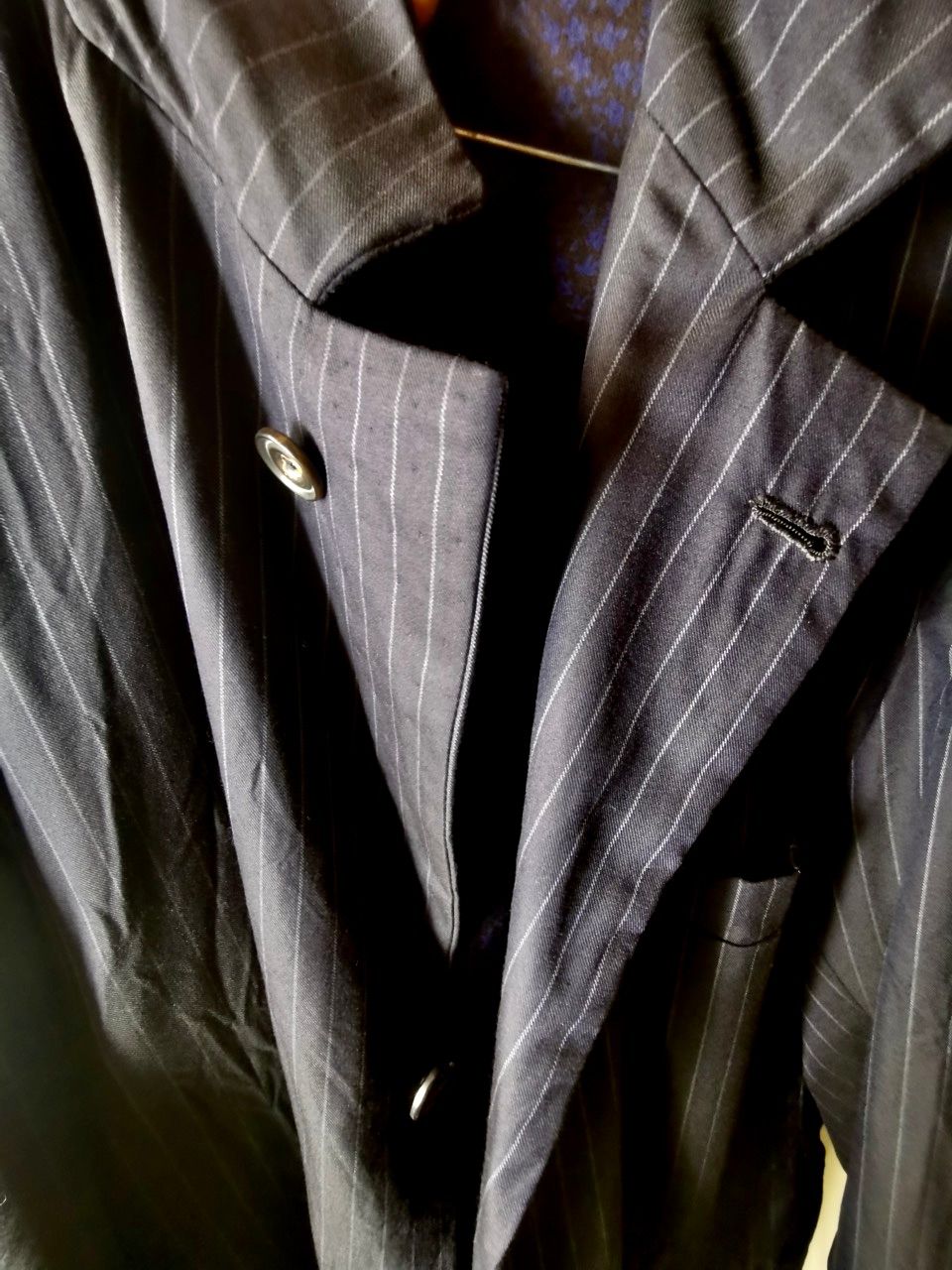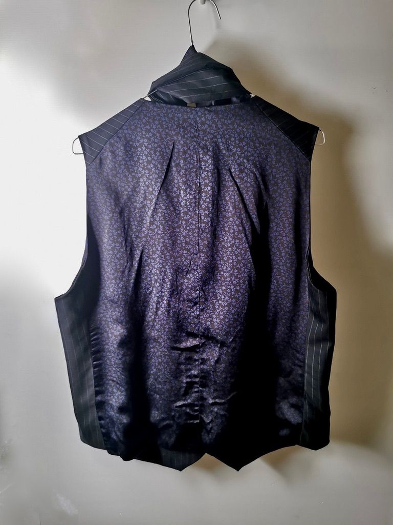 The special jacket, waistcoat, scarf and trouser design represents the world’s cutting edge of extreme handmade clothes-making technology and features very special old-fashioned canvas horsehair front and collar interfacings totally hand-padstitched with over 1000 invisible hand stitches inside to give it its remarkable natural roll line along lapels and collar...