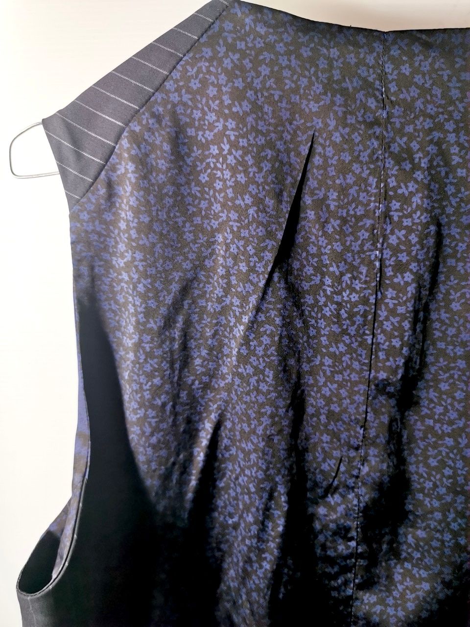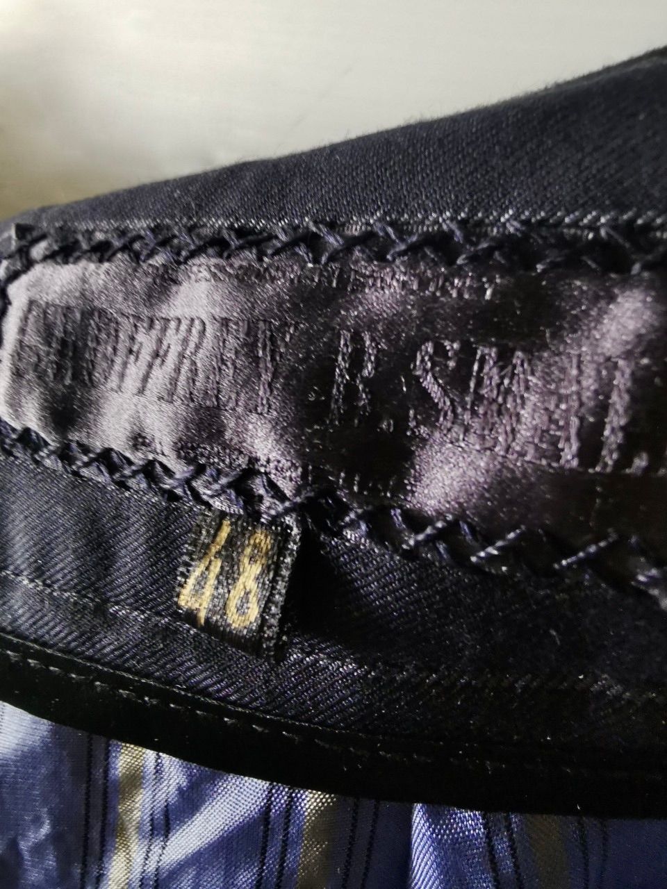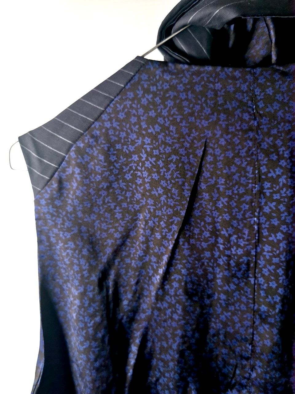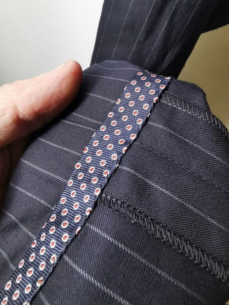 Inside the jacket, waistcoat and trouser... all major fitting seams are given generous 2,5 cm seam allowances to allow for ample alterations capability. This approach also requires more upfront fabric investment and costs but can greatly extend the usable life and service of the suit to adapt to its owner's changing body shape and dimensions over his or her lifetime--a key factor in understanding its long-term value for money spent and its low net costs per wear over time. The suit also features impeccable finishing throughout including a beautifully executed center-back vent construction on both the jacket and waistcoat for elegance and ease of movement and extraordinary interior trouser work including the real hand sewn Italian jaquard weave taped hemlines (not machined) that required over 2 hours of expert work to achieve their beautiful clean finish and superior durability and tailored elegance...