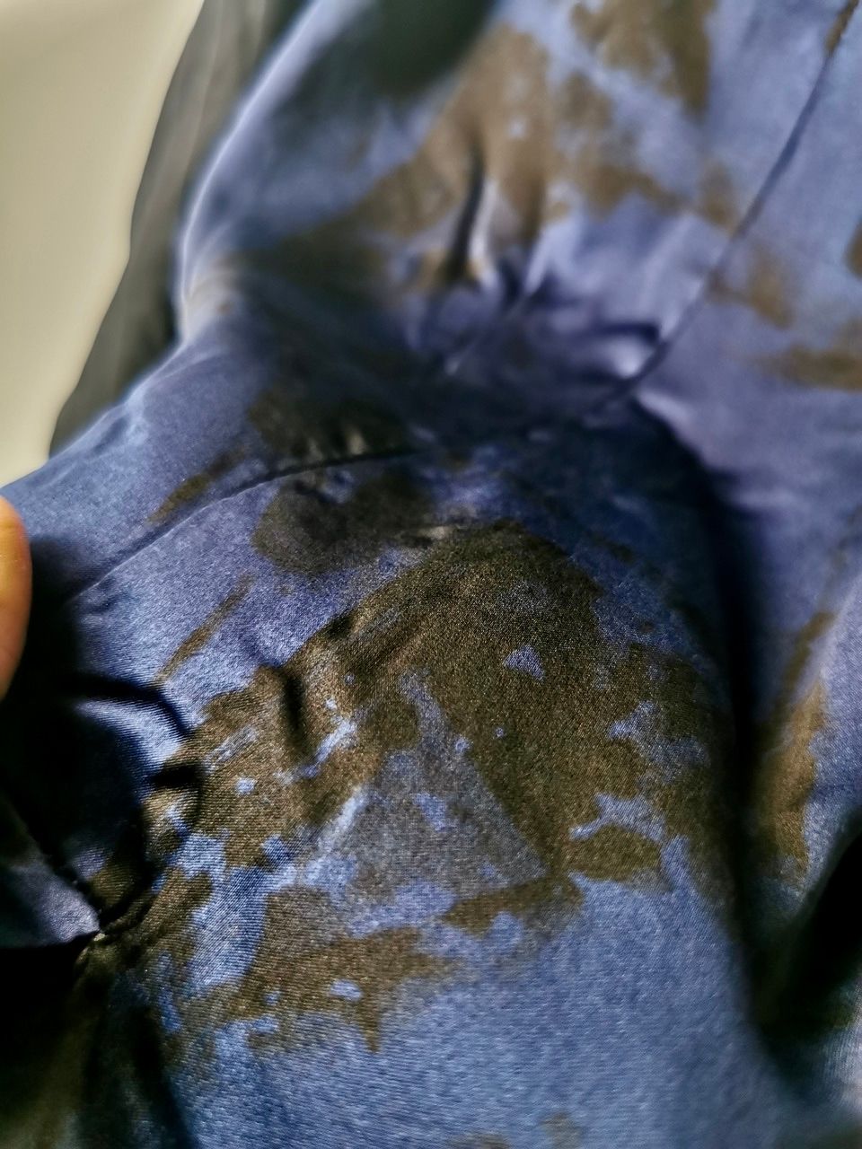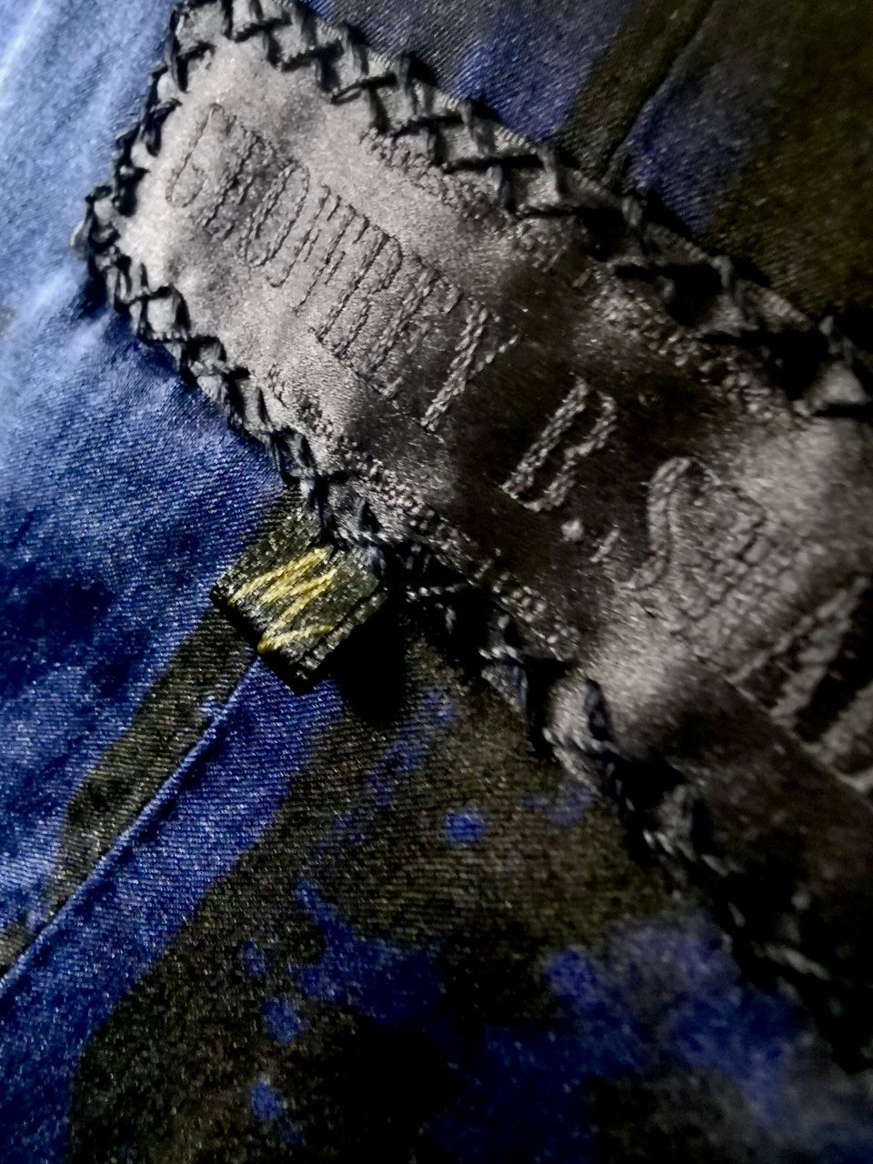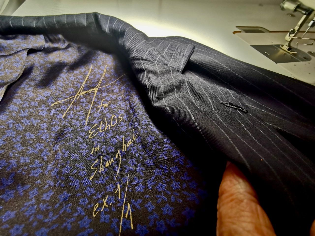 The label itself is pure Italian silk and costs a minor fortune relative to our competitors... woven in Torreglia by Mion, the best label makers in the world- it's the first label in the luxury industry without a single molecule of plastic in it. And that includes each of the entire garments--all natural biodegradable premium precious materials and components--zero plastics anywhere. That's real sustainability, not greenwashing corporate luxury brand bs. And you won't get that scratchy itchy feeling on your skin from the poly and plastic labels they use. It's also just plain beautiful, and because it's pure silk, it lends itself to be made even more beautiful in our amazing GBS "Tintoria" hand dye operations at Cavarzere Venezia, where we custom-designed and personalized if for this single special coat design, and beautifully attached it using pure silk threads all by hand...