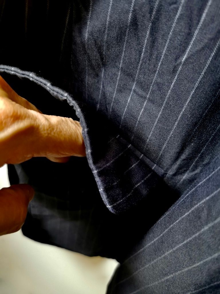 Put your hands in any one of the no less than 11 all hand-built pockets of this GBS supersuit and you’ll feel the difference immediately. The all hand cut tailored front besom flap and welt pockets and interior besom pockets required between 20 -30 minutes to expertly constuct each one, and are all fully self-lined in the extremely expensive pure hyperlux Super 210's "Arcadia 13-micron wool suiting fabric instead of skimping and using cheaper pocket lining materials like other luxury brands do. This long-time value approach to maximum comfort costs more as it uses more of the precious fabric but results in incredibly soft comfort for you when you put your hands in the pockets of this suit. It can actually help reduce your stress and is part of the wonderful feel and experience of wearing the suit...