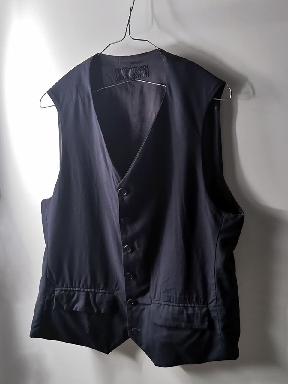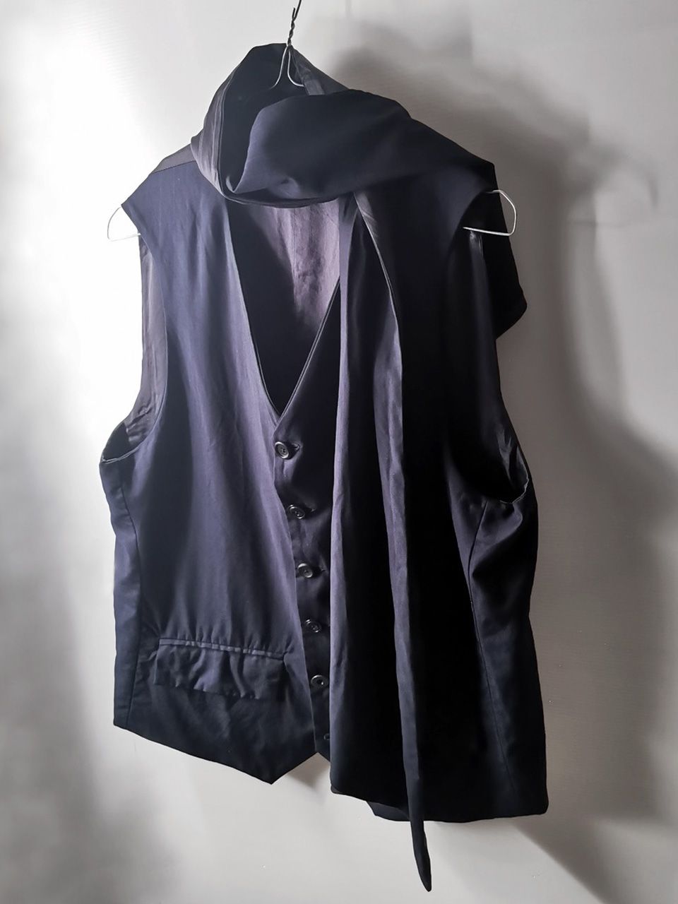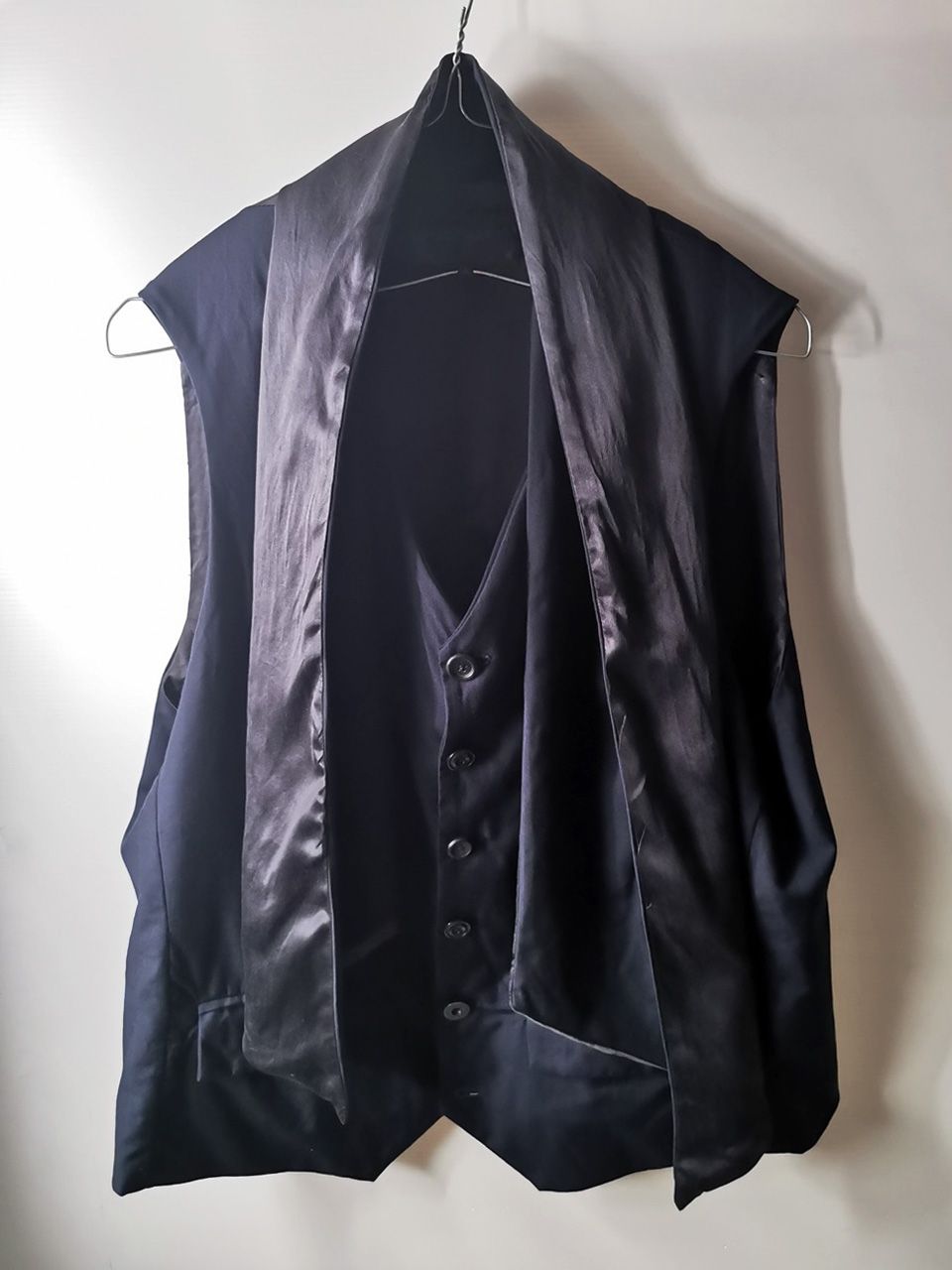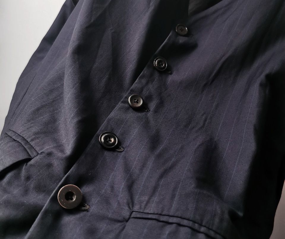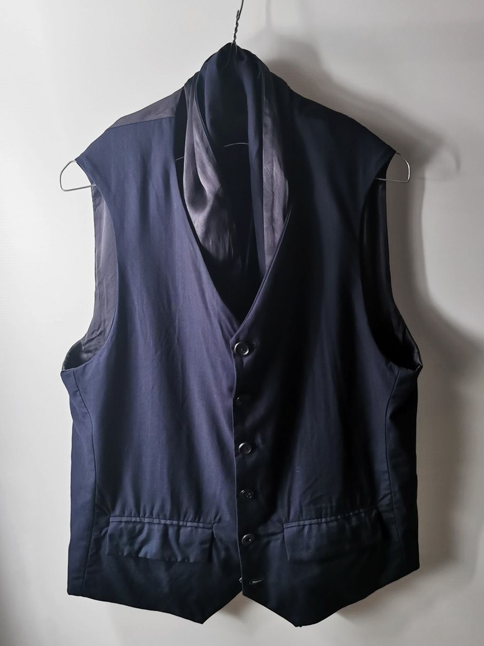 The special design set represents the world’s cutting edge of extreme handmade clothes-making technology from its modified 19th century 6-button single breasted waistcoat vest and cravatte scarf pattern from our extensive research to its impeccable hand cut flap besom pockets, each
