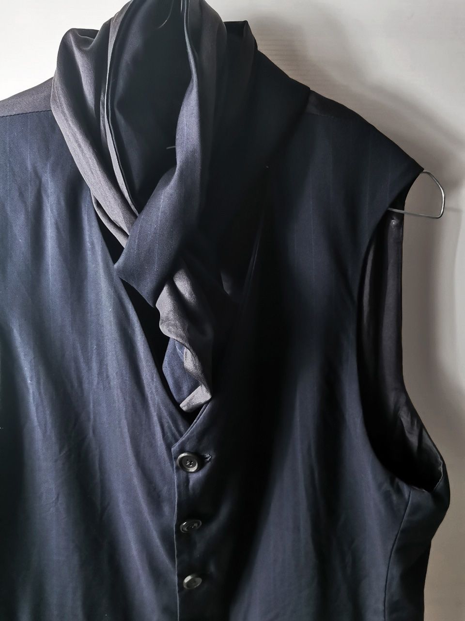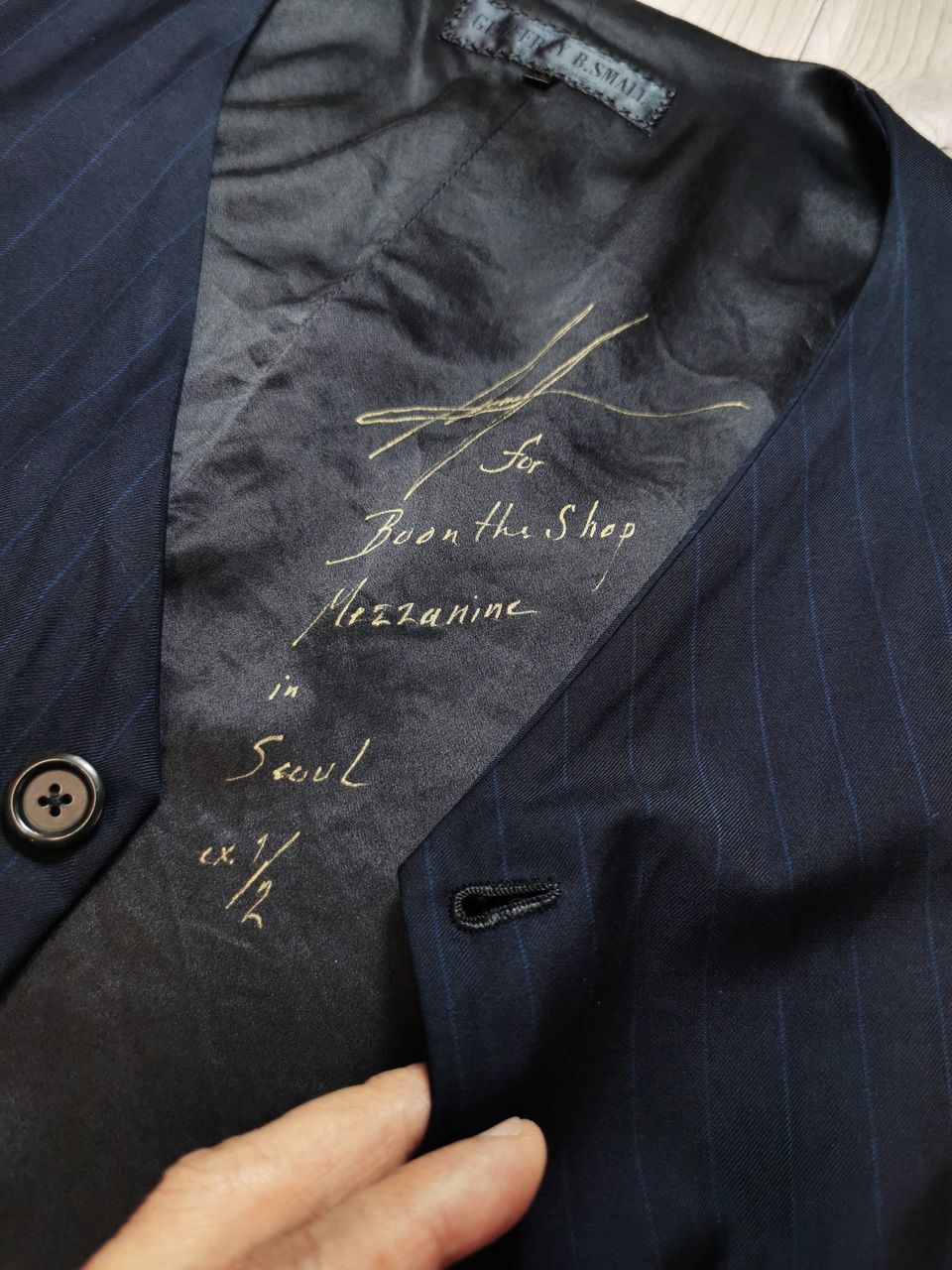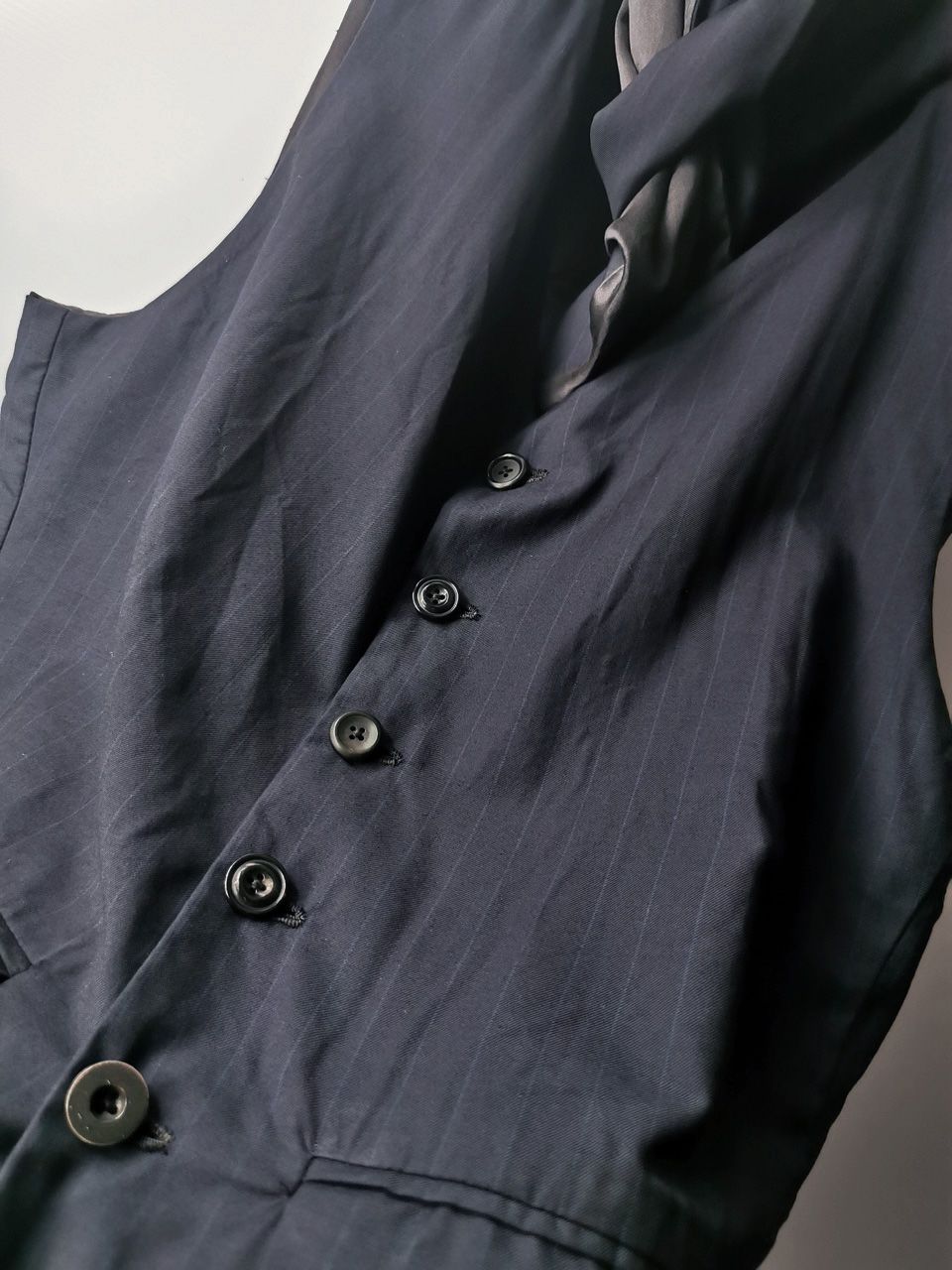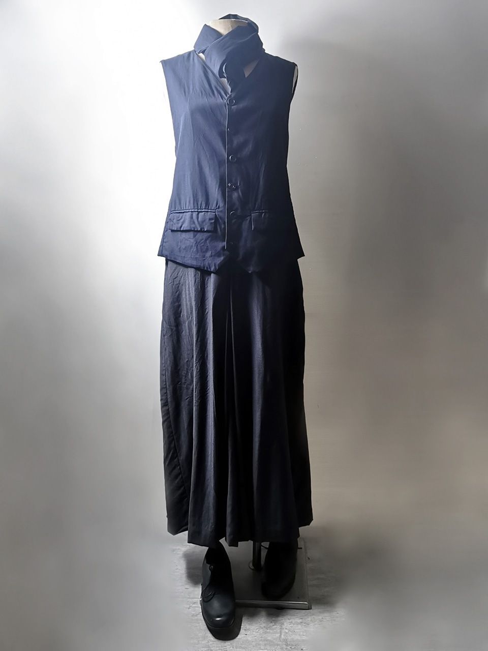 The special design set represents the world’s cutting edge of extreme handmade clothes-making technology from its modified 19th century 6-button single breasted waistcoat vest and cravatte scarf pattern from our extensive research to its impeccable hand cut flap besom pockets, each