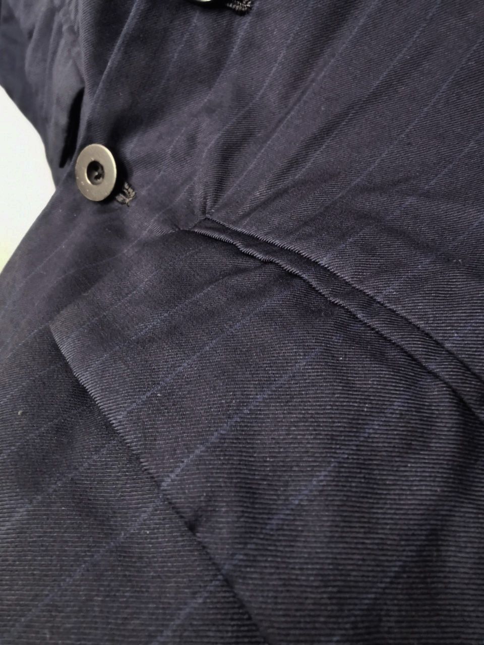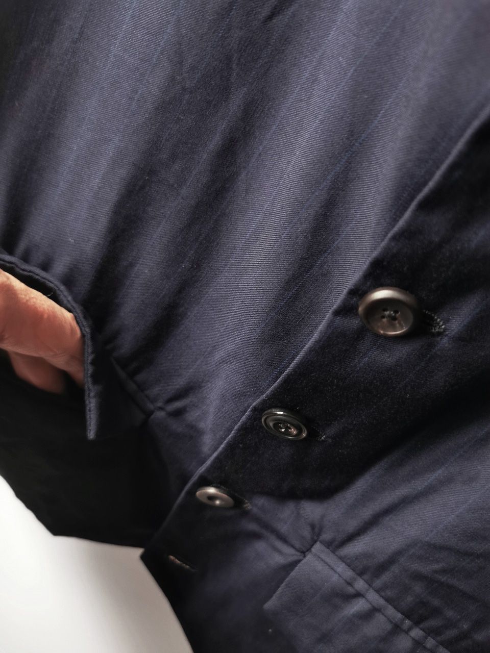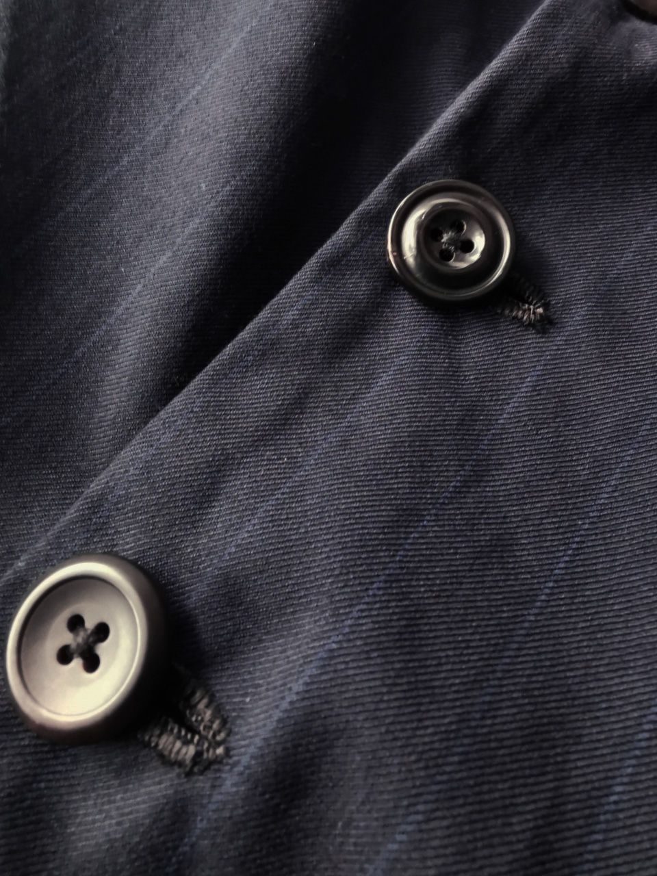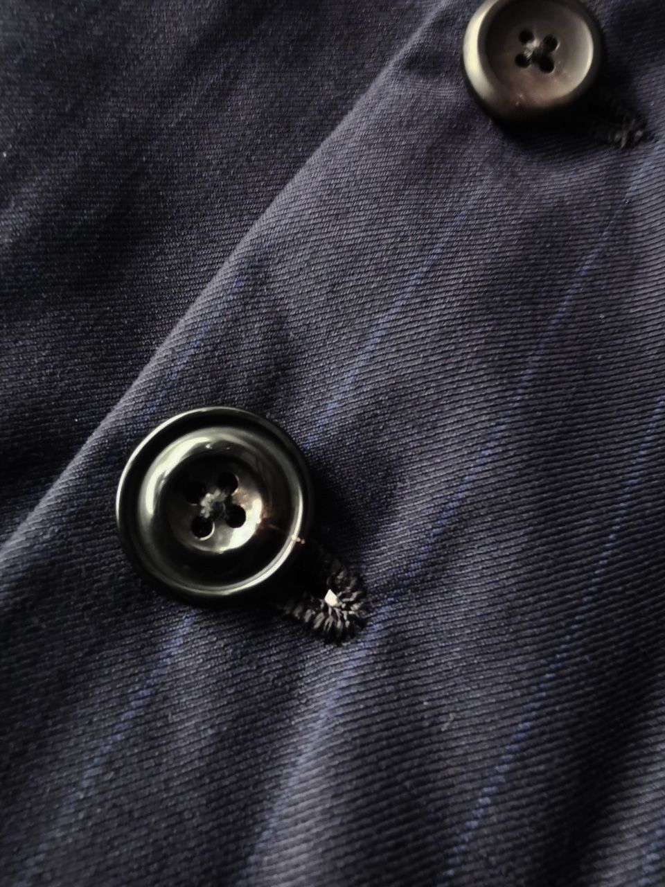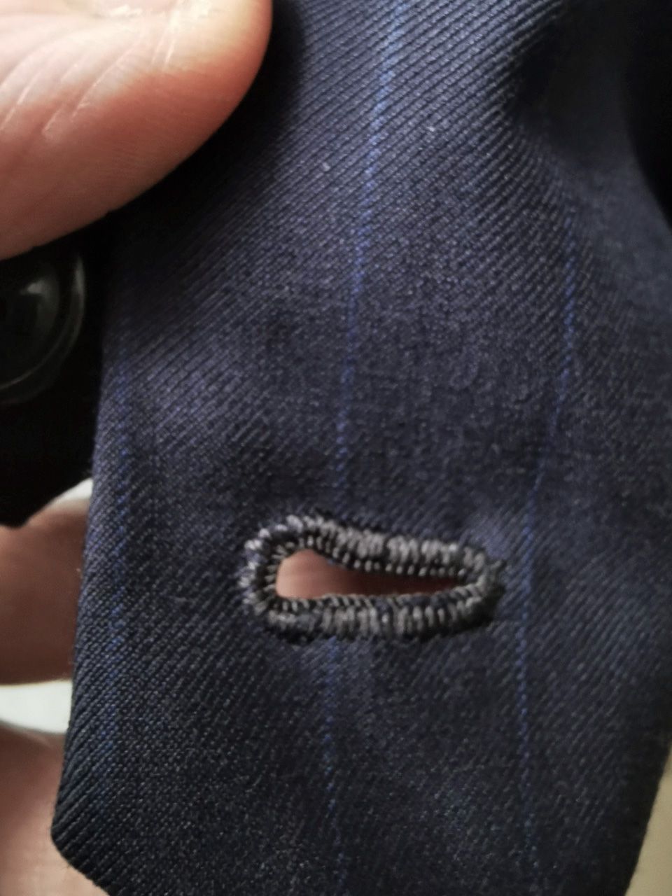 ...and a remarkable mixed button design story crafted only for us in real horn by the world’s greatest living buttonmakers- Claudio and Cinzia Fontana in Parma Italy; and no less than six of our signature real hand stitched buttonholes (each one required 12-14 minutes to cut and sew on the super finely woven cloth-over an hour of expert work was needed for the creation of the buttonholes alone) in luxurious pure silk Bozzolo Reale Milano Seta threads currently costing at wholesale over 1.40 euro for a single meter of thread...