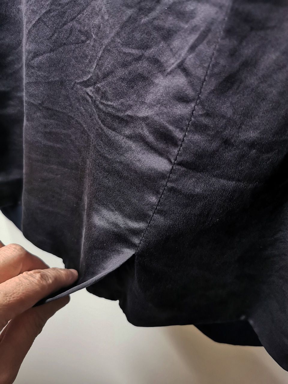 fully self-lined in the original precious fabric for maximum comfort and durabilty, with hand cut center-back vent and exquisite all clean finished fully-lined interior construction...