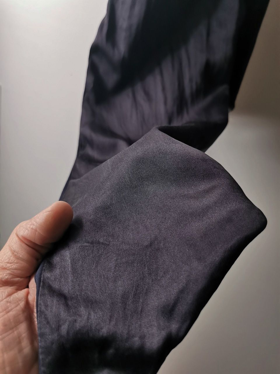 The piece also features our world leading pure silk hand dyed label created exclusively for us by Mion SpA in Torreglia which is the most expensive label in the luxury industry and the first to completely eliminate plastic polyester yarns in it—beautifully attached entirely by hand using pure silk threads...