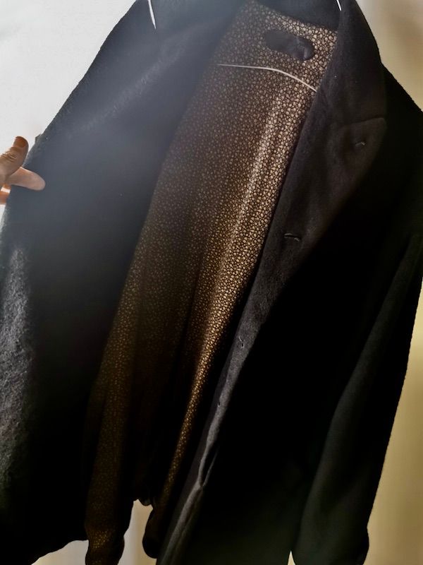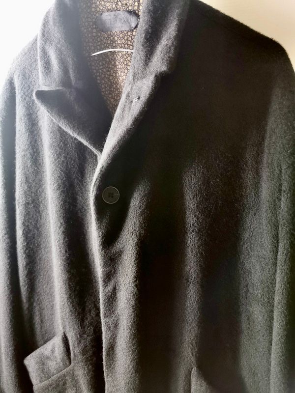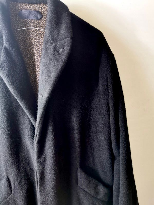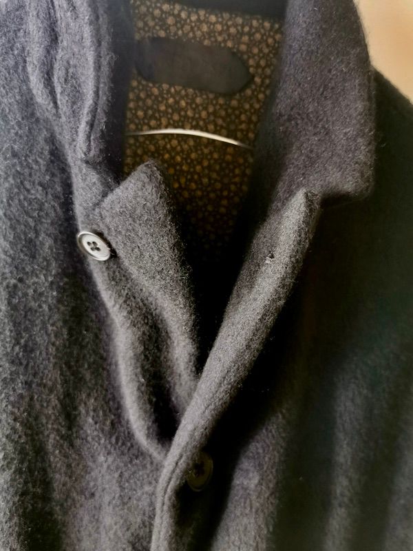 THIS special version of the super limited edition GRC06 archive coat design is the only piece of its kind in the entire world. It was created exclusively by hand for Liberte in Kobe from our original A-line fly front 5-button coat pattern, from our extensive tailoring research, and cut using a superlux 3-ply 550 gram pure Alashan cashmere coating cloth that was made by the world’s oldest still operating woolen mill and tmost respected cashmere fabric makers- Fratelli Piacenza 1733 in Pollone Biella, combined with a special lining story of pure Como Silk 16 momme raso satin exclusive Persian floral print luxury linings made only for us by the legendary Brenna family in Como, the world’s leading center for fine silk fabric creation then specially hand dyed and treated in our world famous GBS Superworkrooms using a process that required over 15 hours of master work to achieve its unique colors, patina effects, and incredible softness.The design features beautifully hand crafted fly-front construction, real hand-cut besom welt pockets, cuff tabs with beautiful hand-stitched detailing work in pure silk threads, impeccable clean-finished fully lined interior work, remarkable hand sewn engraved incision-cut design real horn buttons made exclusively for us by the world’s greatest living buttonmakers- Claudio and Cinzia Fontana in Parma, and no less than seven of our signature real hand-stitched buttonholes (that required at least 10-15 minutes to create each one) in luxurious pure silk Bozzolo Reale Milano Seta threads. The piece also features our world leading hand dyed pure silk label created exclusively for us by Mion SpA in Torreglia which is the first label in the luxury industry to completely eliminate plastic polyester yarns in it, and comes with a deluxe matching pure silk GBS handmade sustainable triple filtration tailor's respiratory community mask as standard equipment for ongoing Covid-19 pandemic protection wear and health safety. Variations in color and color density are not imperfections or irregularities, but specific characteristics of the special fabric and hand making technique. Please treat buttons and buttonholes with care. We recommend professional clean only or hand wash cold water only. Do not put in washing machine.