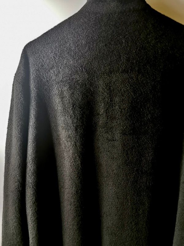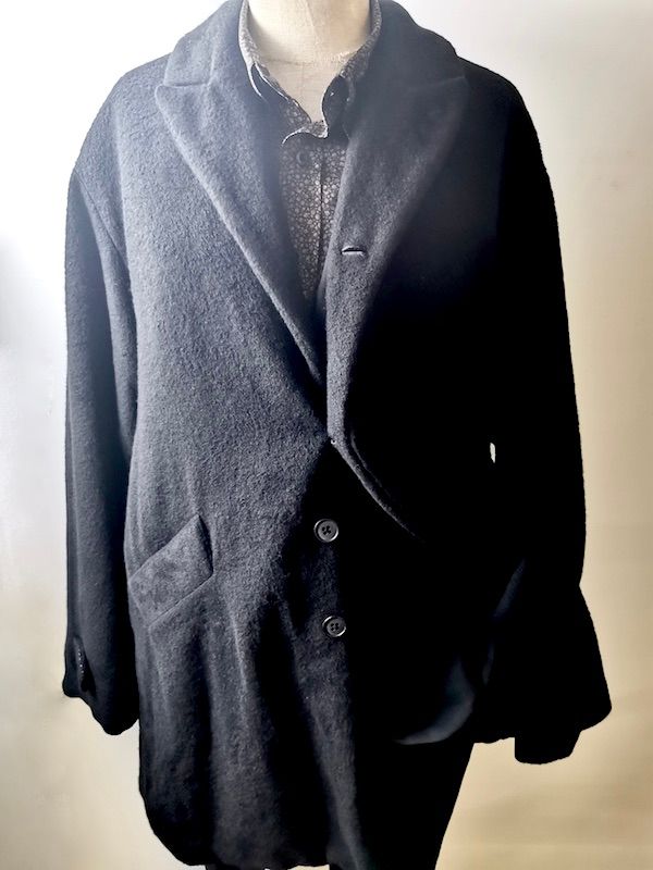 Front, back and side views of this very special supercoat showing the extraordinary knap and depth of the triple pure Alashan cashmere yarn coating cloth - at a whopping 550 grams per linear meter, the most plush and sumptous of its kind in the world one of Piacenza's top masterpieces- at a wholesale cost of almost 400 euro per meter, there is already over one thousand euros in primary fabric cost alone before we even begin to cut and build the piece-- the cloth is further enhanced and rendered even more beautiful and more soft by our own unique and special hand dyeing and hand washing treatments performed excclusively in our world-famous GBS Superworkrooms at Cavarzere Venezia... resulting in a feel of softness and lightness that is nothing short of amazing.