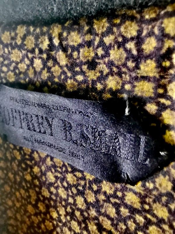 The special version of the GRC06 was cut using a superlux 3-ply 550 gram pure Alashan cashmere coating cloth that was made by the world’s oldest still operating woolen mill and the most respected cashmere fabric makers- Fratelli Piacenza 1733 in Pollone Biella, specially hand dyed and treated in our world famous GBS Superworkrooms using a process that required over 15 hours of master work toachieve its unique colors, patina effects, and incredible softness, then combined with a special lining story of pure Como Silk 16 momme raso satin exclusive Persian floral print luxury linings made only for us by the legendary Brenna family in Como, the world’s leading center for fine silk fabric creation...