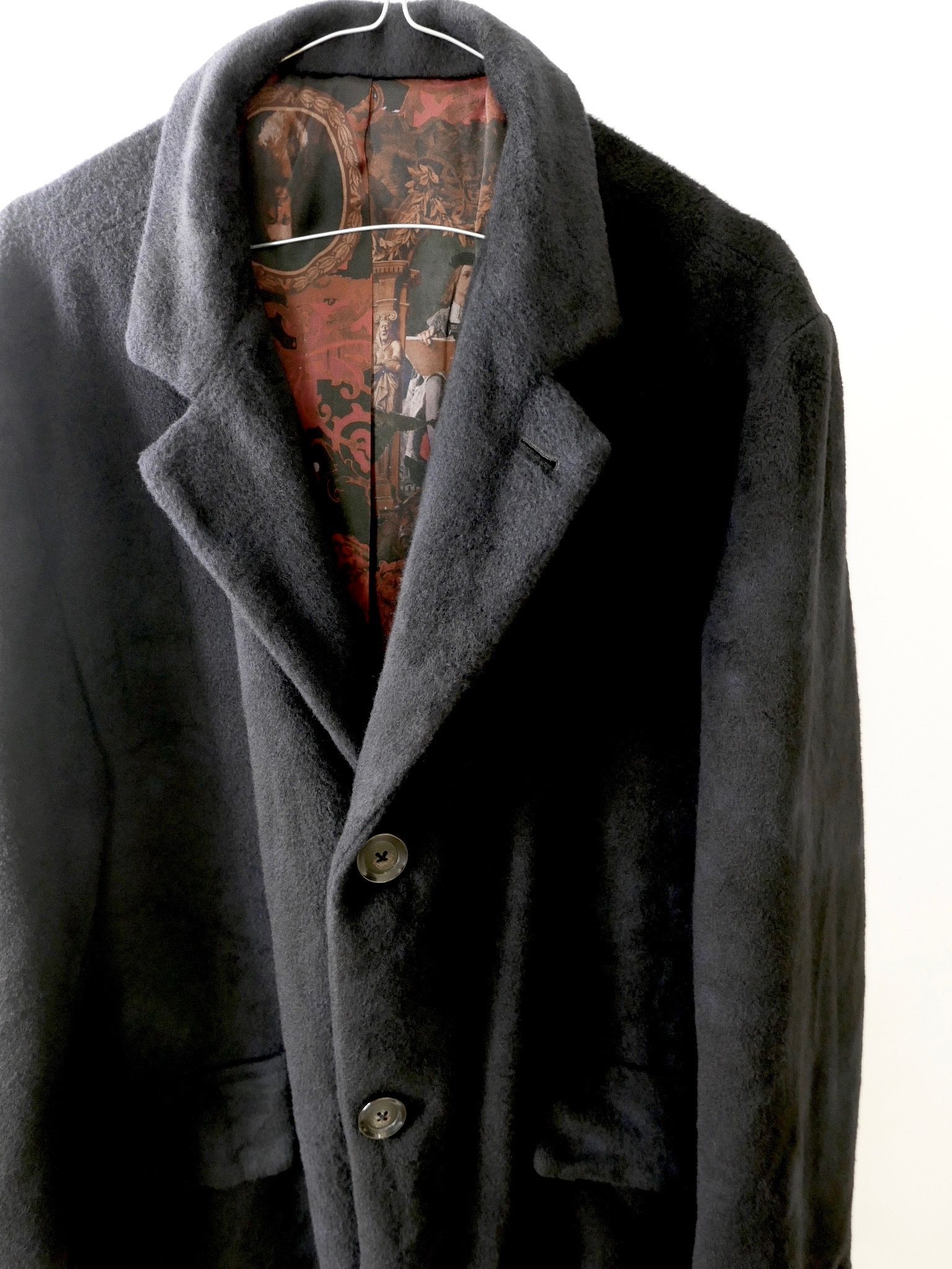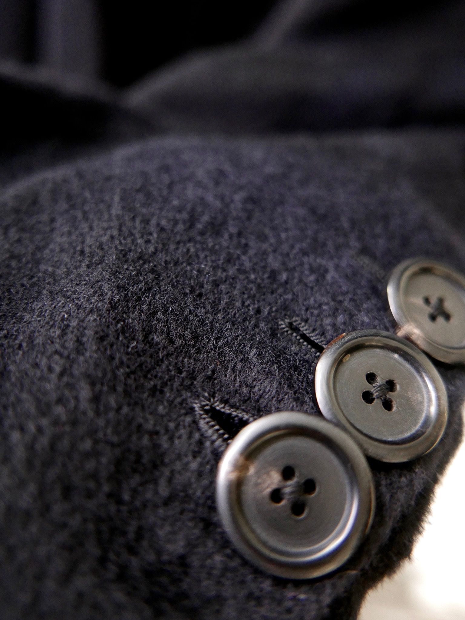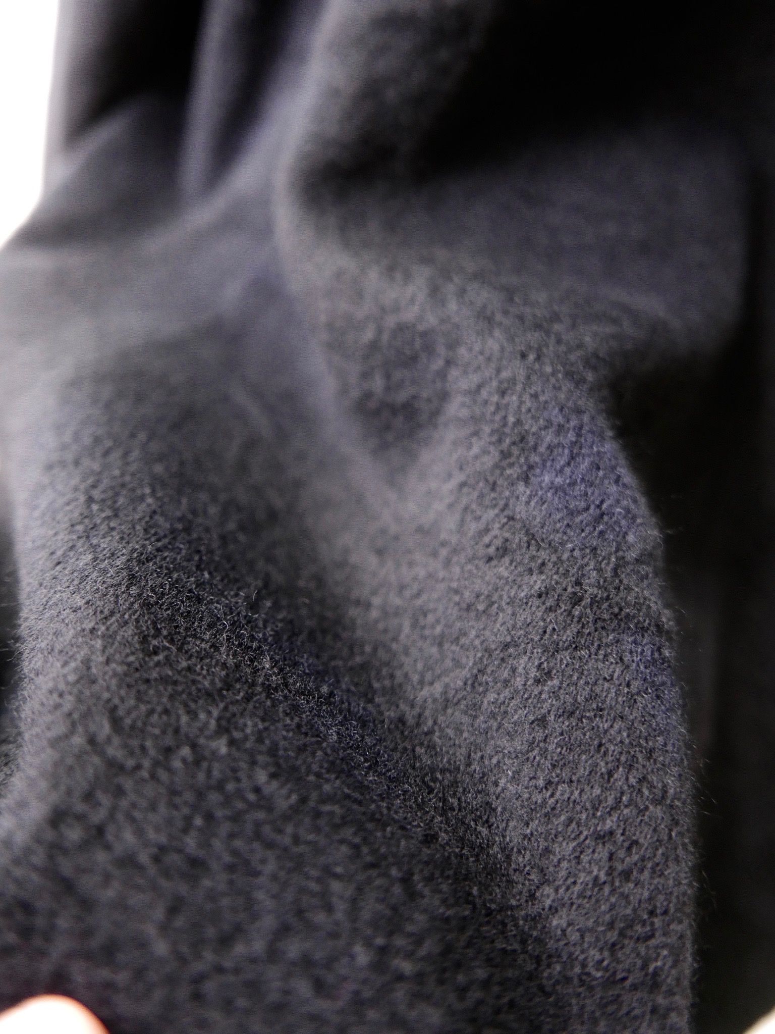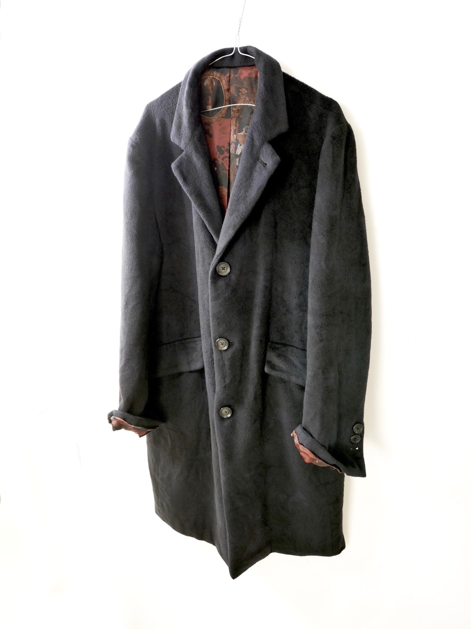 The special version of the super limited edition GRC08 long coat design is currently the only one of its kind made by hand in the entire world. It was created exclusively from our original 3-button notch-lapel coat pattern from our extensive tailoring research and cut by hand using a superlux, supersoft 540 gram 3-ply Alashan pure cashmere coating cloth woven in Pollone Biella, Italy, by the oldest woolen mill and most respected cashmere makers in the world, Fratelli Piacenza 1733 SpaThe piece was then specially hand dyed, washed and treated in our workrooms at Cavarzere Venezia using an intricate series of processes which required over 20 hours of painstaking expert work to achieve its beautiful colors, chiaroscuro patina effects, shaping and softness.