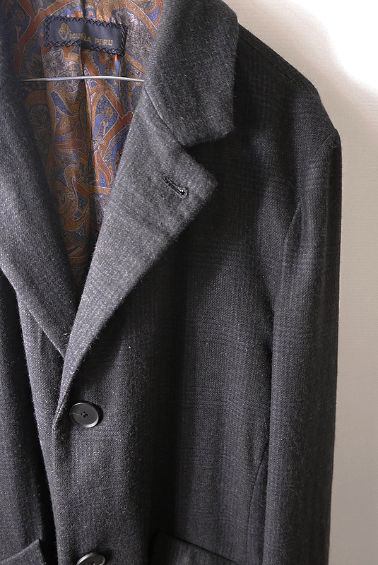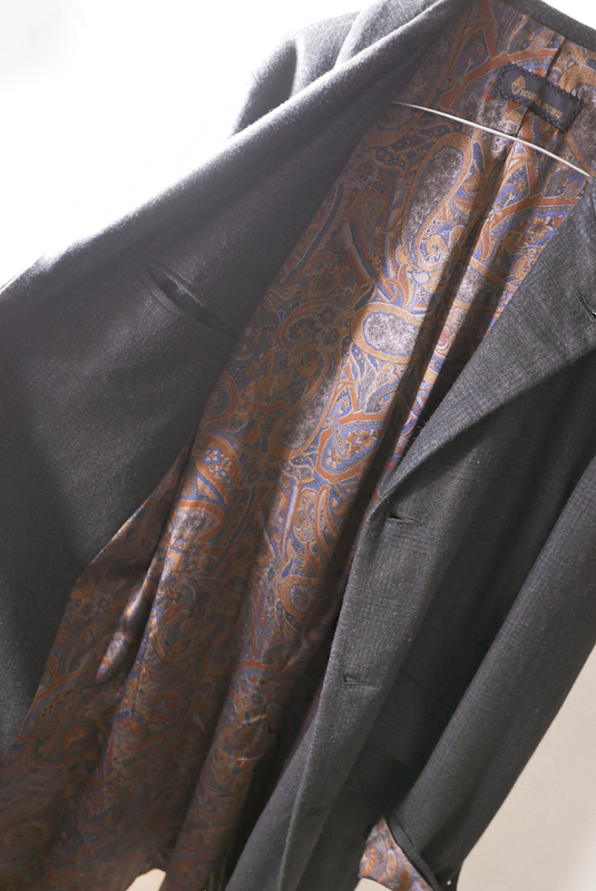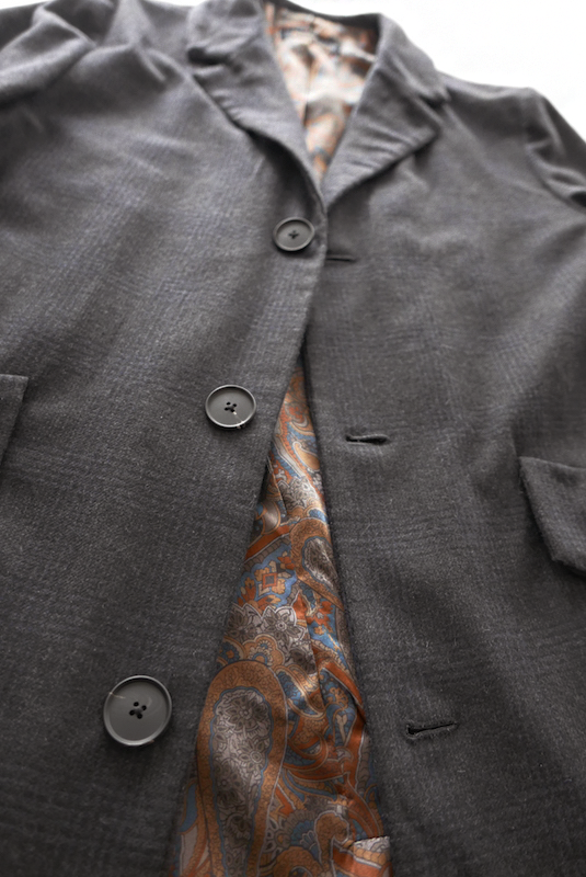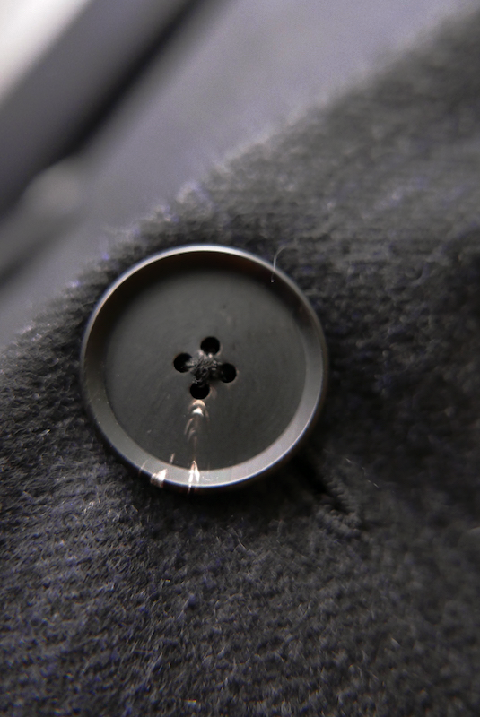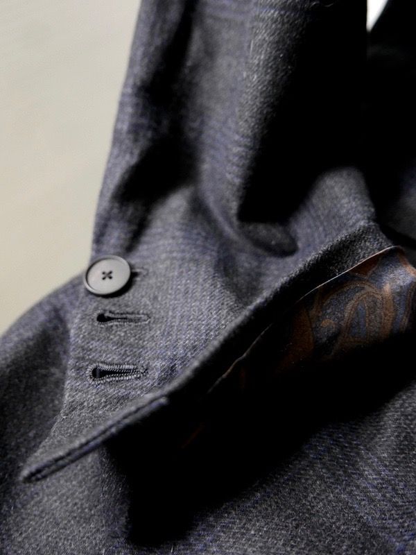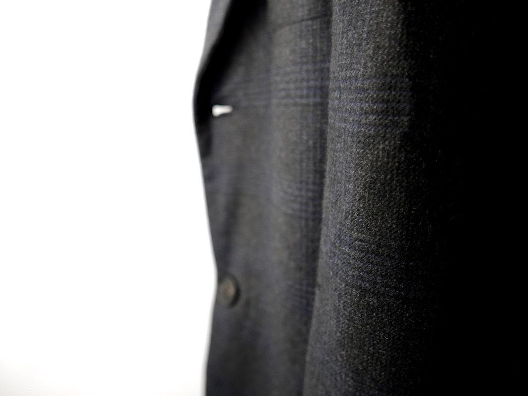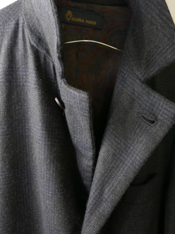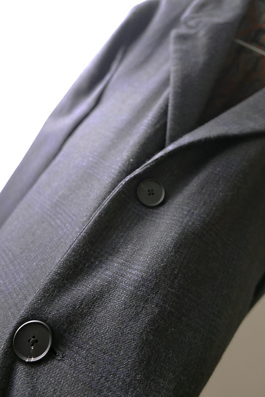 HYPERLUX “COCOON” BABY CASHMERE & VICUNYA FABRIC WITH PURE COMO SILK LINING STORY, SILK HAND-STITCHED BUTTONHOLES AND FONTANA REAL HORN “ALESSANDRO” DESIGN BUTTONS