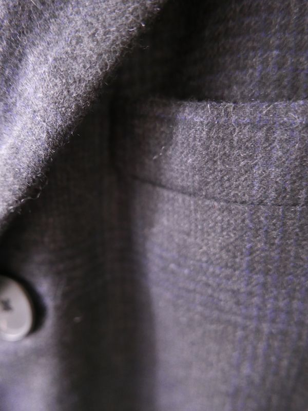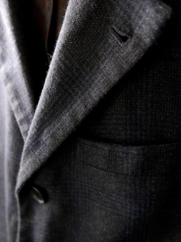 ...plus impeccable hand-cut besom welt and flap pockets and tailored center vent, and expertly cut and sewn matched plaids, ahidden lapel button which allows the coat to be buttoned all the way up for cooler weather or sportier styling, generous 2,5 centimeter seam allowances on major fitting seams that allow the jacket to be altered and let out a full size larger than its original cut, and impeccably finished interior with handsewn hems and closures...