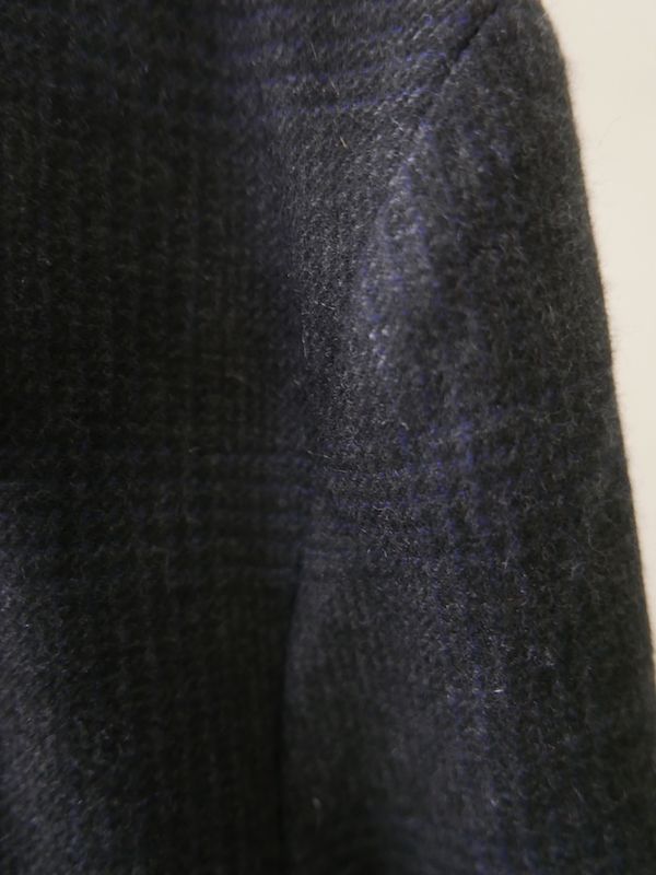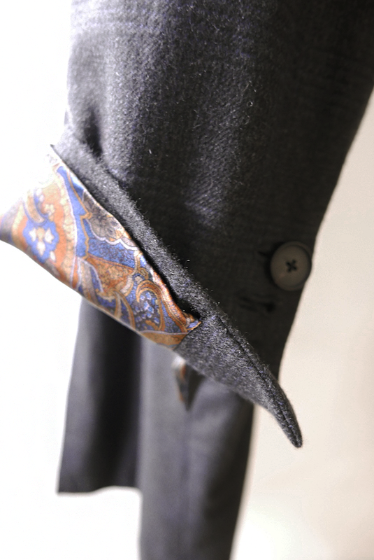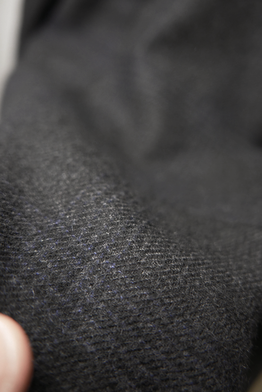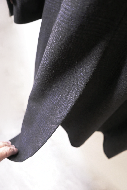 ...and cut entirely by hand single-ply using hyperlux “Cocoon” fully CITES certified 80 percent Baby Cashmere and 20 percent Peruvian Vicunya 330 gram fabric woven in Pollone Biella, Italy, by the oldest woolen mill and most respected cashmere and fine wool fabric makers in the world- Fratelli Piacenza 1733 Spa...