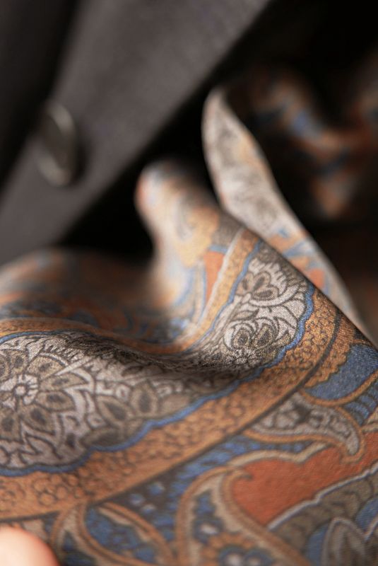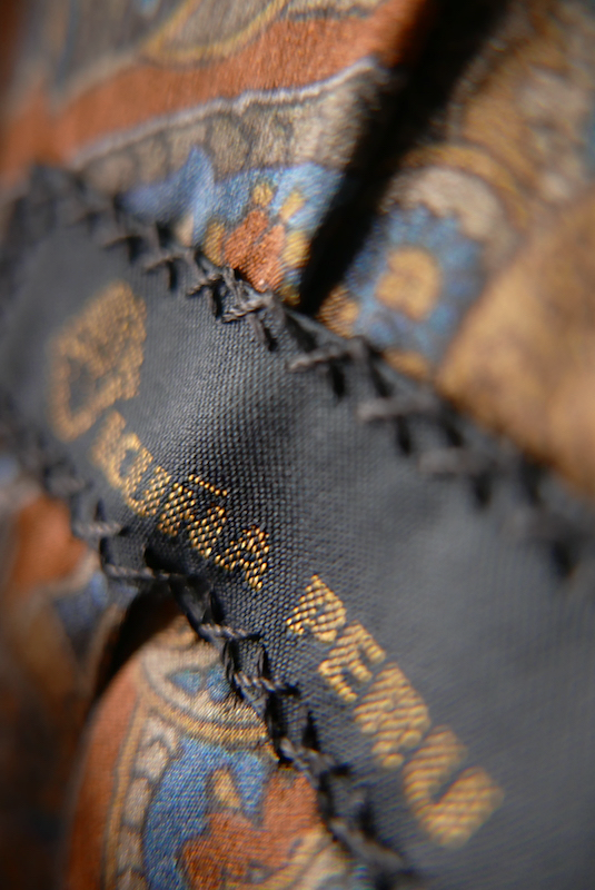 ...the special pure Peruvian Vicunya label issued exclusively for the piece by the Government of Peru is attached entirely by hand in the top center back of the coat's lining interior, clearly visible for custom's agents and physical proof of the article's fully-compliant CITES certifified fabric fibres and materials and critical to ensure its owner of its legitimate economic financial value and its sustainable, humane and ethical sourcing. The fully-lined luxury lining story was created using an exclusive pure 16-momme silk raso paisley print lining created for us by the legendary Brenna family in Como, the world’s leading center for fine silk fabric creation, then specially hand dyed, washed and treated in our workrooms at Cavarzere Venezia using an intricate series of processes which required over 12 hours of painstaking expert work to achieve the coat's beautiful colors, patina effects, shaping, drape and softness...