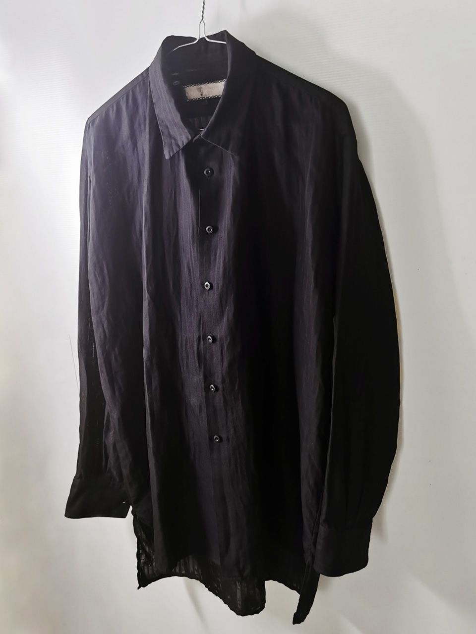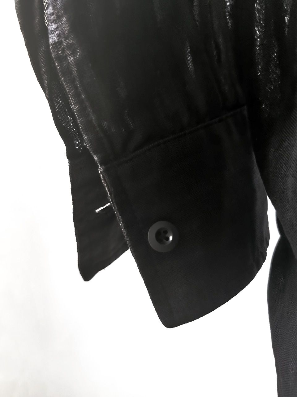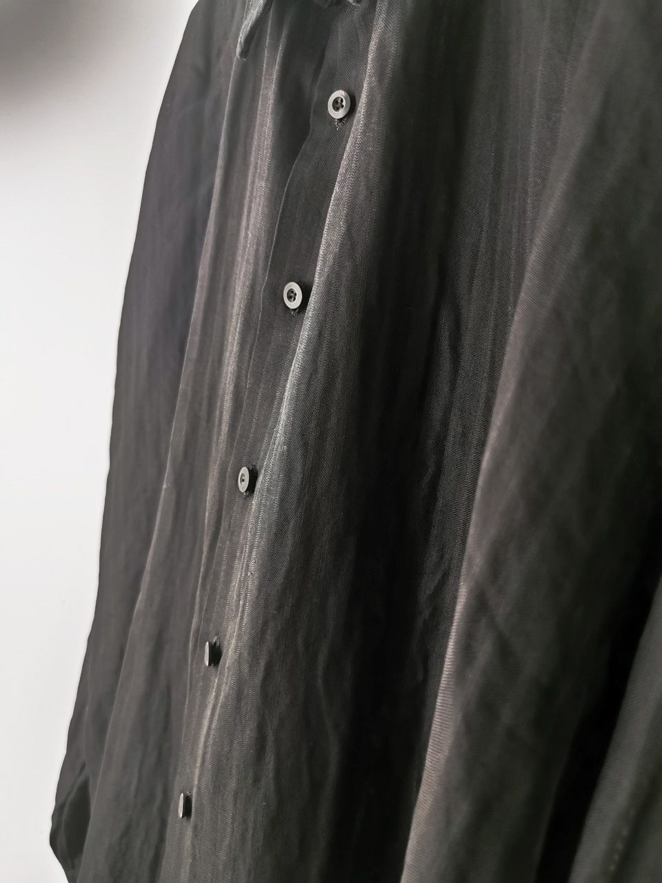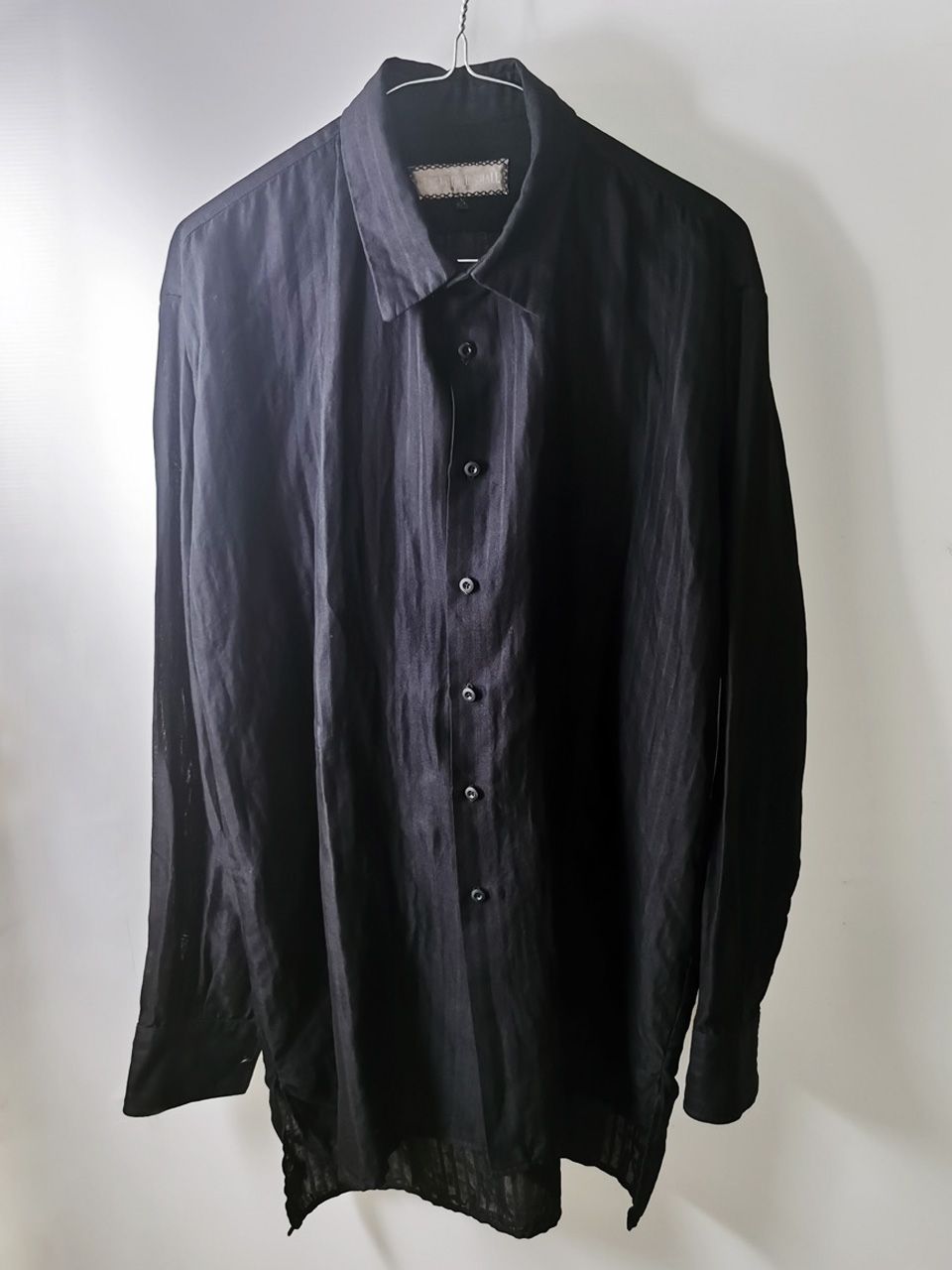 This special version of the super limited edition GRS08 shirt design is one of only 9 pieces of its kind made by hand in the entire world, each using a special Super 120’s double-twist “Bilbao” yarn-dyed textured stripe weave lightweight pure cotton luxury shirting made exclusively for us by the world’s leading research textile mill--Luigi Parisotto in Sarcedo Vicenza--then specially dyed by hand in our world-famous GBS Superworkrooms at Cavarzere Venezia using a process that required over 10 hours of expert work to achieve its unique dark color, patina effects, drape, shaping and softness. The design features an impeccable clean-finished French-seamed interior construction, uniquely balanced cut, fit and design, a new longer proportion shape from our medieval period research, real horn shirt button designs made for us by the world's greatest living buttonmakers--Claudio and Cinzia Fontana in Parma, Italy; and no less than 9 of our signature real hand sewn buttonholes in pure silk Bozzolo Milano Seta Reale threads, each one required 10-12 minutes to cut and sew- over 2 hours of painstaking expert work just to make the buttonholes alone for a single shirt). The piece also features our world leading hand dyed pure silk label created exclusively for us by Mion SpA in Torreglia which is the first label in the luxury industry to completely eliminate plastic polyester yarns in it--beautifully attached entirely by hand with pure silk threads.