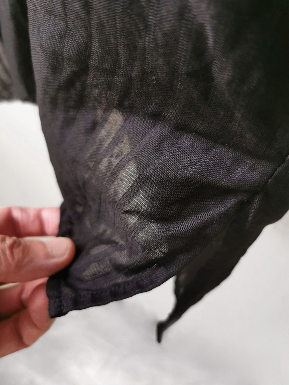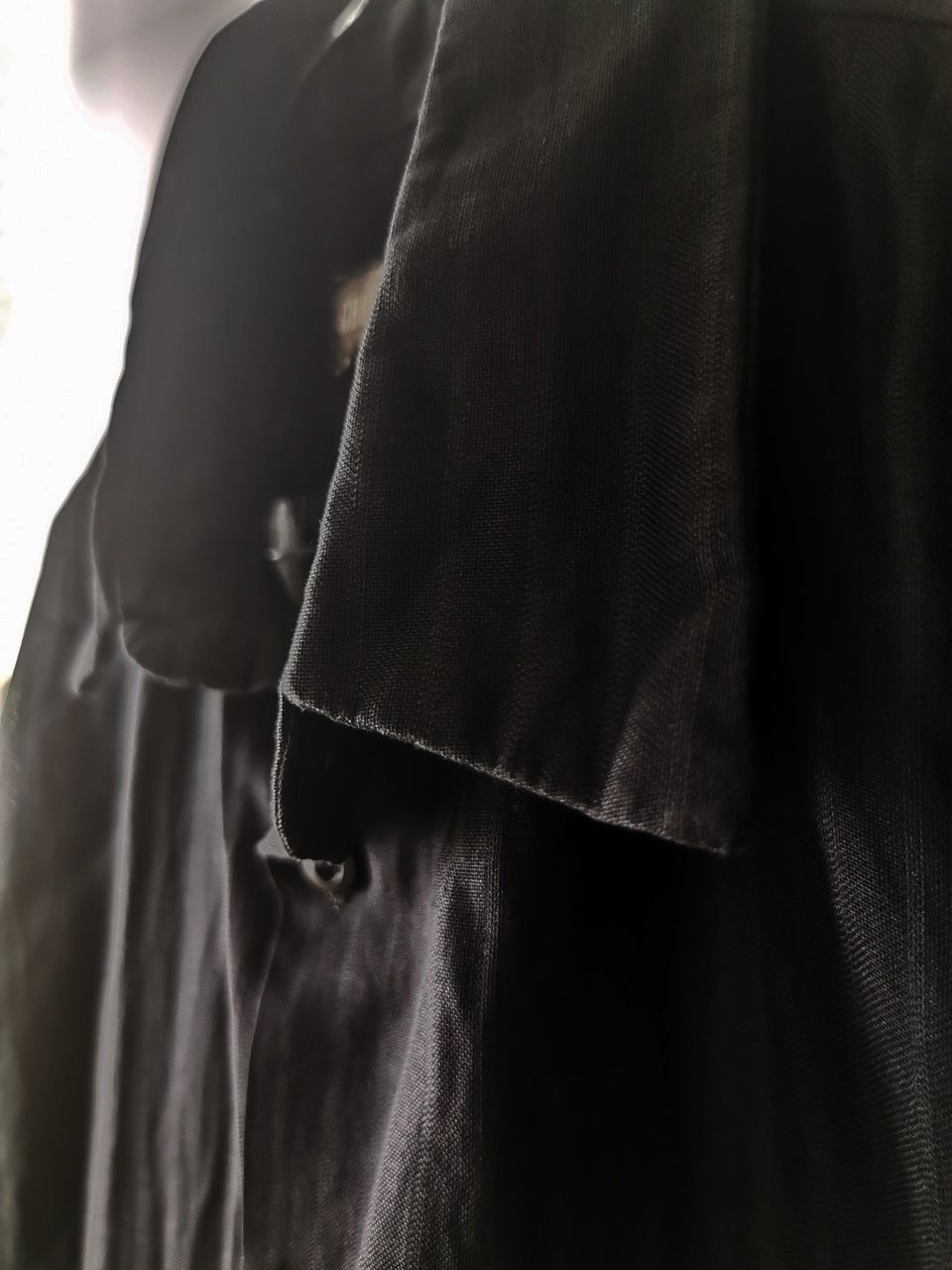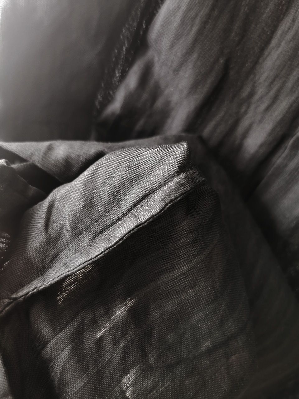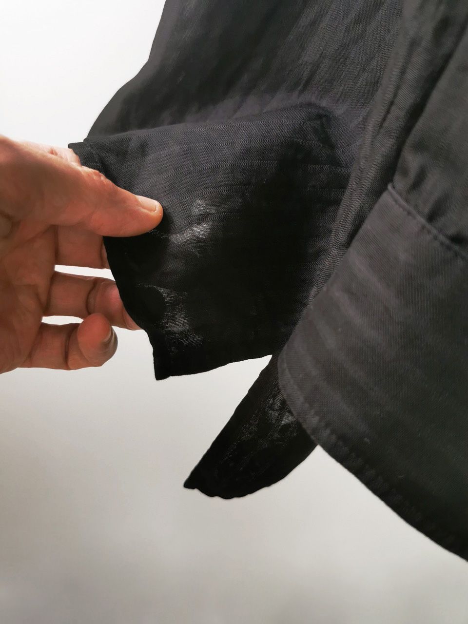 This special version of the super limited edition GRS08 shirt design is one of only 9 pieces of its kind made by hand in the entire world, each using a special Super 120’s double-twist “Bilbao” yarn-dyed textured stripe weave lightweight pure cotton luxury shirting made exclusively for us by the world’s leading research textile mill--Luigi Parisotto in Sarcedo Vicenza--then specially dyed by hand in our world-famous GBS Superworkrooms at Cavarzere Venezia using a process that required over 10 hours of expert work to achieve its unique dark color, patina effects, drape, shaping and softness. The design features an impeccable clean-finished French-seamed interior construction, uniquely balanced cut, fit and design, a new longer proportion shape from our medieval period research, real horn shirt button designs made for us by the world's greatest living buttonmakers--Claudio and Cinzia Fontana in Parma, Italy; and no less than 9 of our signature real hand sewn buttonholes in pure silk Bozzolo Milano Seta Reale threads, each one required 10-12 minutes to cut and sew- over 2 hours of painstaking expert work just to make the buttonholes alone for a single shirt). The piece also features our world leading hand dyed pure silk label created exclusively for us by Mion SpA in Torreglia which is the first label in the luxury industry to completely eliminate plastic polyester yarns in it--beautifully attached entirely by hand with pure silk threads.