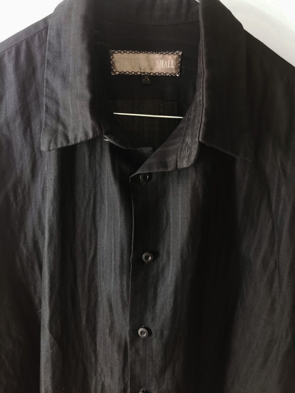 This special version of the super limited edition GRS08 shirt design is one of only 9 pieces of its kind made by hand in the entire world, each using a special Super 120’s double-twist “Bilbao” yarn-dyed textured stripe weave lightweight pure cotton luxury shirting made exclusively for us by the world’s leading research textile mill--Luigi Parisotto in Sarcedo Vicenza--then specially dyed by hand in our world-famous GBS Superworkrooms at Cavarzere Venezia using a process that required over 10 hours of expert work to achieve its unique dark color, patina effects, drape, shaping and softness...