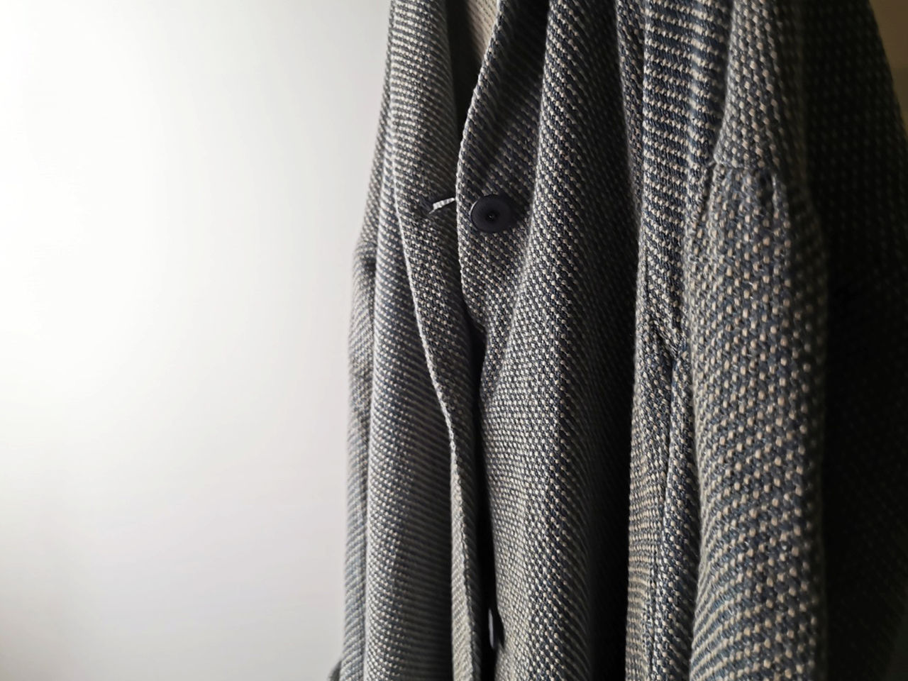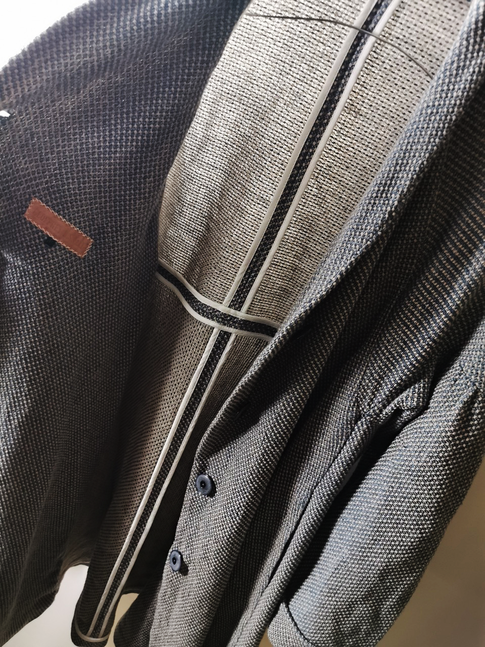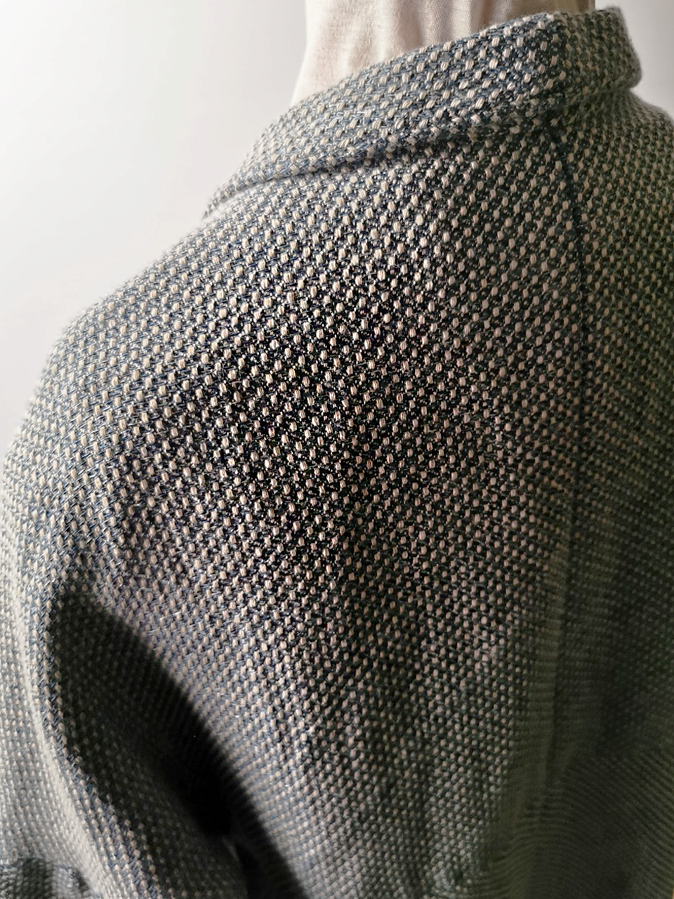 HAND WASHED LUIGI PARISOTTO CASHMERE & LINEN SPECIAL WEAVE FABRIC WITH SILK HAND-STITCHED BUTTONHOLES & FONTANA SPECIAL DESIGN REAL COROZO BUTTONS