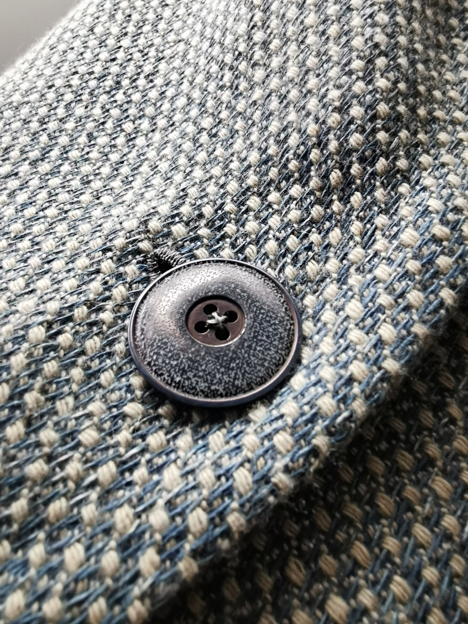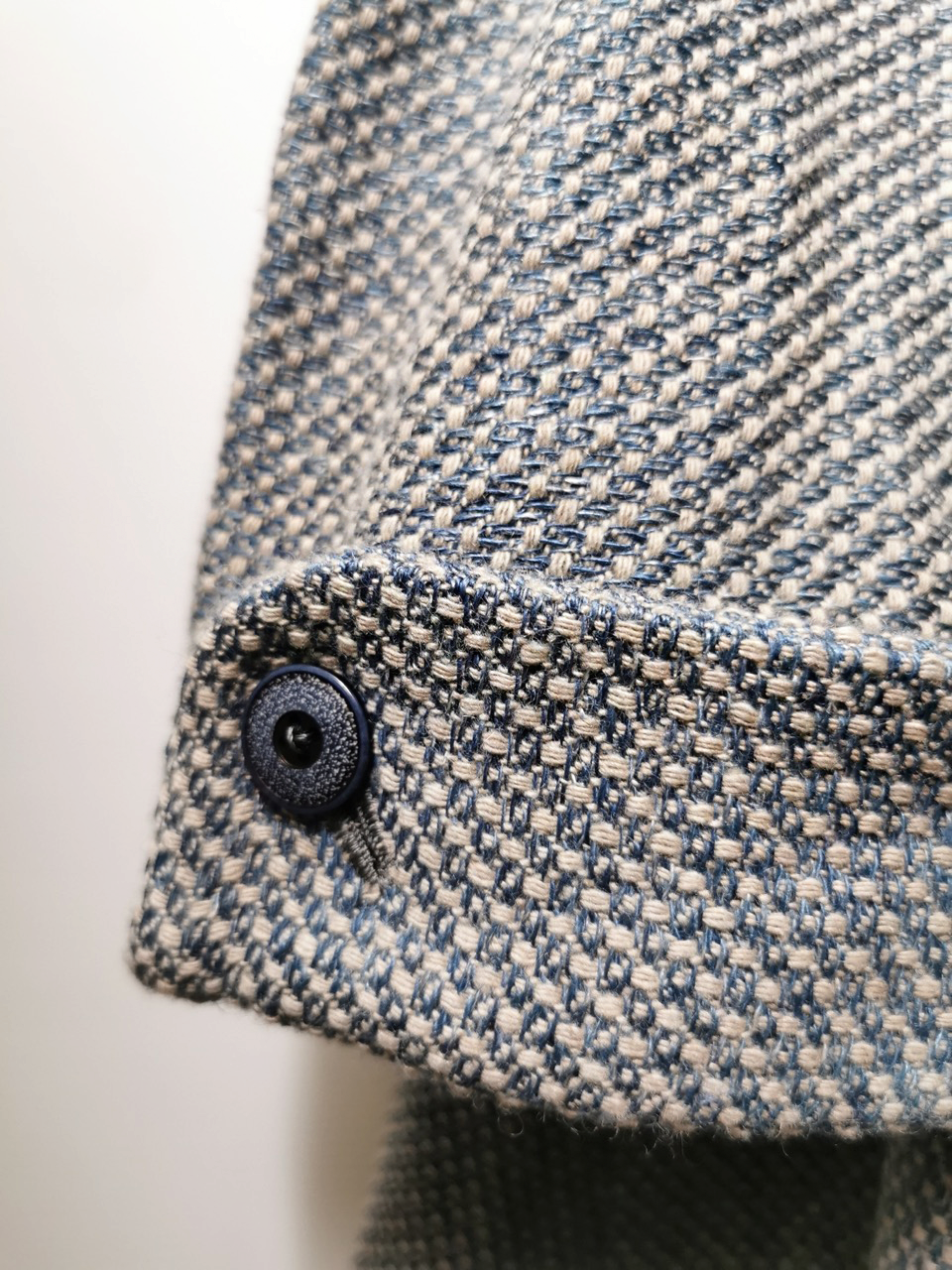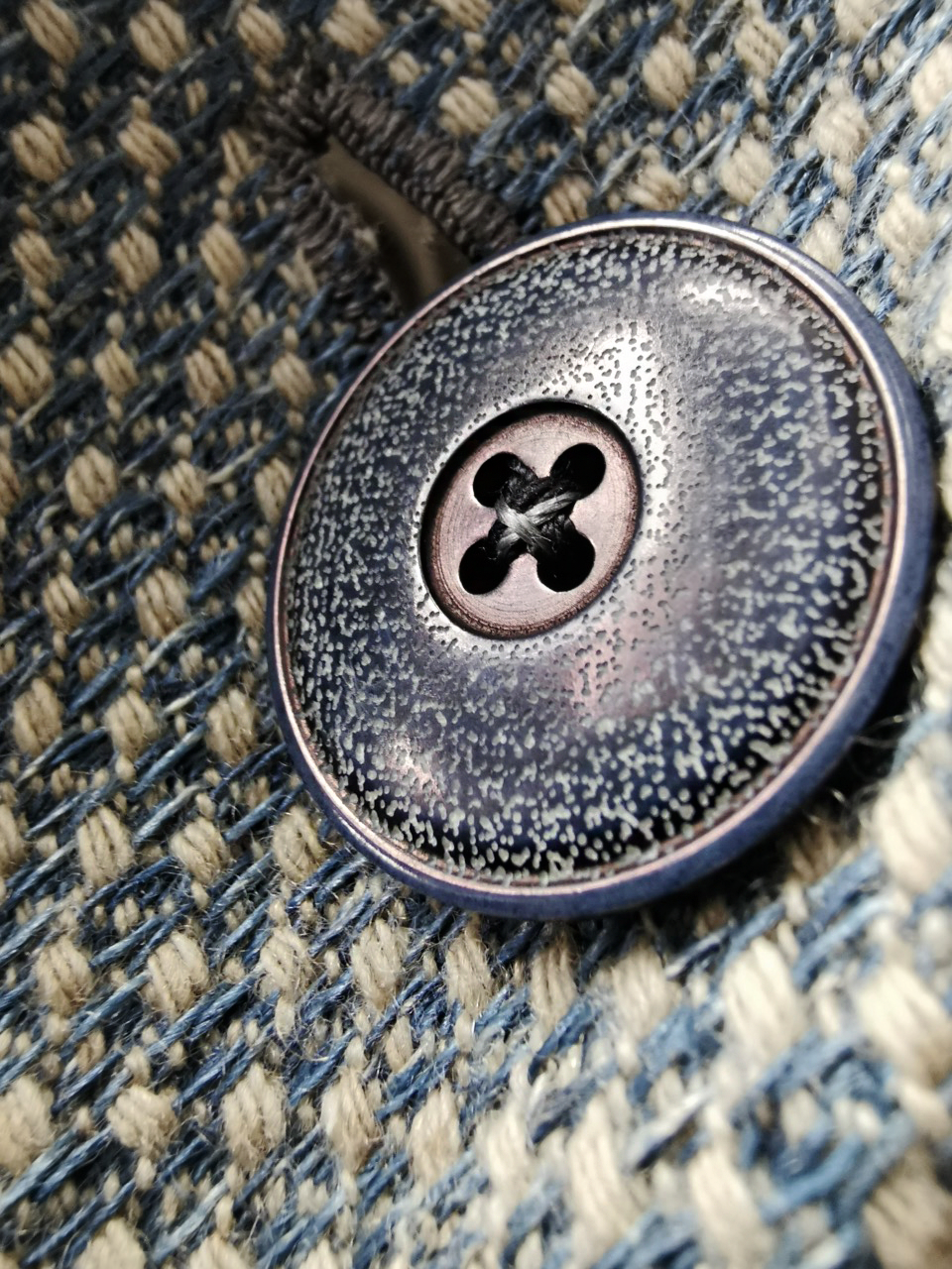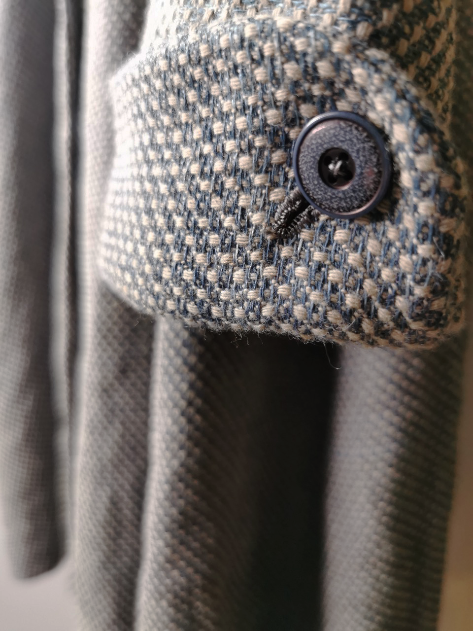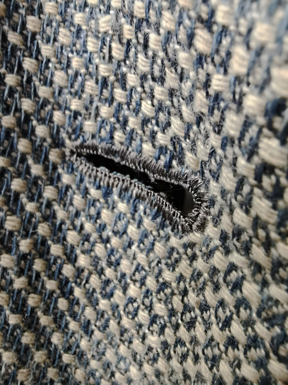 ...and no less than six of our signature real hand stitched buttonholes (each one required 13-17 minutes to cut and sew on the challenging textural fabric) in pure silk Bozzolo Reale Milano Seta threads...