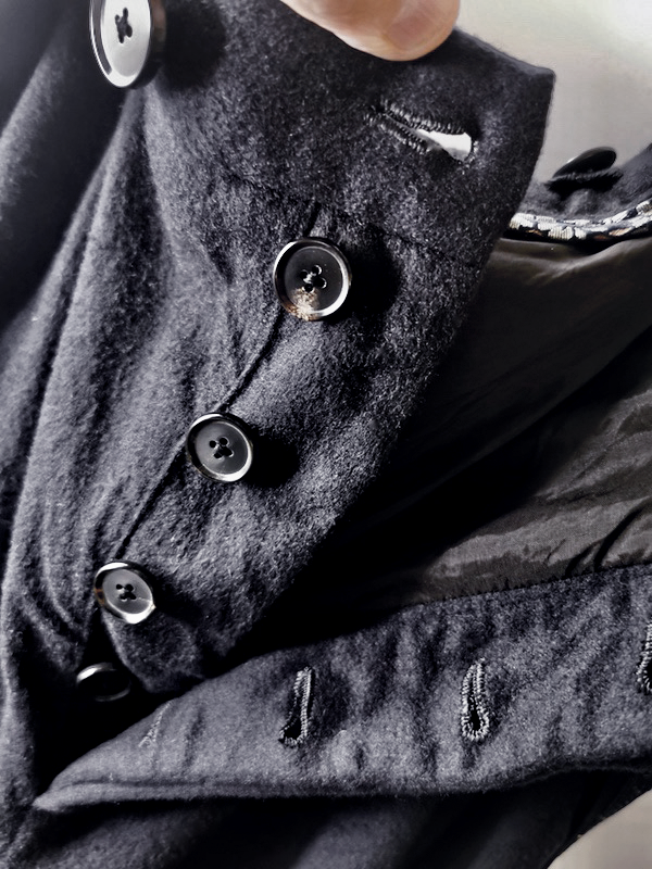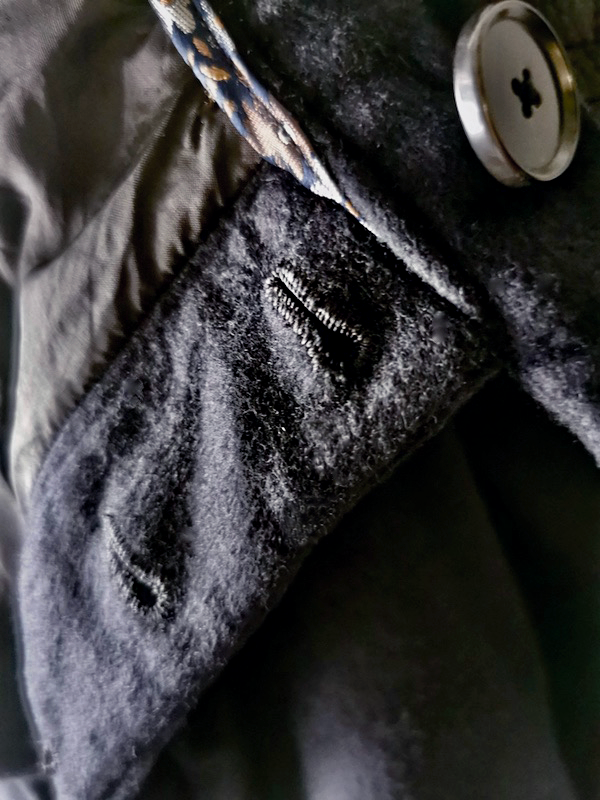 ... and no less than eight of our signature real hand-stitched buttonholes (each one required 10- 15 minutes to cut and sew- over 2 hour s of expert work just on the buttons and buttonholes alone) in pure silk Bozzolo Reale Seta Milan threads...