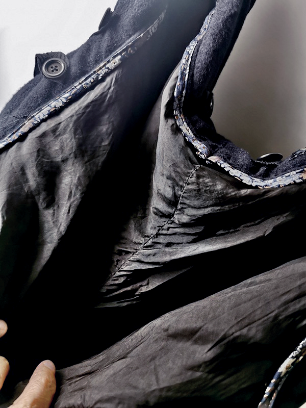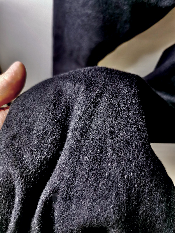 ...and entirely cut by hand single-ply using a hyperlux fully CITES certified “Cocoon” 80 percent Baby Cashmere and 20 percent Argentinian Vicunya 340 gram fabric woven in Pollone Biella, Italy, by the oldest woolen mill and most respected cashmere, fine wool and vicunya fabric makers in the world- Fratelli Piacenza 1733 Spa--then specially dyed by hand in our world-famous GBS Superworkrooms at Cavarzere Venezia using a process that required over 8 hours of expert artisanal work to achieve its unique color, patina effects, shaping and unbelievable softness...