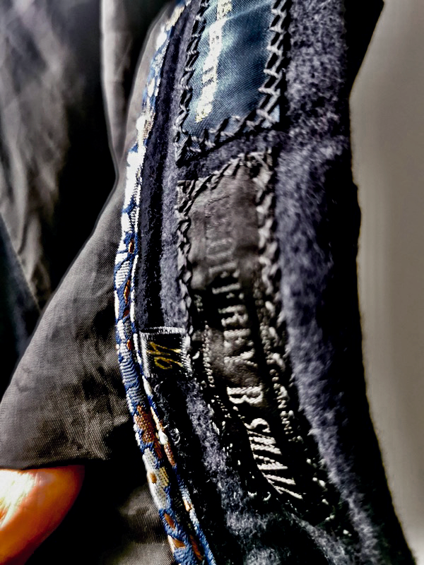 The piece also features our world leading pure silk label created exclusively for us by Mion SpA in Torreglia which is the first label in the luxury industry to completely eliminate plastic polyester yarns in it--exquisitely attached entirely by hand using pure silk threads...
