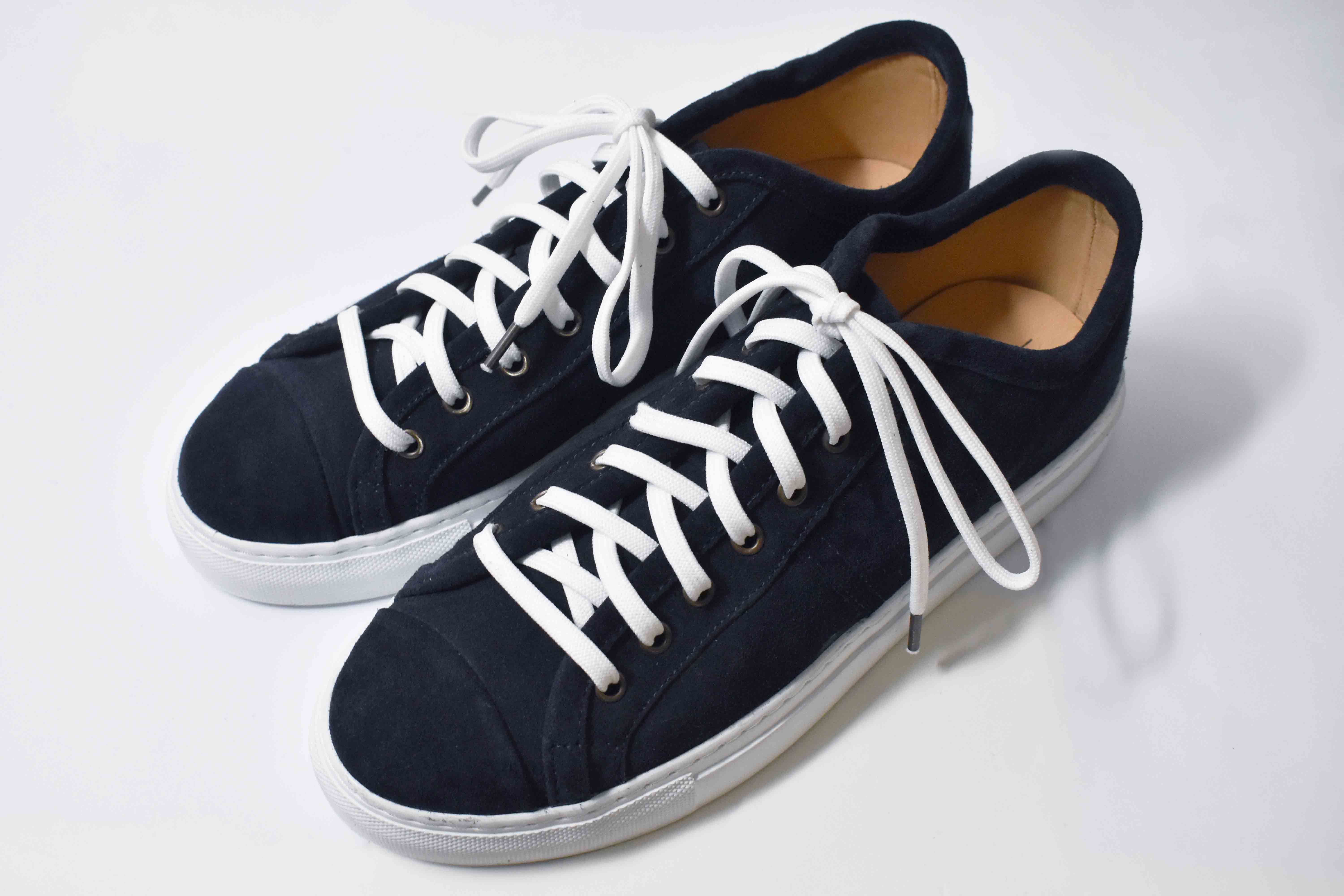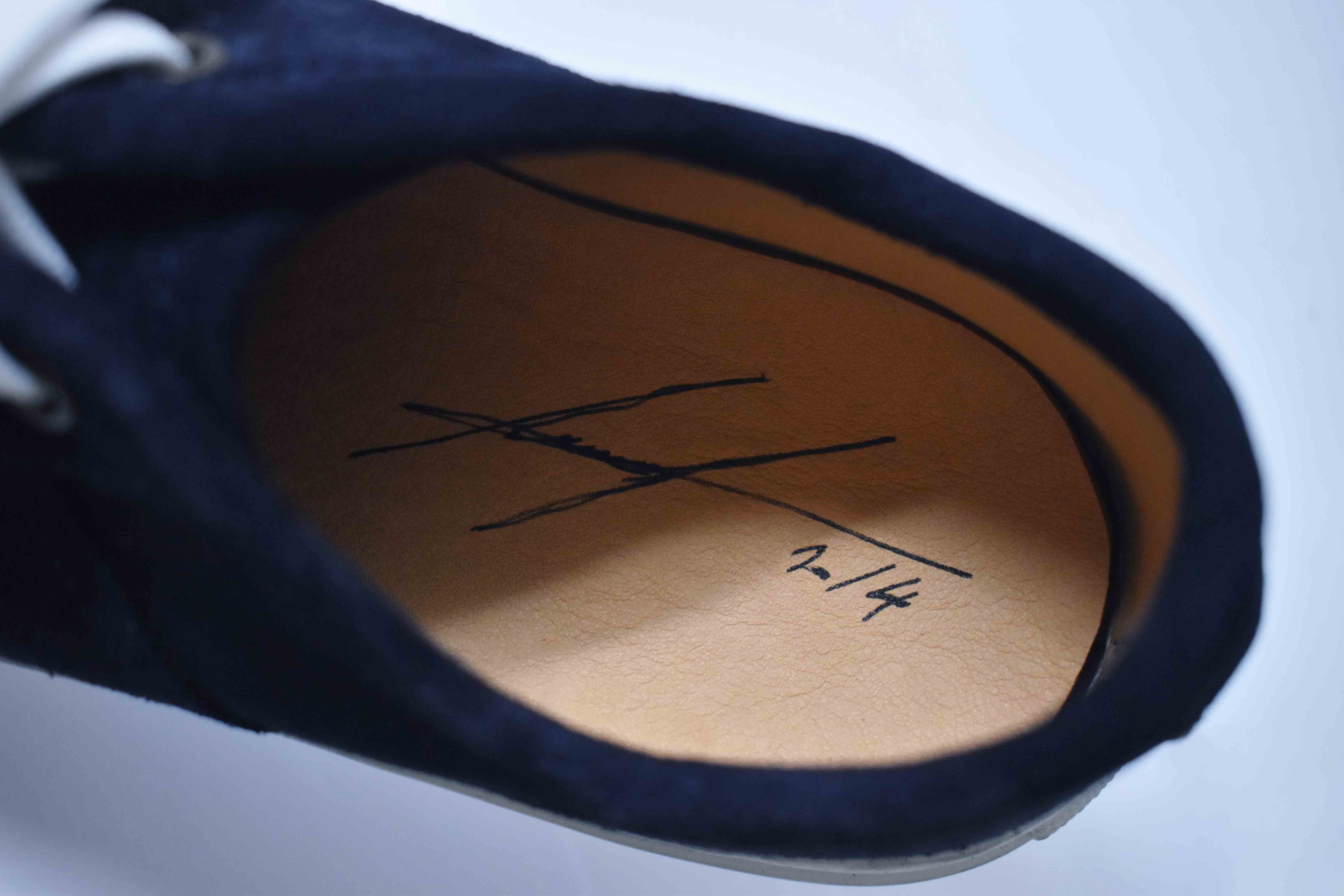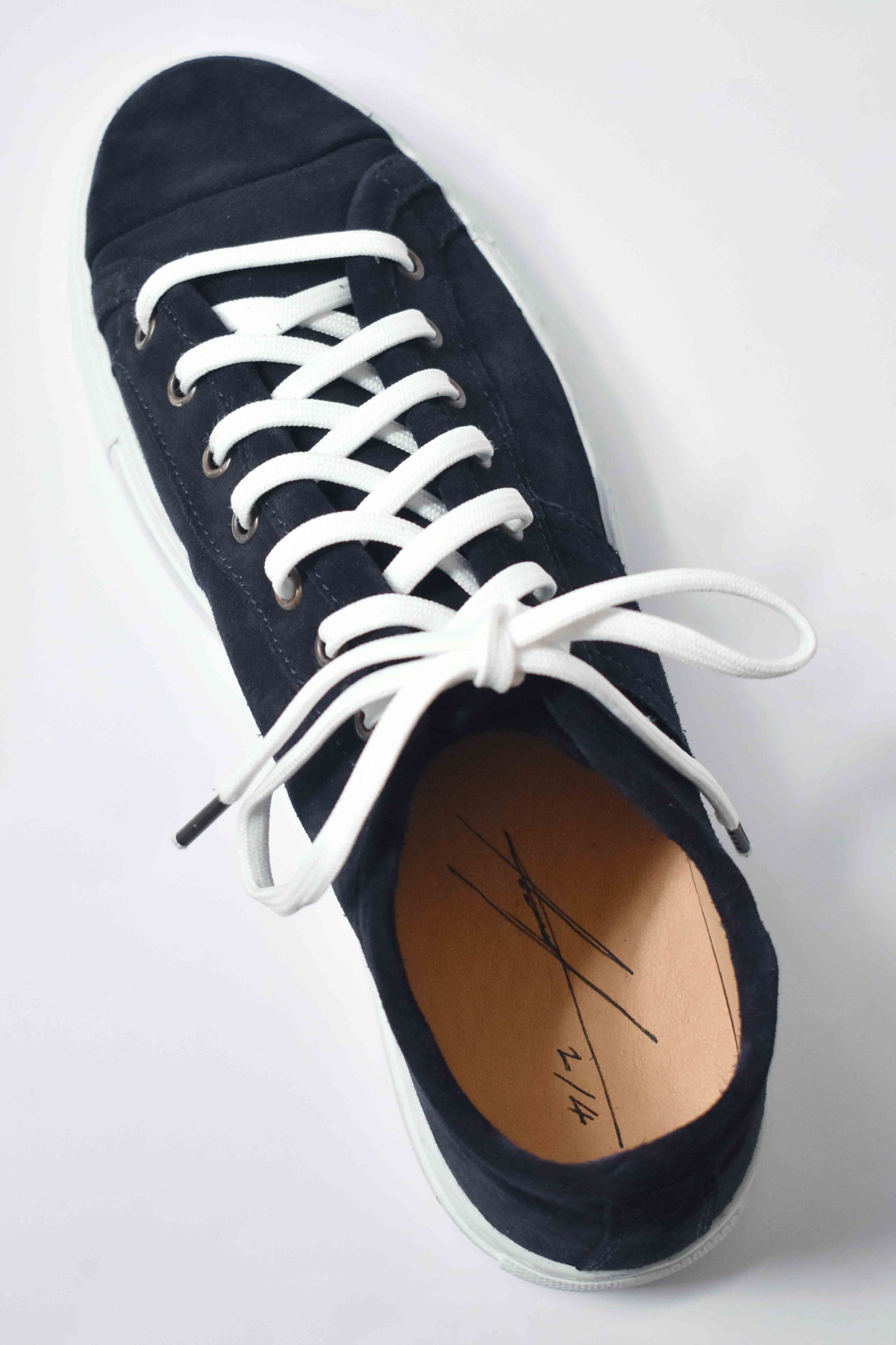 It was created from our pioneer industry-leading ultra-sustainable trainer-shoe design concept first introduced in Paris in 2010 using authentic recycled vintage suede garment leathers carefully selected from our recycling research, special Italian calfskin linings, natural rubber soles and a classic American late 1950’s sneaker design...