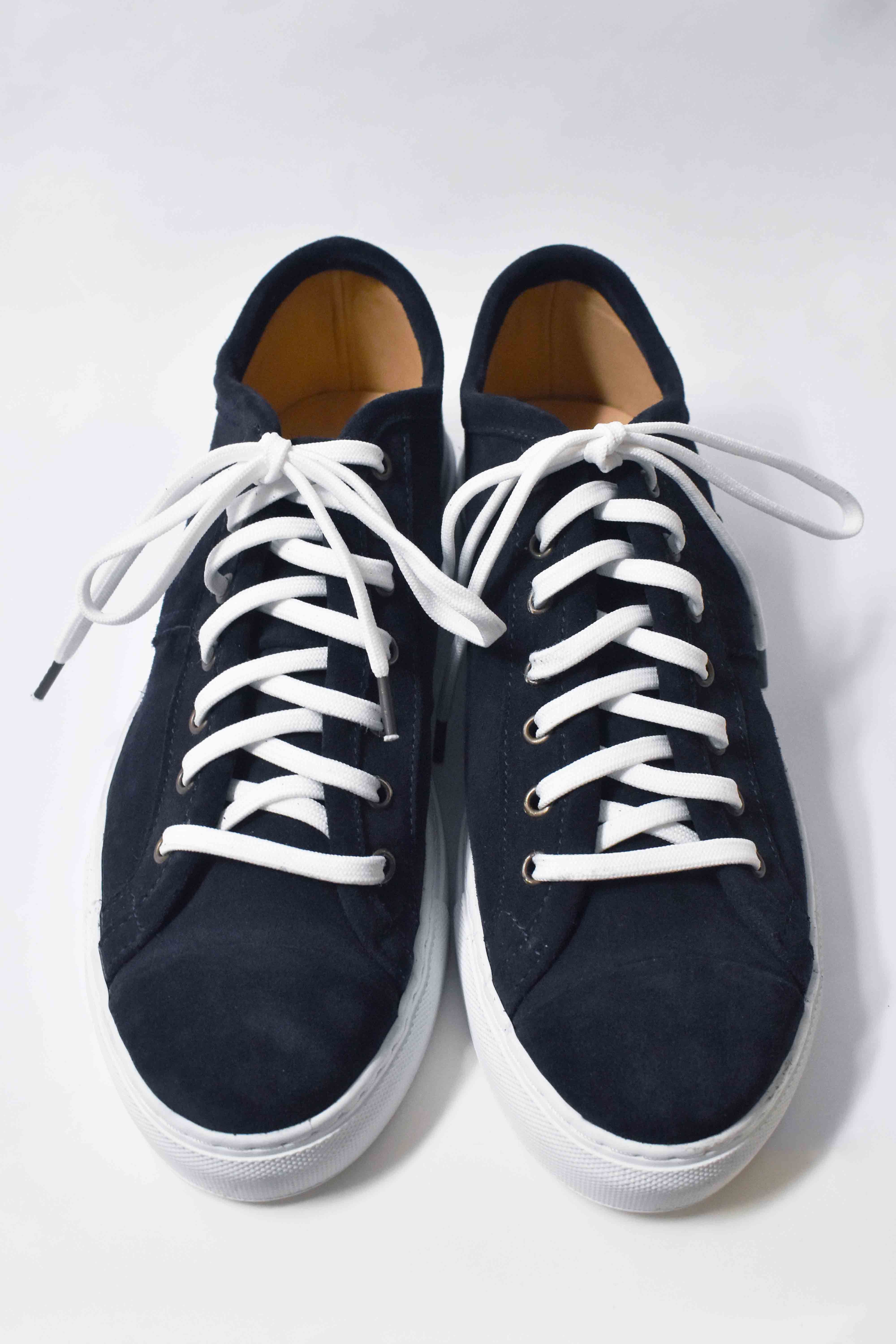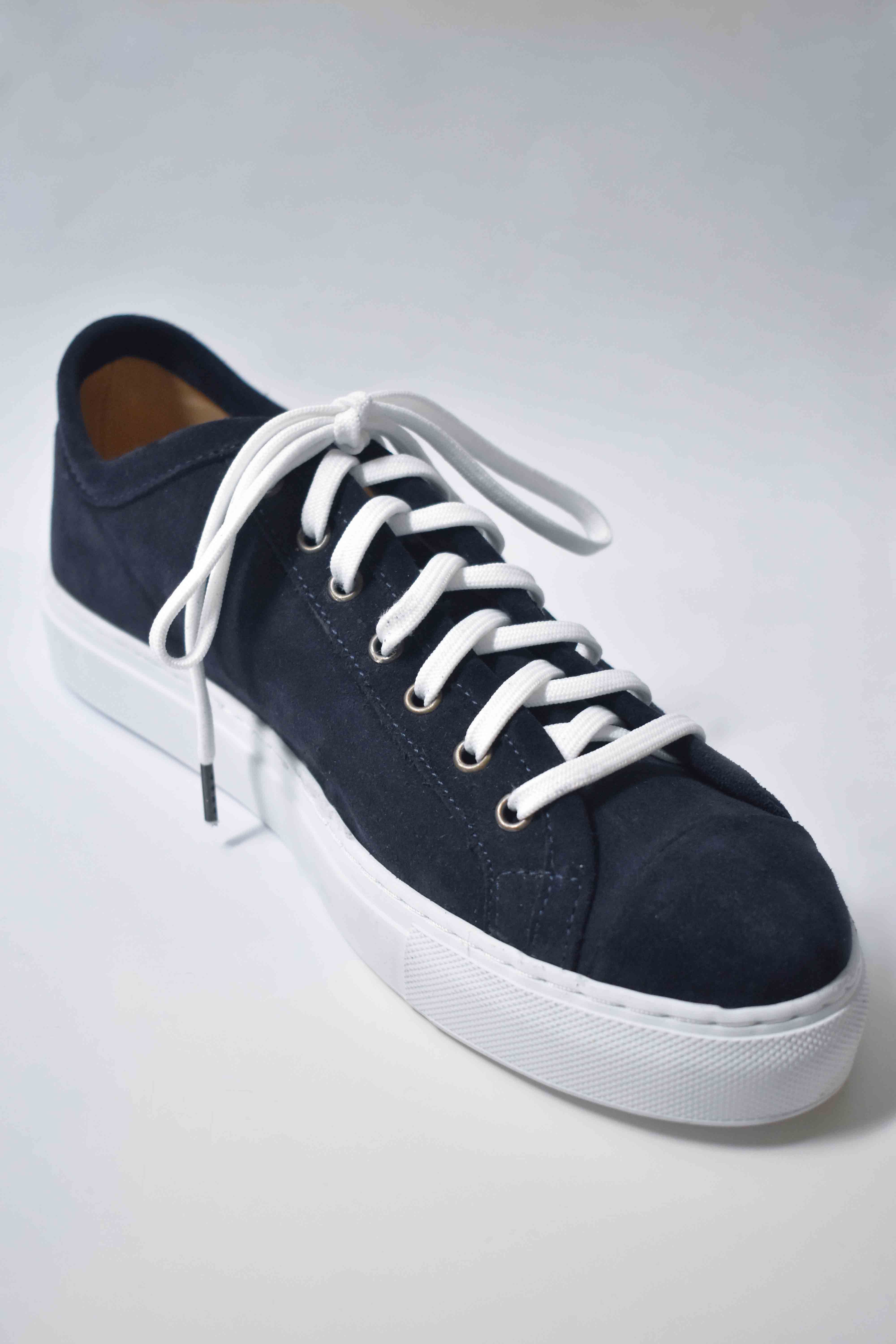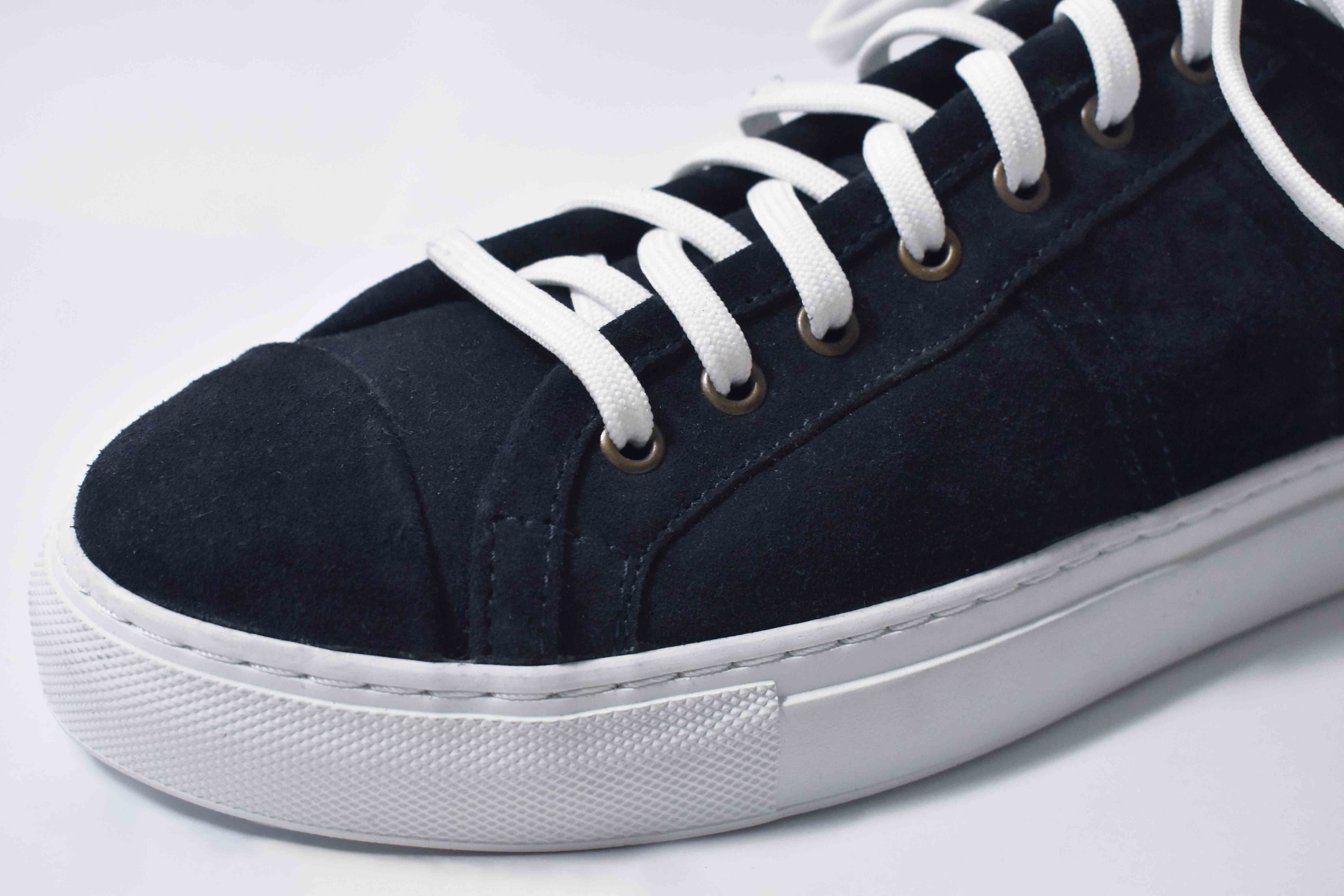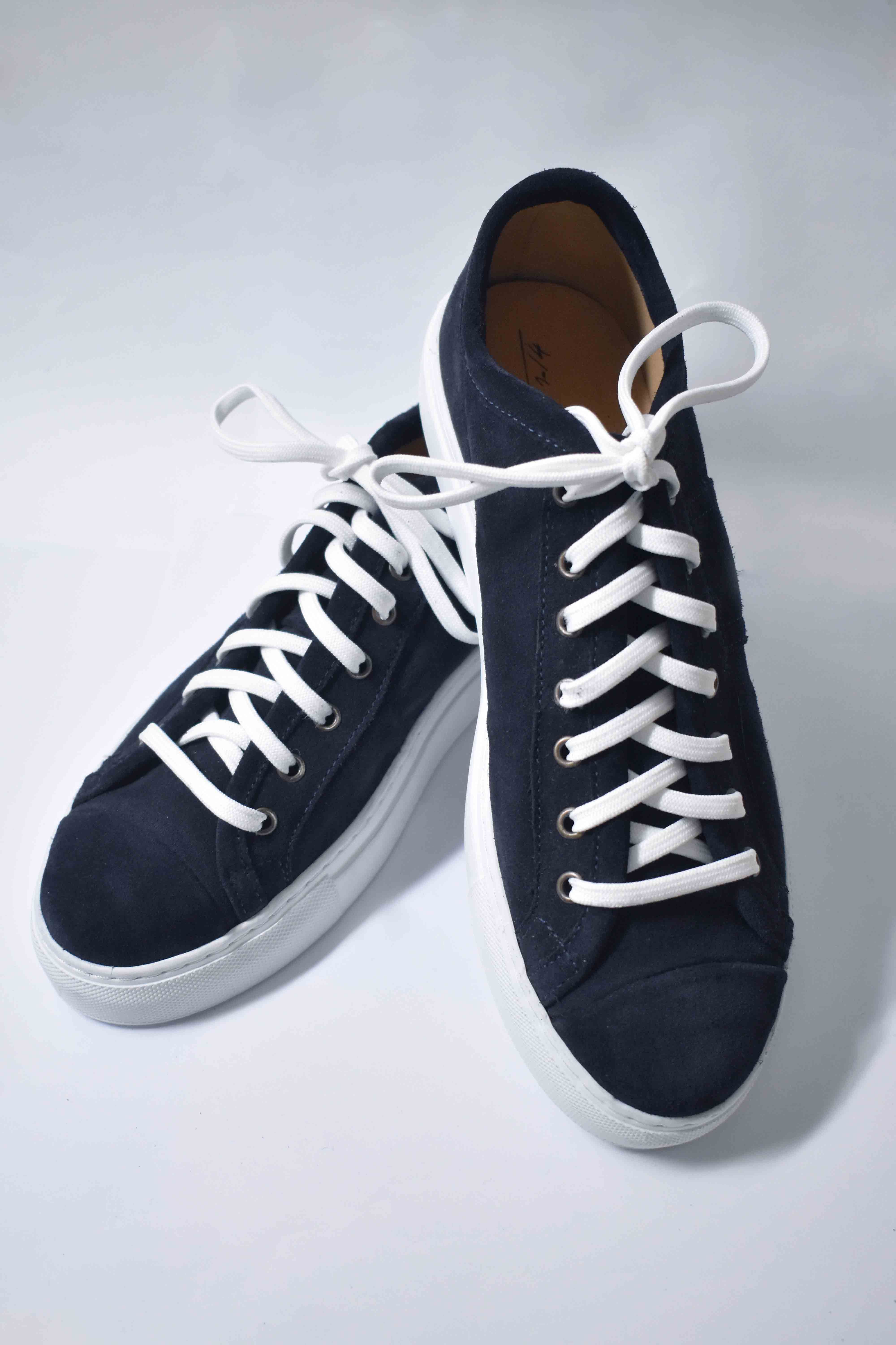 It was created from our pioneer industry-leading ultra-sustainable trainer-shoe design concept first introduced in Paris in 2010 using authentic recycled vintage suede garment leathers carefully selected from our recycling research, special Italian calfskin linings, natural rubber soles and a classic American late 1950’s sneaker design...
