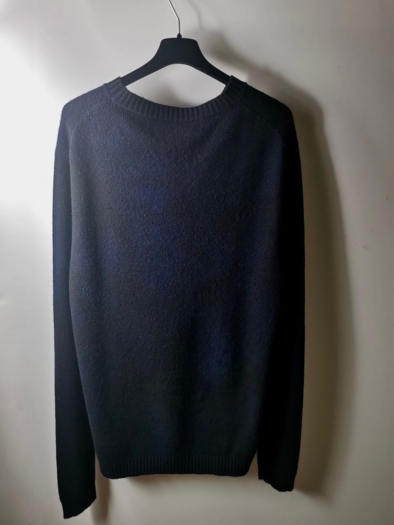 THIS super limited edition GBS Evolution V MZK02 extreme artisanal production design sweater is one of only 13 pieces of its kind currently made by hand in the world from a classic Italian polpo stile octopus-style European slim-fit crew-neck 7 gauge pullover sweater pattern from our extensive tailoring research, and expertly knit using classic fully fashioned construction techniques by the Sella family of master knitters in Cavarzere Venezia and over 365 grams of pure Mongolian cashmere ultralux yarn from Italy’s most prestigious cashmere yarn maker, the Cariaggi Lanificio in Cagli Pesaro e Urbino that provides 10 times more insulating power than normal wool. The special knitwear design was then specially individually multple hand dyed in our famous workrooms using our proprietary extreme handwork artistic artisan process and technique code-named “accident dye” and then extreme hand fabric treatment work which took over 5 days of expert work to achieve its spectacular unique mottled colors, aged “chiaroscuro” patina effects, special shaping and incredible softness. The sweater will get even softer over time and mold to your body with natural use; unlike industrial sweater finishing- GBS hand finishing techniques use no chemicals, oils, silicone or machinery- allowing the sweater to have a longer wearing life and maximum environmental sustainability. The design features all the hallmarks of the very best in Italian knitwear craftsmanship from its impeccable seamless one piece build entirely made from scratch with no sewing seams or cutting to the exquisitely executed “costina” rib-knit sections, and “calatura” 4 into 2 shoulder seam and armhole shaping. The piece also features our world leading pure silk hand dyed label created exclusively for us by Mion SpA in Torreglia which is the first label in the luxury industry to completely eliminate plastic polyester yarns in it, beautifully sewn in by hand in luxurious pure silk Bozzolo Reale Milano Seta threads--beautifully attached all by hand using pure silk threads. Variations in color and color density are not imperfections or irregularities, but specific characteristics of the special hand dyeing and making techniques. We recommend professional cleaning only or hand wash in cold water. Do not wash with other items. Do not put in machine washer or dryer.