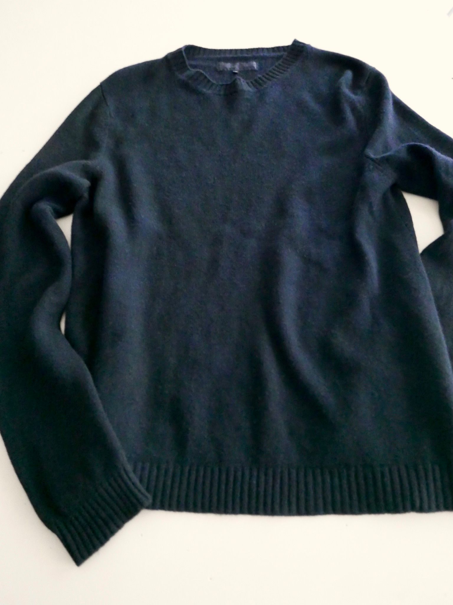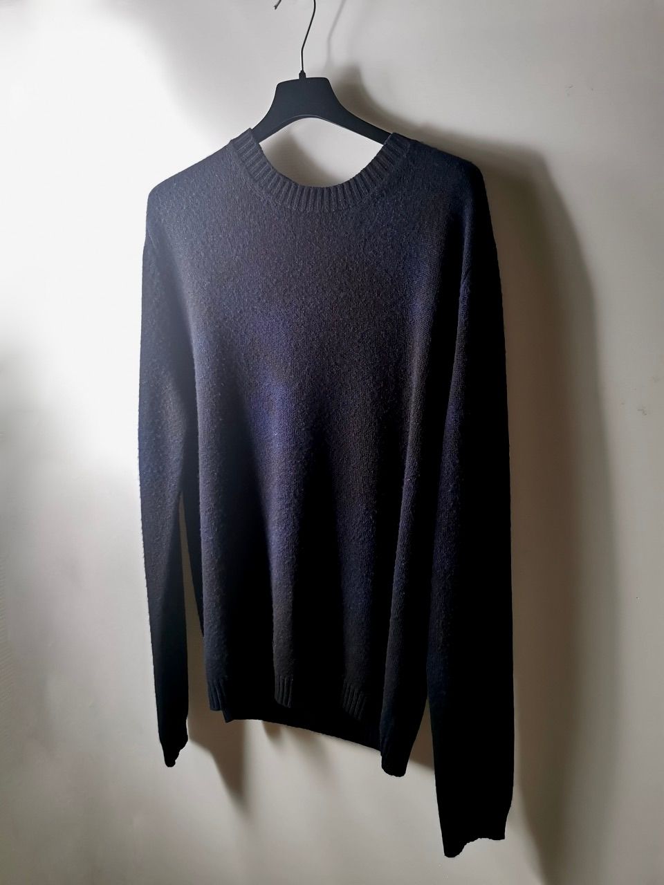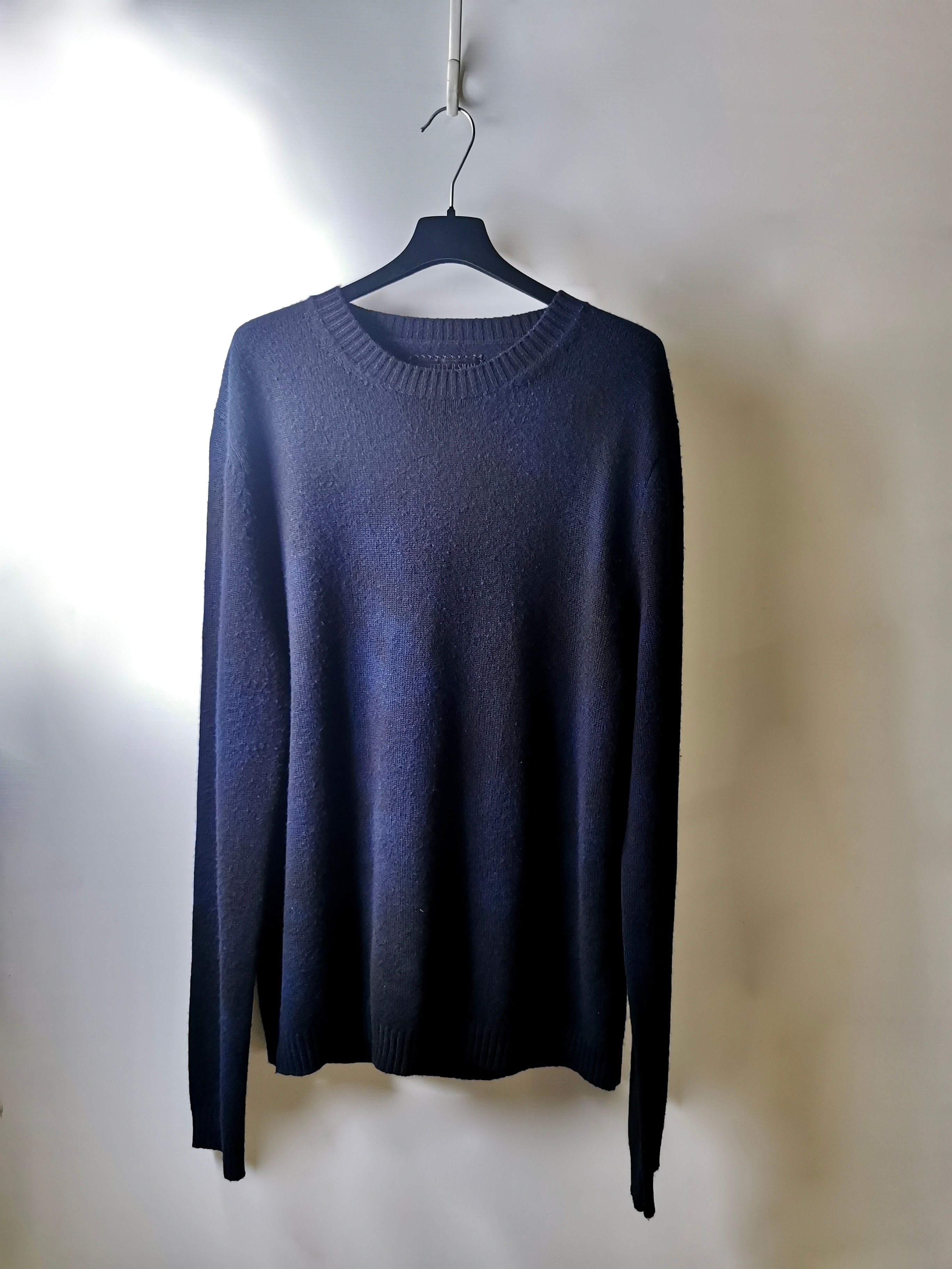 This extreme artisanal production design sweater was made from an advanced Italian "polpo stile" rocker's octopus-style European slim-fit crew-neck 7 gauge pullover sweater pattern from our extensive tailoring research, and expertly knit using classic fully fashioned construction techniques by the Sella family of master knitters in Cavarzere Venezia...