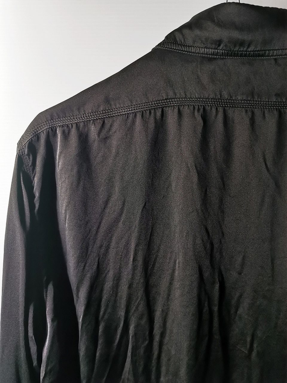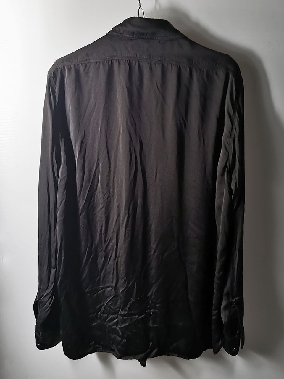 THIS special version of the super limited edition NVS05 archive shirt design is the only piece of its kind made by hand in the entire world this season. It was created as a special series of 6 different variations from our 1940's American western triple-stitch shirt design and cut in a pure silk 16 momme raso satin luxury shirting cloth made for us by the legendary Brenna family in Como, Italy-- the world’s leading silk production region, that was specially hand dyed in our world-famous GBS Superworkrooms at Cavarzere Venezia in Italy to achieve its special colors, patina effects, shaping and incredible softness...