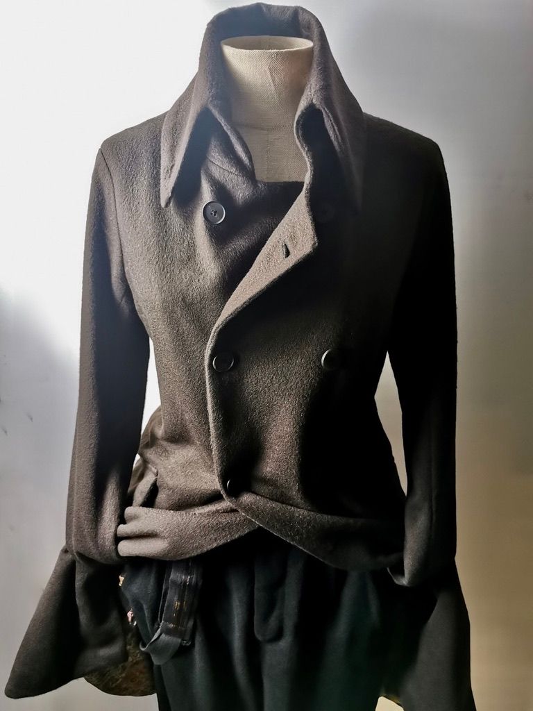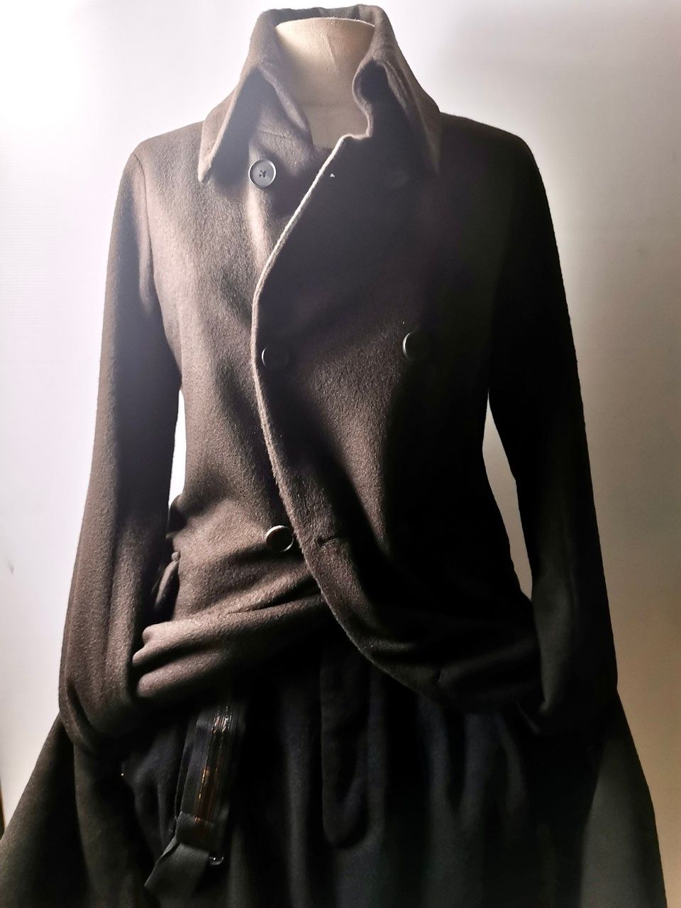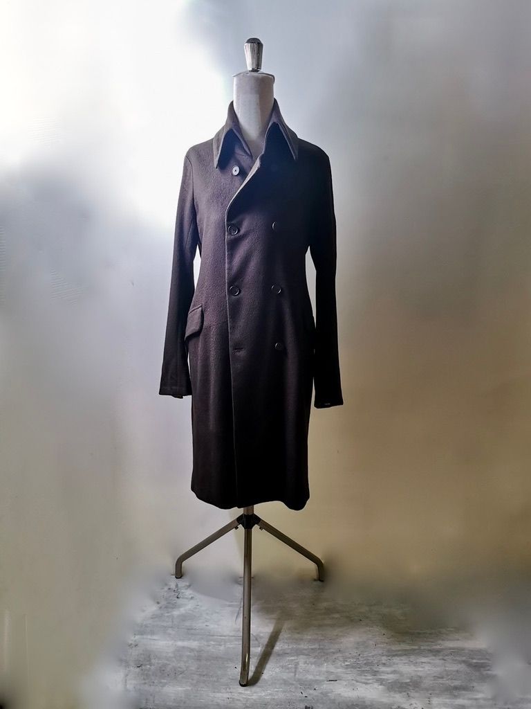 Created in a super limited series of just 4 examples in the world each exclusively for Eth0s in Shanghai, this amazing supercoat is both a pure GBS collector's design piece and an extremely versatile superlux avant-garde wardrobe investment. Its dramatic historical cut and design, incredible materials, components, construction and fitted proportions provide superb comfort, ease of movement, and can be worn by slim men and women in a wide range of ways for travel, work and social occasions. Designed and built like no other coat in the world... this GBS OCWC02special is a pure Piacenza Alashan cashmere and silk luxury wardrobe investment of superb long-term value.
