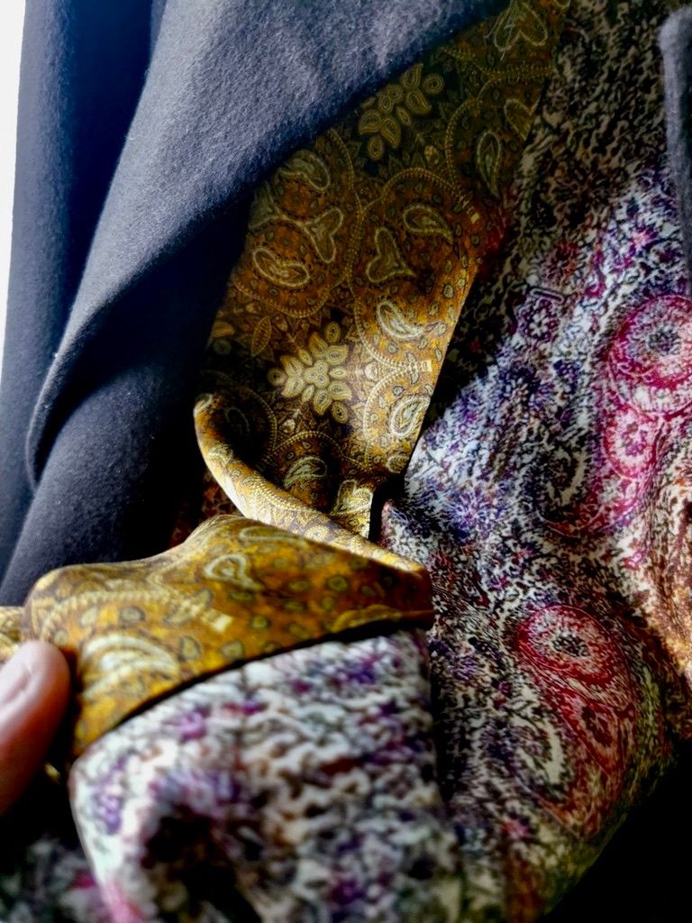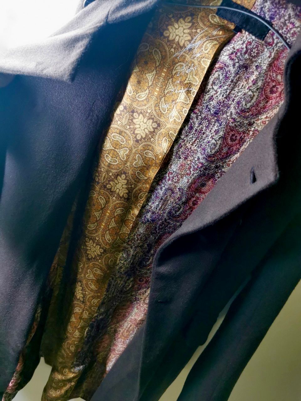 ...each supercoat is fully-lined with a special lining story using our own pure silk 16 momme raso satin exclusive paisley print designs made only for us by the legendary Brenna family in Como, Italy-the world’s leading center for fine silk fabric creation, then once expertly combined with its outer shell assembly of pure Piacenza Alashan 2-ply cashmere... individually washed, shaped and treated by hand in our world-famous GBS Superworkrooms at Cavarzere Venezia for extra aging, shaping, drape and incredible softness...