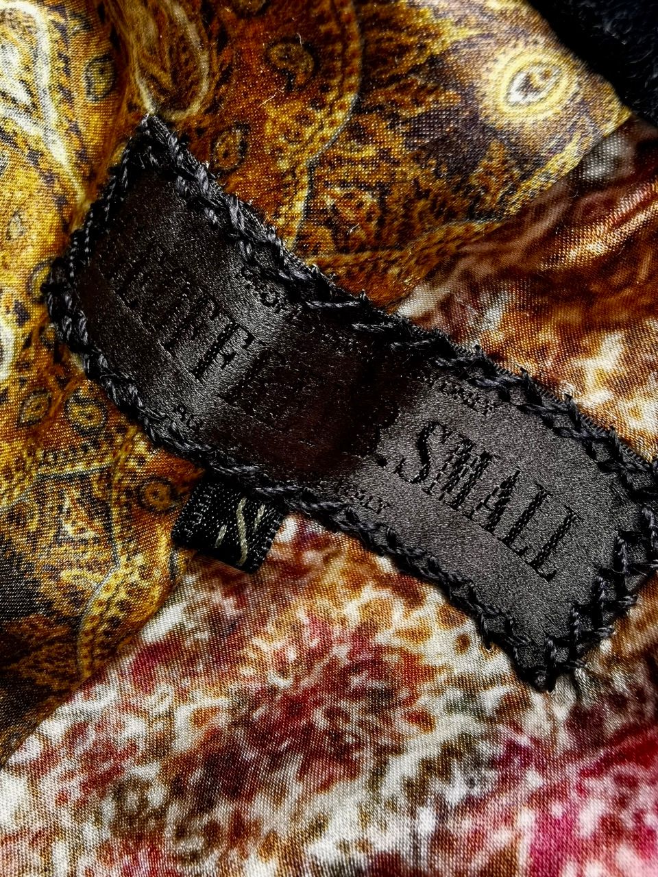 The piece is hand signed and numbered by the designer and also features our world leading pure silk label created exclusively for us by Mion SpA in Torreglia- the first label in the luxury industry to completely eliminate plastic polyester yarns in it which was hand dyed to achieve its stunning color and lustre and exquisitely attached by hand using pure silk threads.