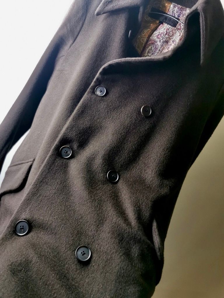 HAND WASHED FRATELLI PIACENZA 1733 PURE ALASHAN 2-PLY CASHMERE 460GRAM SUPERLUX FABRIC COAT WITH PURE COMO SILK LININGS, SILK HAND-STITCHED BUTTONHOLES & FONTANA “ALESSANDRO” DESIGN REAL HORN BUTTONS