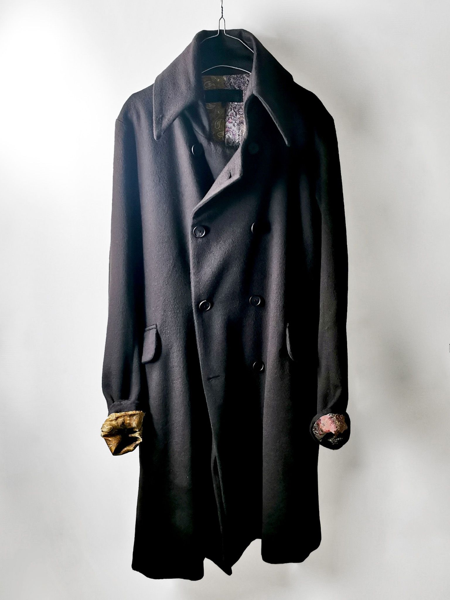 THIS special version of the super limited edition OCWC02 archive coat design is one of only 4 pieces made in the entire world from a 19th century modified 8-button double-breasted original pattern from our extensive tailoring research, and cut in a super lux ultrasoft pure Alashan Cashmere 2-ply 460 gram per meter coating fabric woven for us by the oldest woolen mill in the world and the world’s most respected cashmere fabric maker- Fratelli Piacenza 1733 Spa in Pollone Biella, Italy- then combined with a special lining story using our own pure silk 16 momme raso satin exclusive paisley print designs made only for us by the legendary Brenna family in Como, the world’s leading center for fine silk fabric creation, then individually washed, shaped and treated by hand in our world-famous GBS Superworkrooms at Cavarzere Venezia for extra aging, shaping, drape and softness. The design features a modified historical nineteenth century double-breasted redingote duster coat design, hand-cut flap besom pockets, elegant “Alessandro” design real horn buttons created for us by the world's greatest living button-makers- Claudio and Cinzia Fontana in Parma, Italy, and our signature real hand-stitched buttonholes (each one required 10-12 minutes to cut and sew) in pure silk Bozzolo Reale Milano Seta thread. The piece is hand signed and numbered by the designer and also features our world leading pure silk label created exclusively for us by Mion SpA in Torreglia- the first label in the luxury industry to completely eliminate plastic polyester yarns in it which was handd yed to achieve its stunning color and lustre and exquisitely attached by hand using pure silk threads. Variations in color and density are not imperfections or irregularities, but specific characteristics of this special technique. Its remarkable cut and fit, developed over many seasons in the Paris designer fashion collections arena, complements a wide range of body types and shapes, and delivers a very cool and timeless style. We recommend professional clean only or hand wash separately in cold water.Do not put in washing machine or machine dryer, or wash with other items.