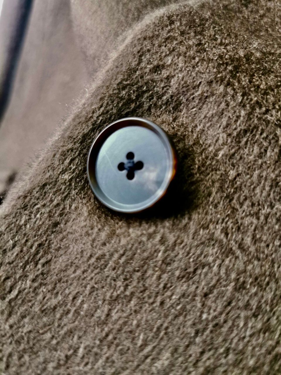 ...GBS spends more on buttons than most luxury brands spend on their main fabrics. It's part of our Art. Here, the special version of the OCWC02 is furnished with the elegant “Alessandro” design real horn buttons in gorgeous lucido gloss finish created only for us by the world's greatest living button-makers- Claudio and Cinzia Fontana in Parma, Italy. Each one is attached entirely by hand using the designer's 40 year personal technique in order to perform perfectly with the beautiful signature real hand-stitched buttonholes (each one required 10-14 minutes to cut and sew on the precious 2-ply cashmere cloth) in pure silk Bozzolo Reale Milano Seta threads to provide its owner maximum security and confidence when buttoning up the coat...