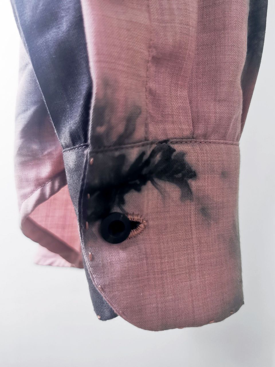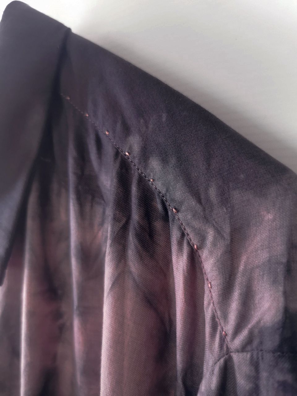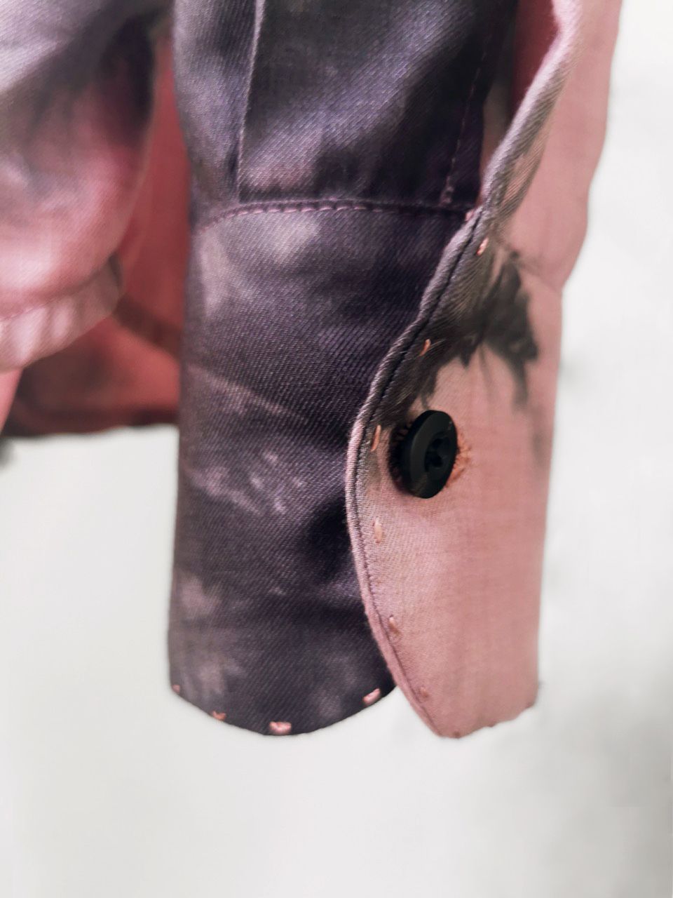 EXCLUSIVE EXTREME HANDWORK DESIGN HAND GBS ACCIDENT DYED FRATELLI PIACENZA 1733 “ALASHAN BREATH” PURE 170 GRAM CASHMERE SUPERLUX FABRIC WITH SILK HAND-STITCHED BUTTONHOLES AND EXTENSIVE DETAIL WORK & FONTANA SPECIAL DESIGN REAL HORN SHIRT BUTTONS