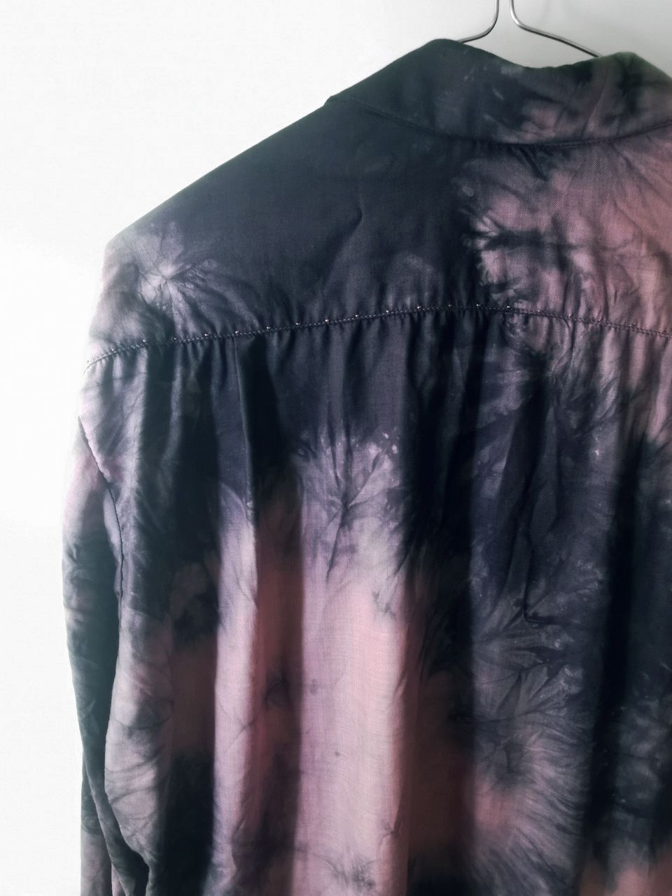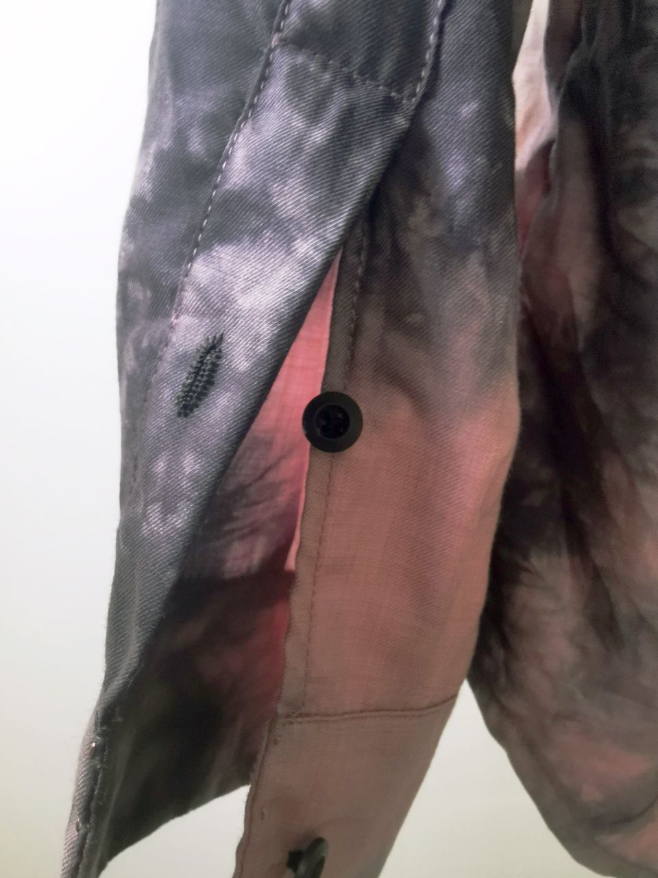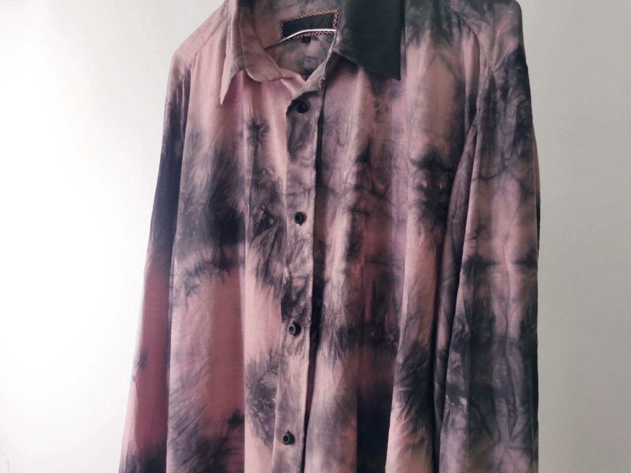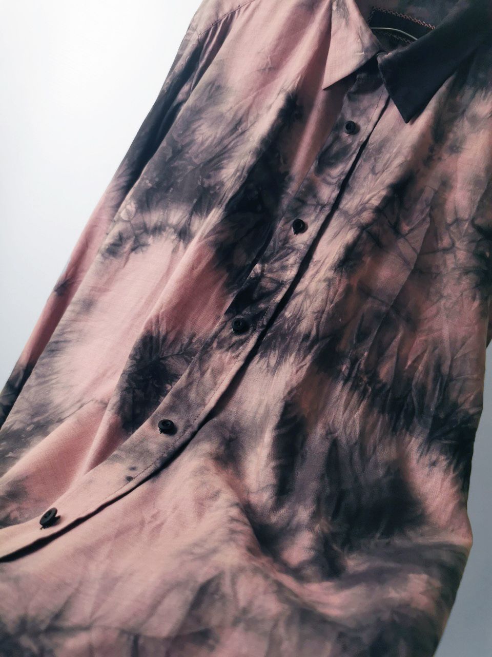 THIS very unique special version of the super limited edition RNS12 shirt design is one of only 2 pieces of its kind made by hand in the entire world. It was created exclusively from a classic European cut tailored shirt pattern from our extensive tailoring research, and cut using the lightest pure cashmere suiting cloth in the world- the superlux “Alashan Breath” pure ultralight 170gram pure cashmere fabric woven by the oldest woolen mill still operating in the world today and the world’s most renowned maker of cashmere fabrics- Fratelli Piacenza 1733 SpA in Pollone Biella... then individually specially GBS hand “accident-dyed” in our workrooms at Cavarzere Venezia using a series of advanced extreme handmade technology GBS process which required over 20 hours of highly specialized work to achieve its amazing mottled colors, patina effects, shaping, drape and incredible softness. The extreme handmade design features an impeccable classic European tailored men’s shirt cut and design, special extensive all handstitched detail work on shoulder and back yoke seams and sleeve cuffs in pure silk threads that involved over 2 and a half hours of master artisan work, expert single-needle stitching throughout, impeccably clean finished all-french-seamed interior construction, all handstitched pure silk thread label detailing work, amazing real horn shirt button designs made for us by the world’s greatest living buttonmakers- Claudio and Cinzia Fontana in Parma Italy, and no less than 12 of our signature hand sewn buttonholes (each one required 10-12 minutes to cut and sew, over 3 hours of ultra-skilled work on buttonholes and buttons for a single shirt) each in luxurious pure silk Bozzolo Reale Milano Seta threads that cost over 1.40 euros per meter for the thread alone. The piece also features our world leading pure silk label created exclusively for us by Mion SpA in Torreglia- the first label in the luxury industry to completely eliminate plastic polyester yarns in it--beautifully attached entirely by hand using pure silk threads.