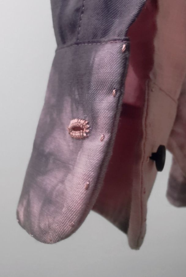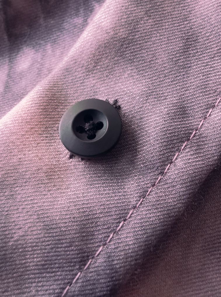 ...amazing real horn shirt button designs made for us by the world’s greatest living buttonmakers- Claudio and Cinzia Fontana in Parma Italy, and no less than 12 of our signature hand sewn buttonholes (each one required 10-12 minutes to cut and sew, over 3 hours of ultra-skilled work on buttonholes and buttons for a single shirt) each in luxurious pure silk Bozzolo Reale Milano Seta threads that cost over 1.40 euros per meter for the thread alone...