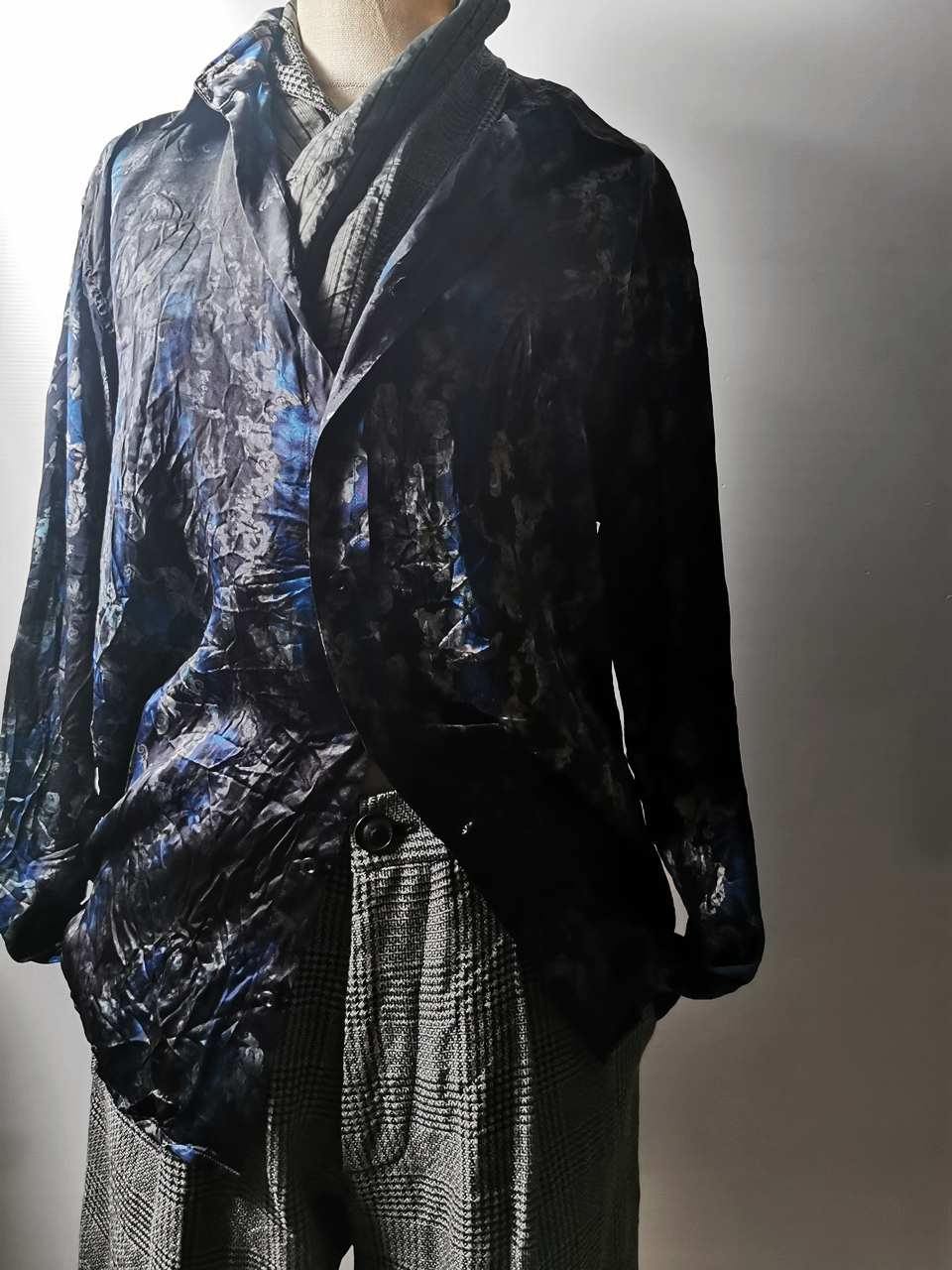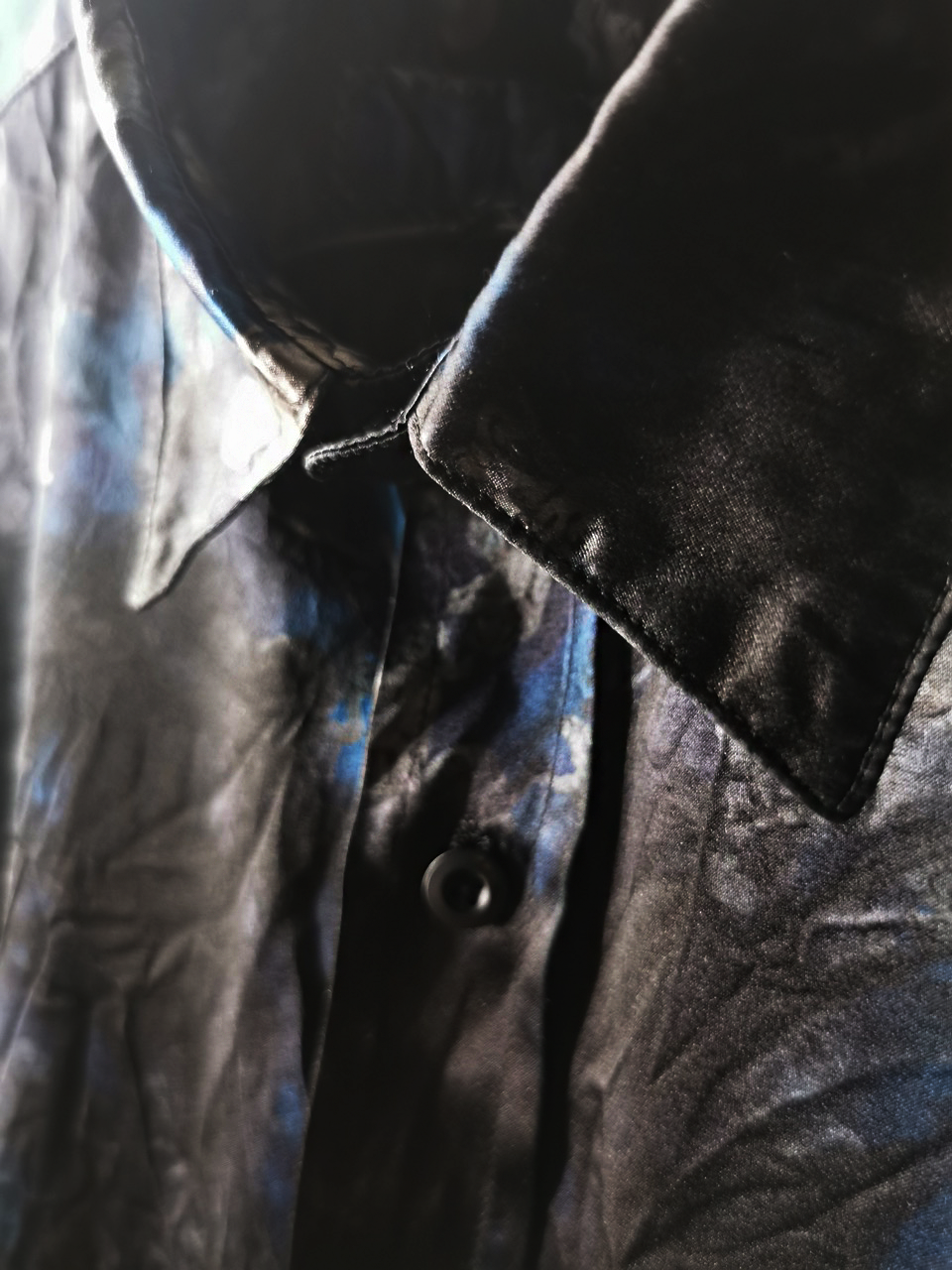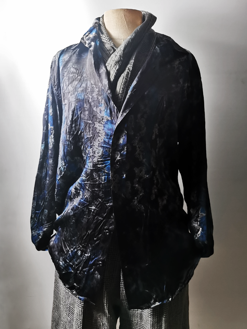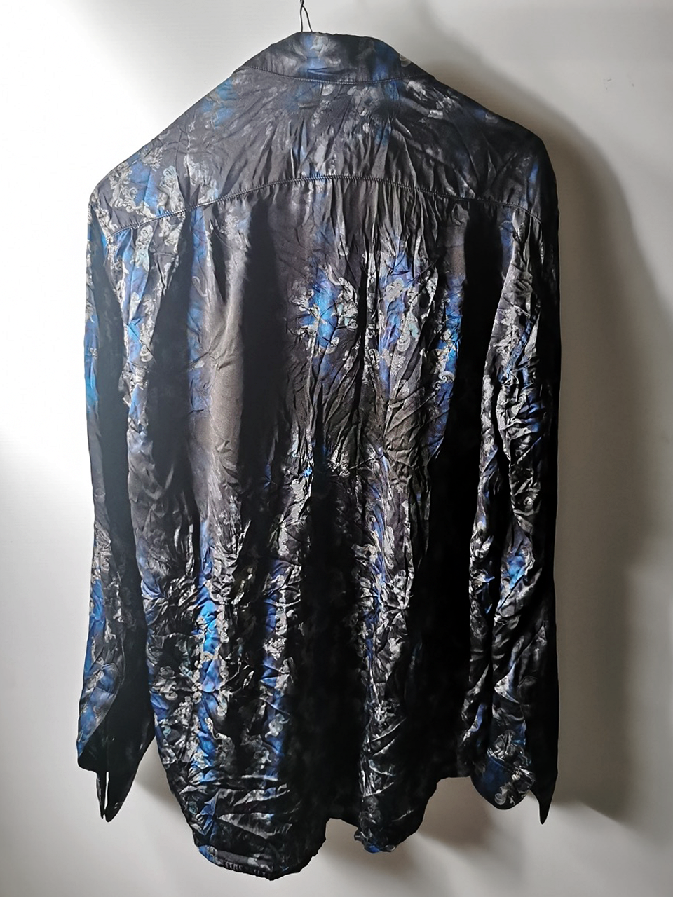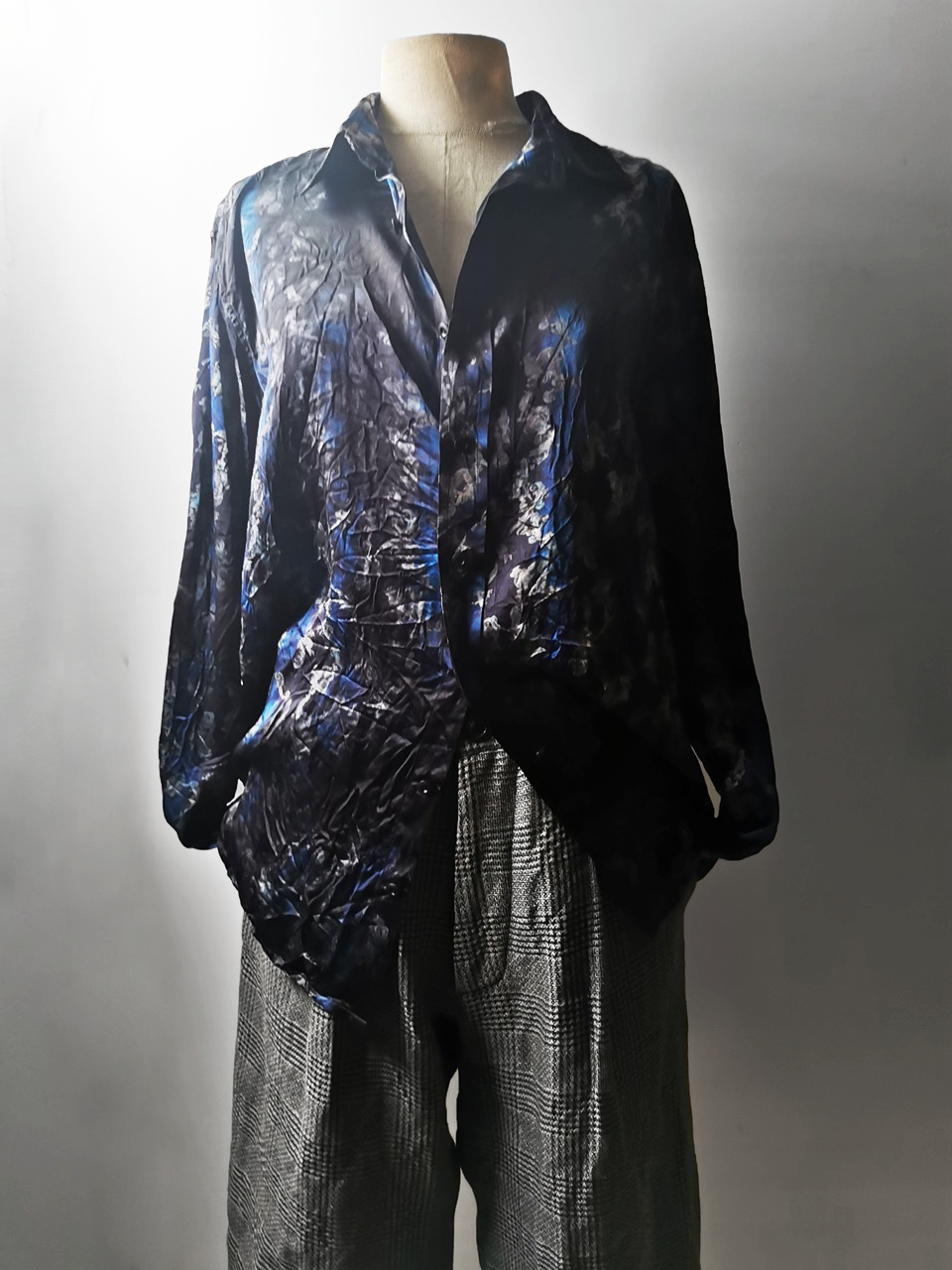 Created in a super limited series of just 8 examples in the world each exclusively for Darklands in Berlin, this amazing shirt is both a pure GBS collector's design piece and an extremely versatile superlux avant-garde wardrobe investment. Its dramatic print design, incredible materials, components, construction and advanced proportions provide superb comfort, ease of movement, and can be worn by men and women in a wide range of ways for travel, work and social occasions. Designed and built like no other silk shirt in the world... the GBS RNS12special is a luxury wardrobe investment of long-term value.