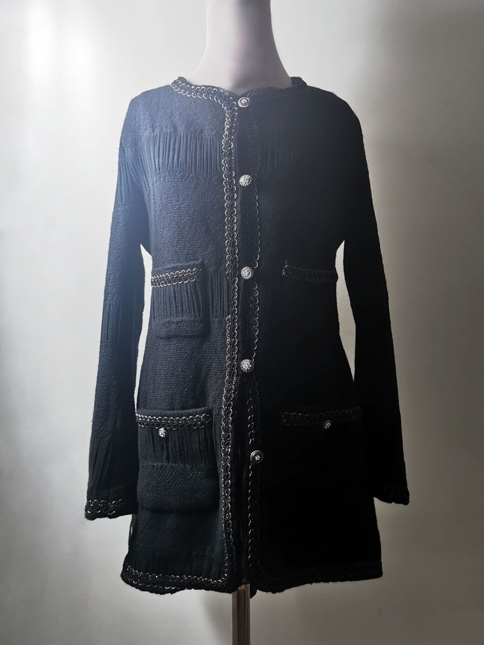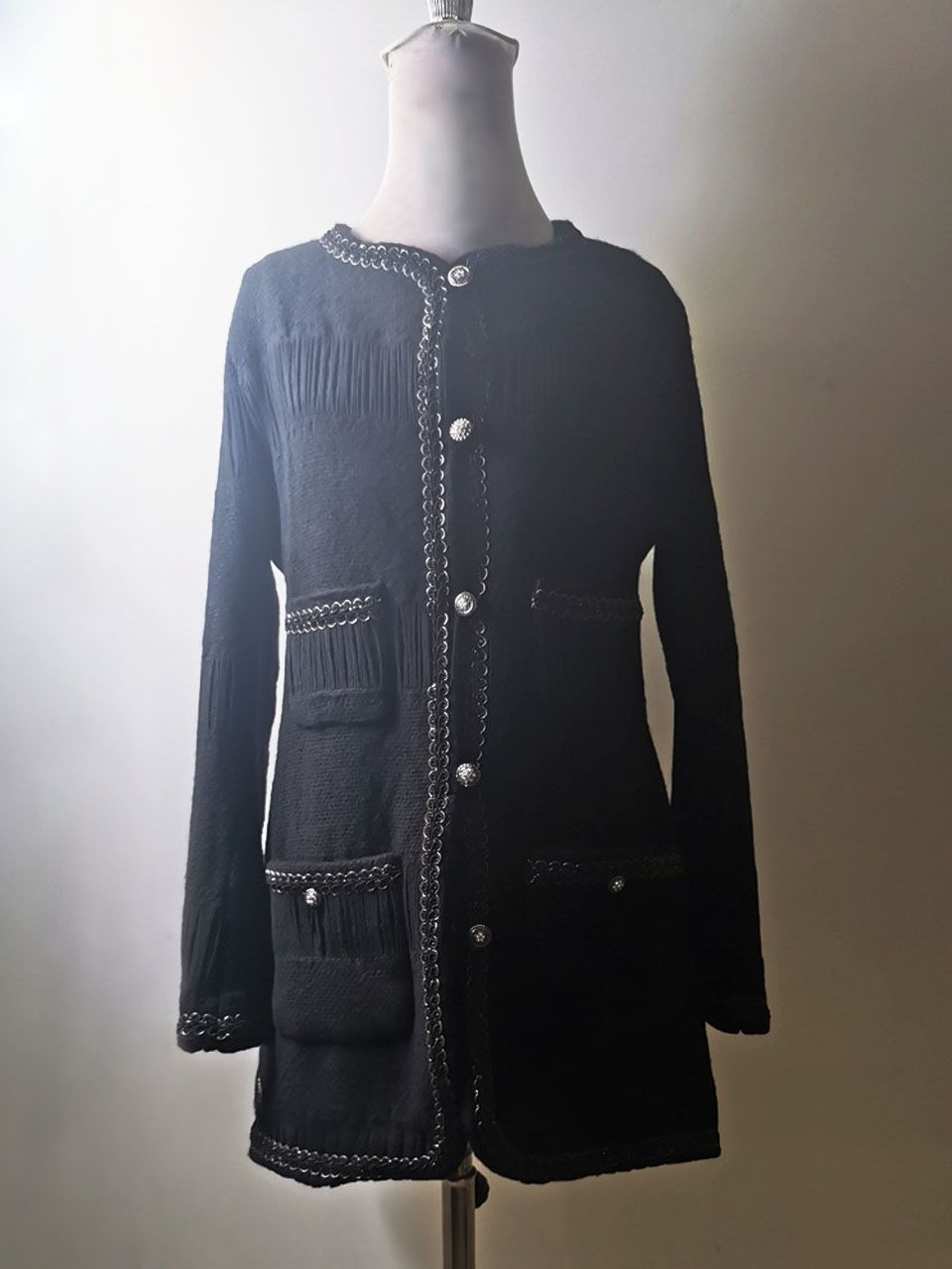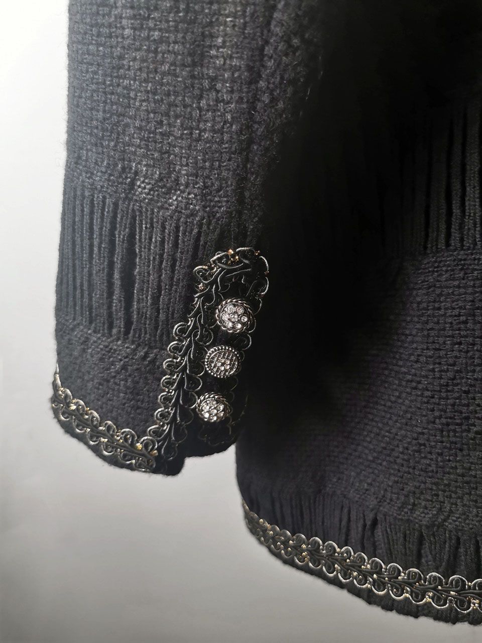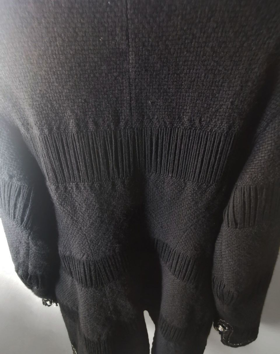 THIS special hand dyed black version of the super limited edition RSWJ05 handmade jacket design is one of only 2 pieces of its kind made by hand in the entire world, each exclusively from a design that was created specially for the 2016 “Examen Reginae” collection, the most extreme hand built women’s collection ever presented in Paris for ready to wear. It was made using our original modified mid-length late 20th century single-breasted 5-button 4-pocket jacket pattern from our extensive tailoring research, and individually cut by hand using an amazing exclusive “jump weave” design fabric entirely woven by hand using pure Merino wool yarns by Carlo Colombo at Tessitura La Colombina in Badoere di Morgano, where it takes 3 days working on one of the original 18th century looms carefully kept and maintained for generations to make enough cloth just to make a single jacket. It was then fully-lined with luxury pure silk 16 momme raso satin exclusive abstract floral print design made only for us by the legendary Brenna from Como Italy--the world’s leading center for fine silk fabric creation--then specially double hand dyed in our world-famous GBS Superworkrooms at Cavarzere Venezia with a painstaking process which required over 2 full days to achieve its beautiful black and mottled lining colors, patina effects, shaping and softness. The design features exquisite interior metal hem chains made exclusively for us in Padova attached to the bodice hemlines all by our extreme skill handwork, entirely hand sewn pockets and luxury metallicized Venetian lace and trim details all around jacket fronts-sleeves-pockets also attached entirely by hand, beautiful handstitched detailing work all around the interior linings and facings, stunning jeweled buttons made exclusively for us in Padova, Italy-- and no less than 13 of our signature silk hand-stitched buttonholes and button loops (each one required 12-18 minutes to cut and sew each one on the challenging handwoven fabric) in luxurious pure silk Bozzolo Reale Milano Seta threads. The special piece is handsigned and numbered by the designer and also features our world leading pure silk label created exclusively for us by Mion SpA in Torreglia which is the first label in the luxury industry to completely eliminate plastic polyester yarns in it—beautifully attached all by hand using pure silk thread. Variations in color and color density, as well as various yarn and weave disparities, are not imperfections or irregularities, but specific characteristics of the special fabric, and hand making technique. Please treat buttons and buttonholes with extreme care. We recommend professional clean only or hand wash cold water and protecting buttons with foil or plastic wrap when washing. Do not put in washing machine or machine dryer.