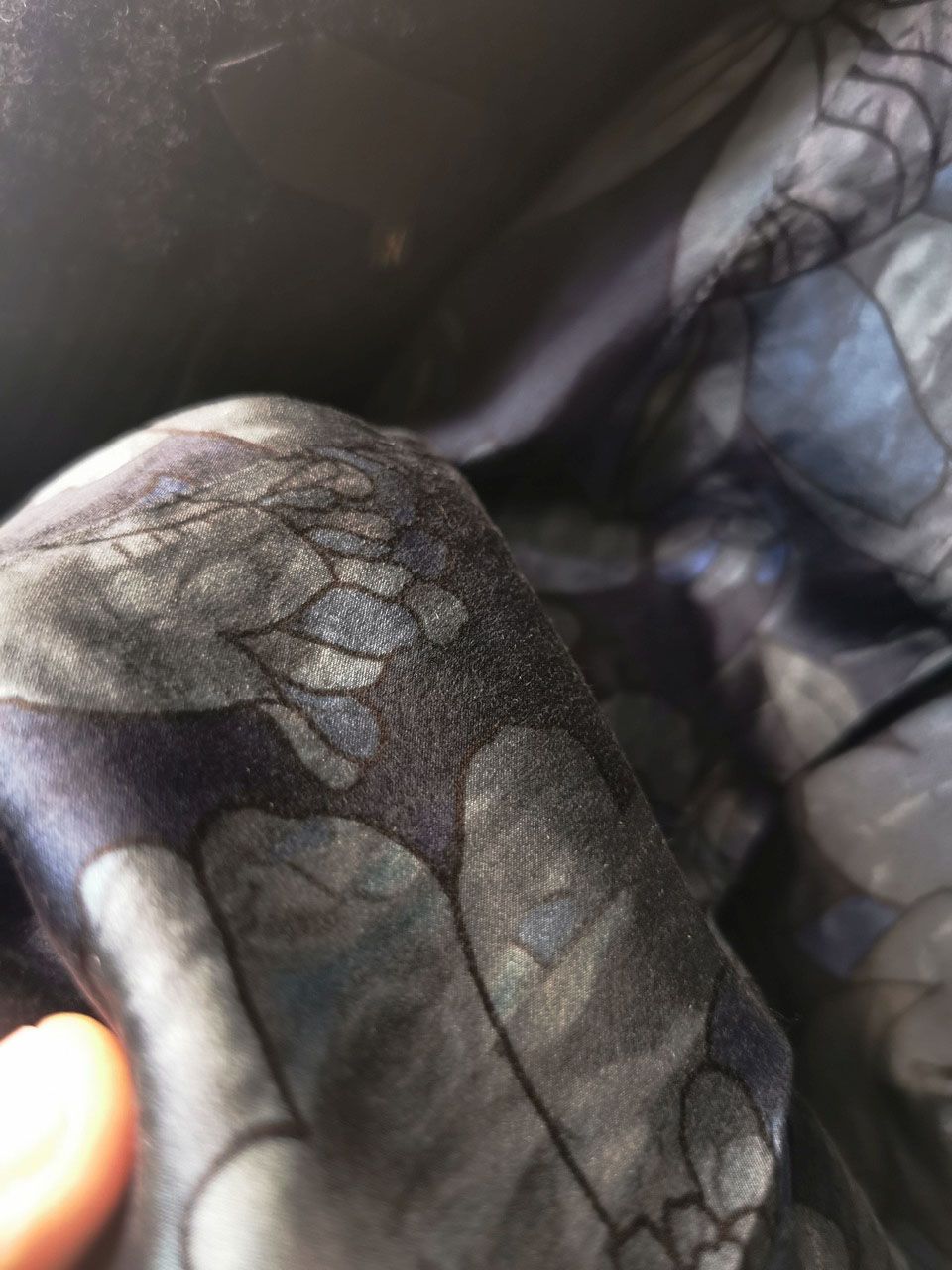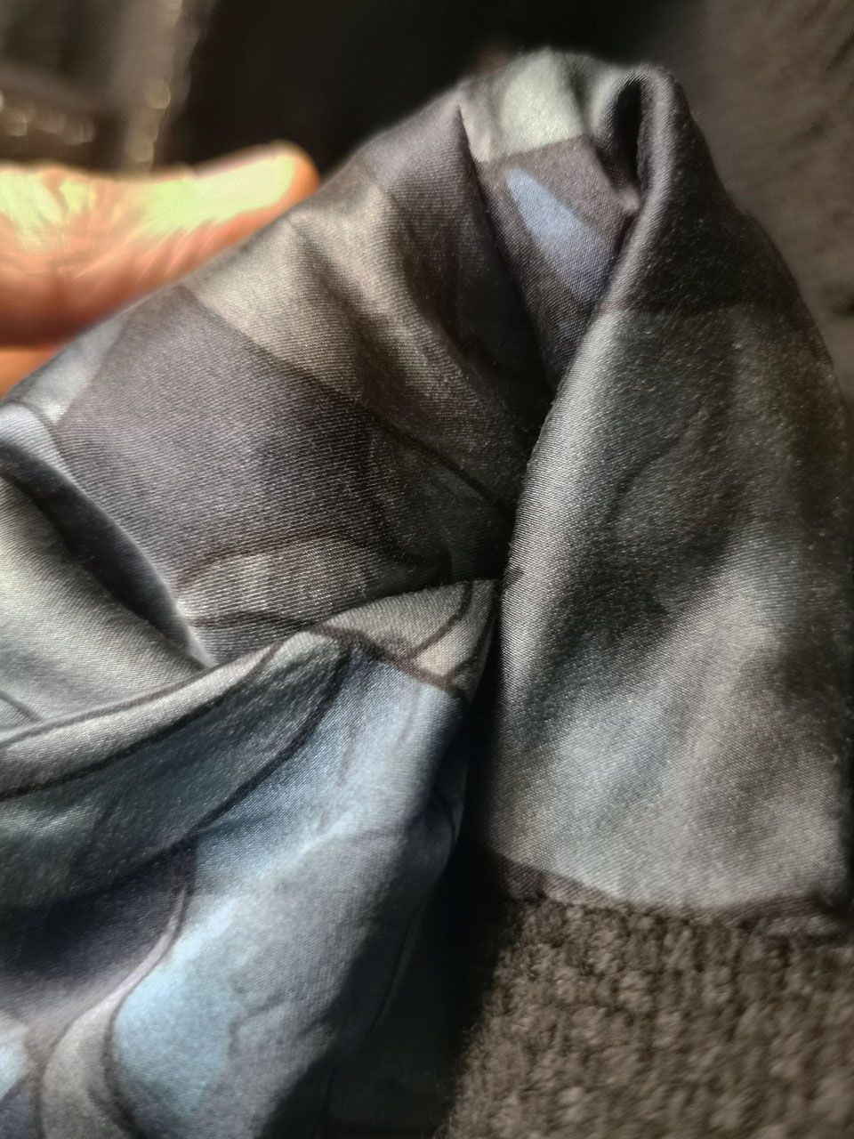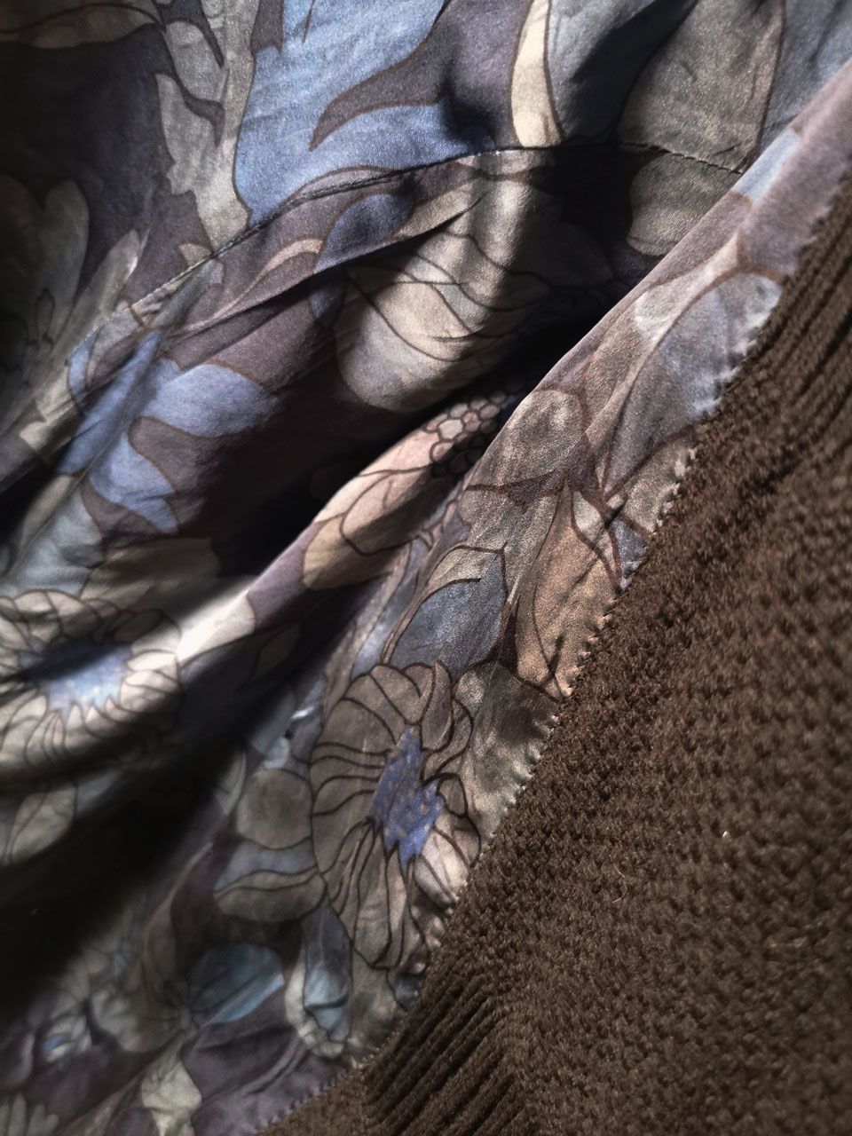 It was then fully-lined with luxury pure silk 16 momme raso satin exclusive abstract floral print design made only for us by the legendary Brenna from Como Italy--the world’s leading center for fine silk fabric creation--then specially double hand dyed in our world-famous GBS Superworkrooms at Cavarzere Venezia with a painstaking process which required over 2 full days to achieve its beautiful black and mottled lining colors, patina effects, shaping and softness...