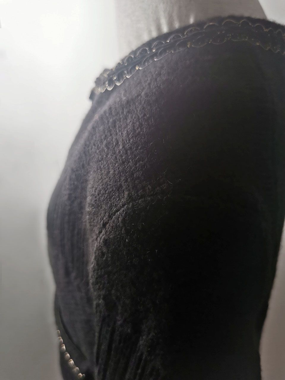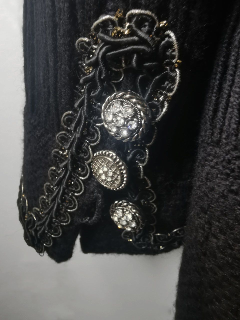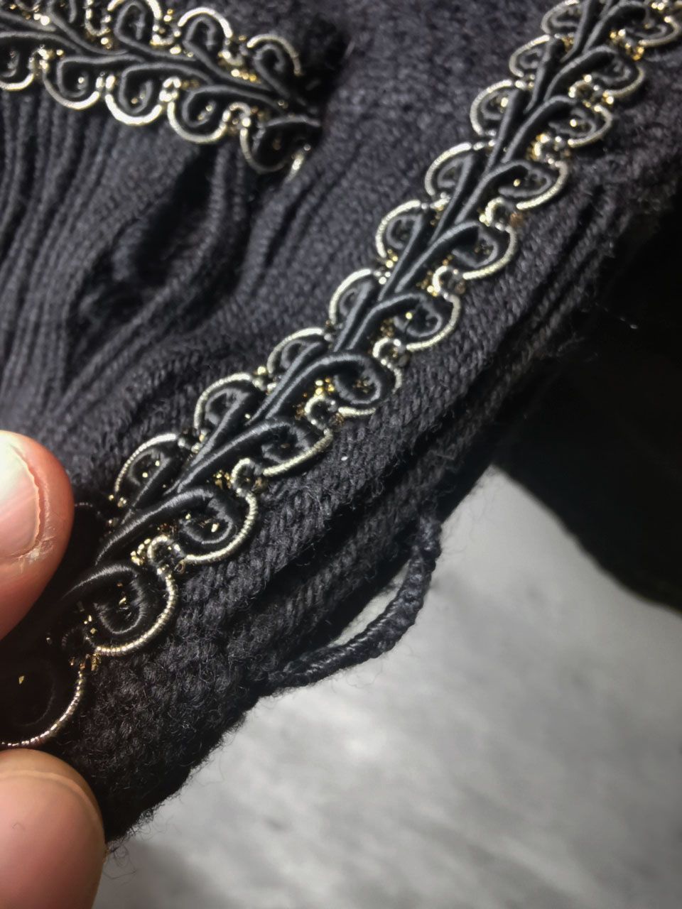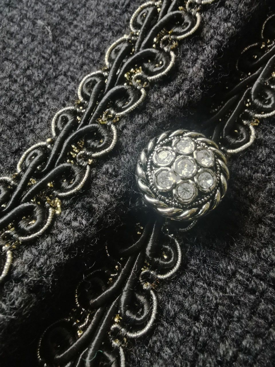 The design features exquisite interior metal hem chains made exclusively for us in Padova attached to the bodice hemlines all by our extreme skill handwork, entirely hand sewn pockets and luxury metallicized Venetian lace and trim details all around jacket fronts-sleeves-pockets also attached entirely by hand, beautiful handstitched detailing work all around the interior linings and facings...