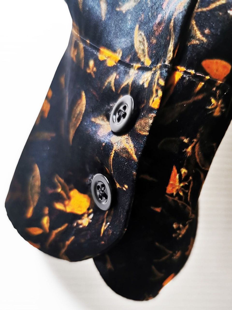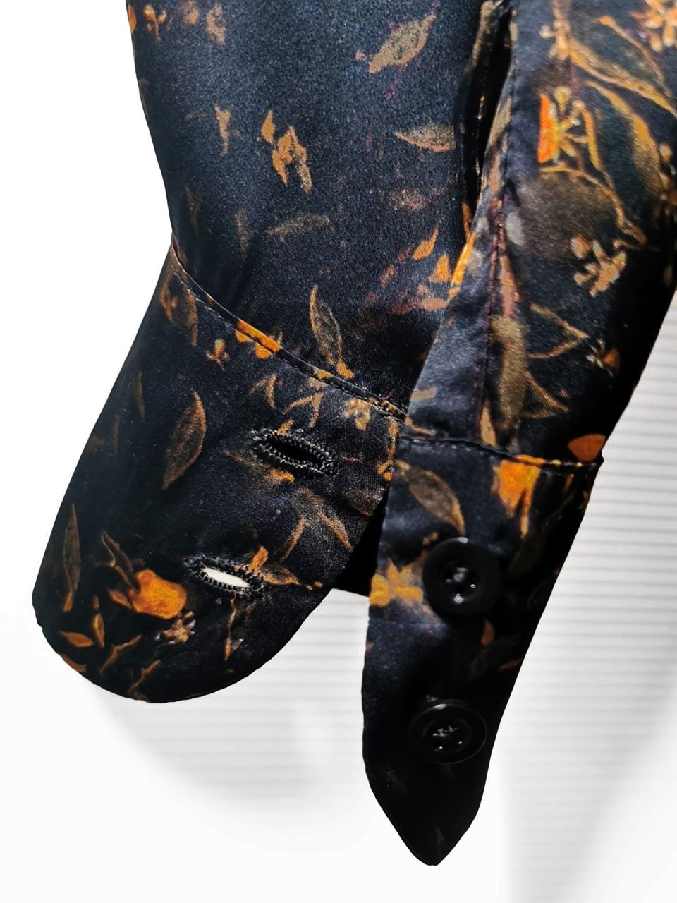 PURE COMO SILK 16 MOMME RASO SATIN EXCLUSIVE BOTTICELLI FLORAL PRINT FABRIC WITH SILK HANDMADE BUTTONHOLES & REAL MOTHER-OF-PEARL SHIRT BUTTONS