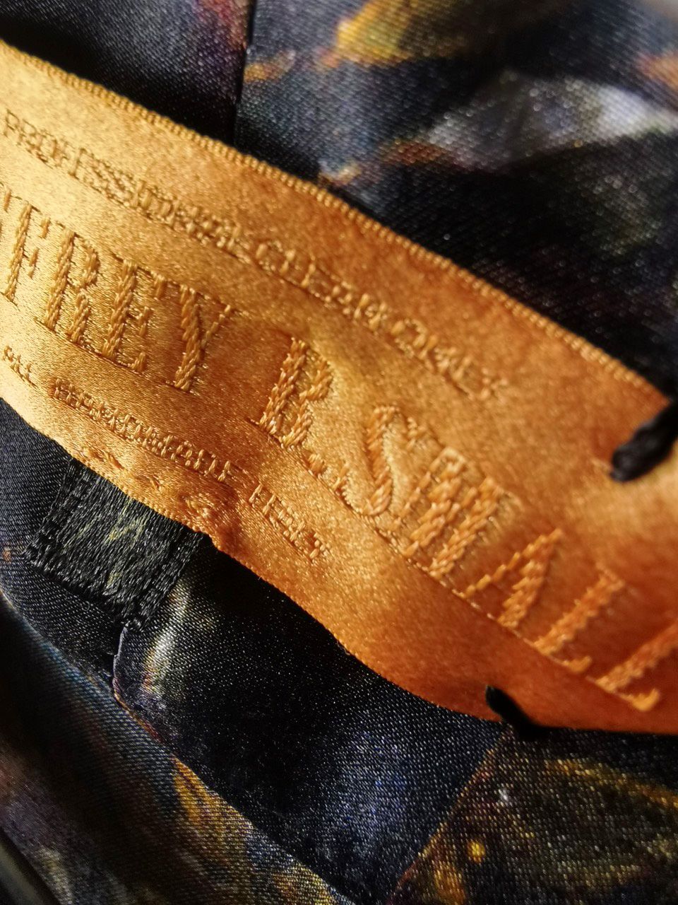 The piece also features our world leading pure silk hand dyed label created exclusively for us by Mion SpA in Torreglia which is the first label in the luxury industry to completely eliminate plastic polyester yarns in it—beautifully attached entirely by hand using pure silk threads...