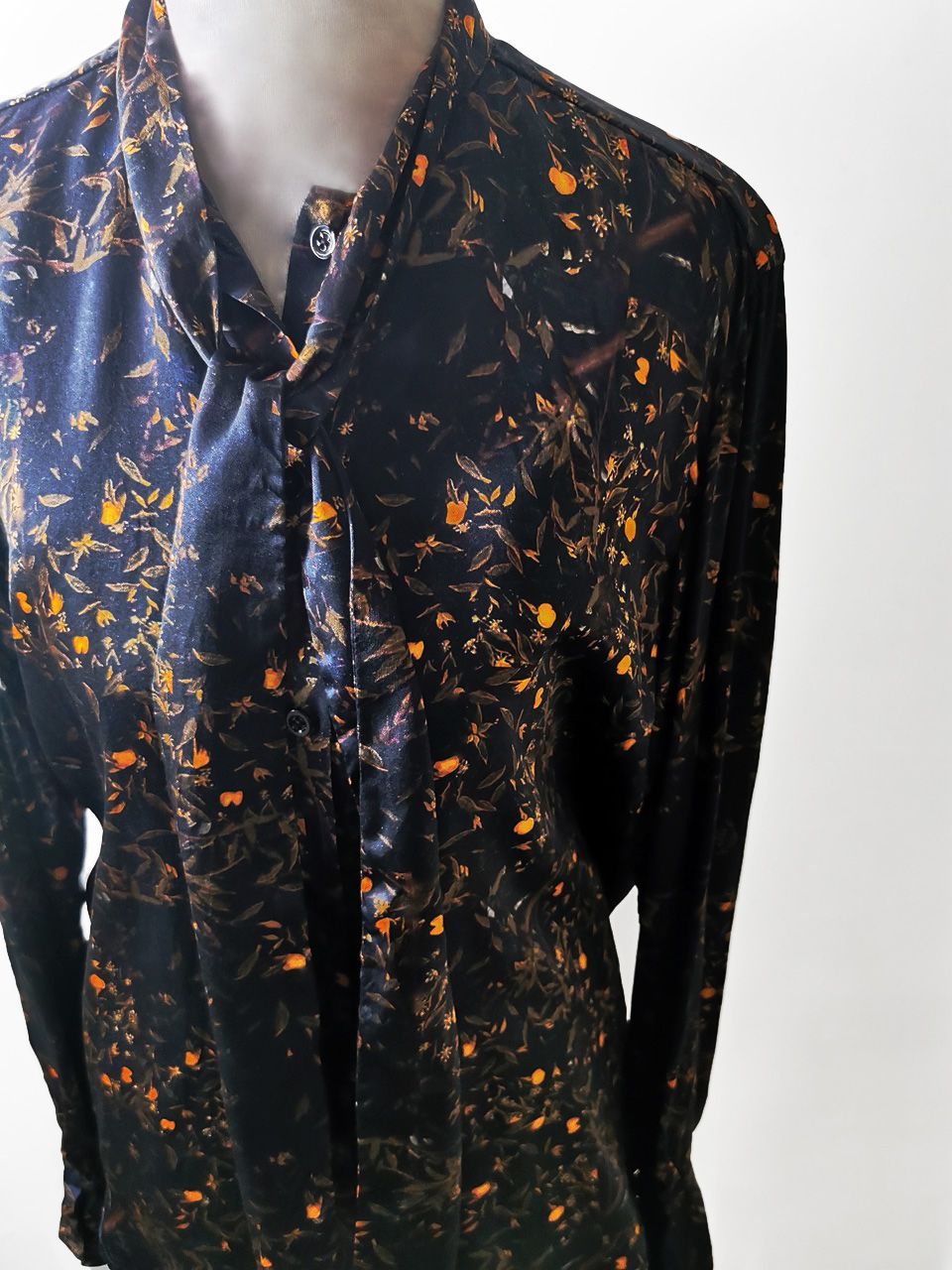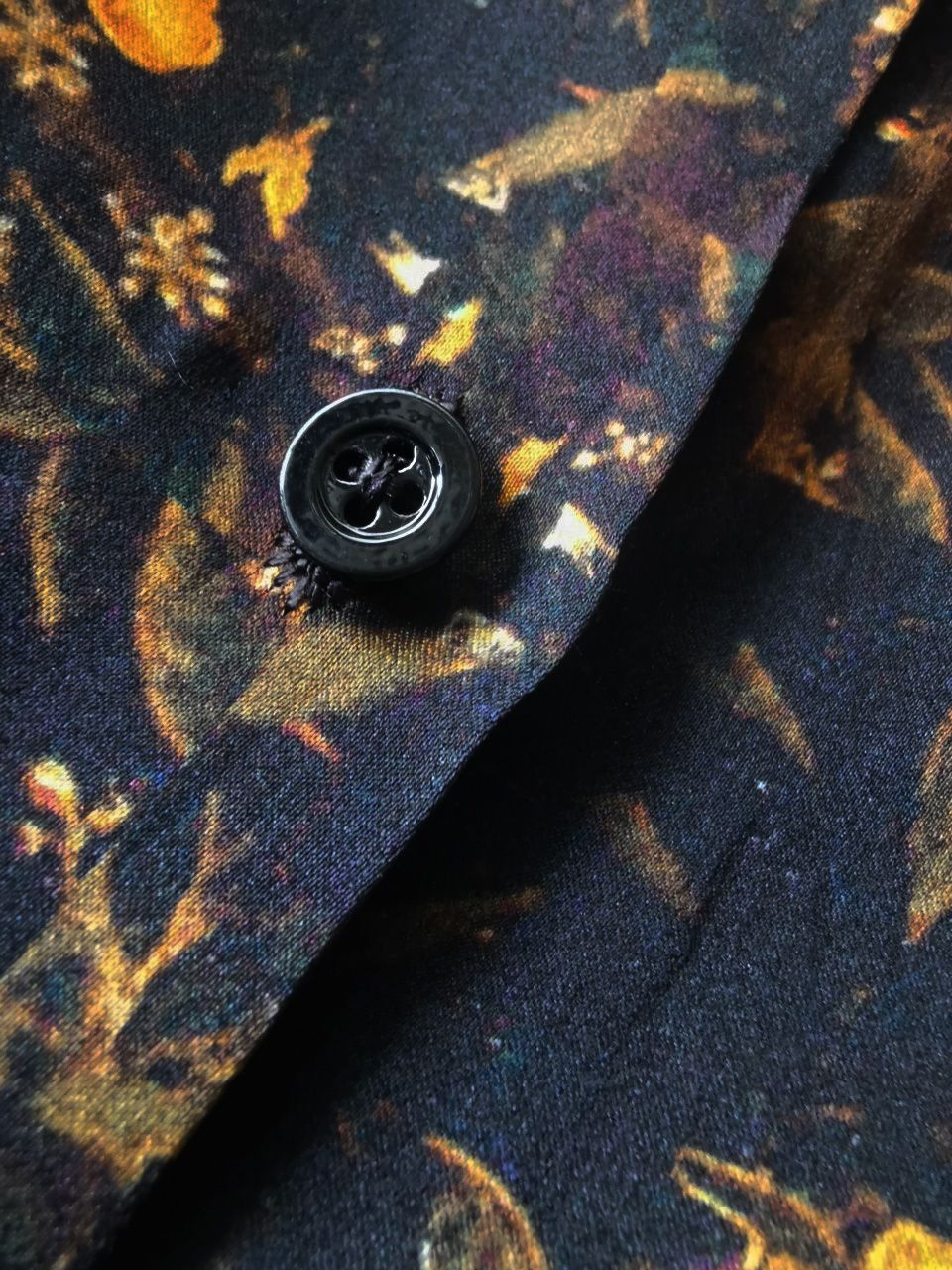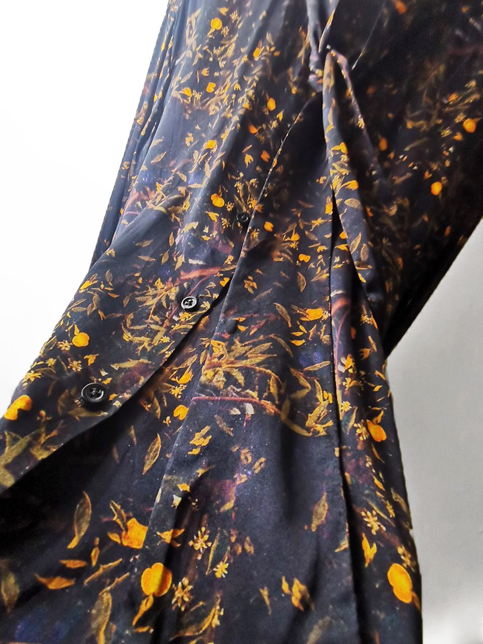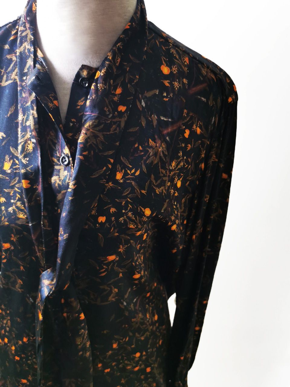 THIS special version of the super limited edition SEWS03 handmade shirt design is one of only 2 pieces of its kind made by hand in the entire world, each exclusively for Journal Standard Luxe in Japan from our collar-tie long sleeves shirt pattern from our extensive tailoring research and cut using a pure silk 16 momme raso satin exclusive Botticelli floral print fabric made only for us by the legendary Brenna family in Como, Italy--the world’s leading center for fine silk fabric creation--then individually washed and treated by hand in our world-famous GBS Superworkrooms at Cavarzere Venezia for extra aging, shaping, drape and incredible softness...