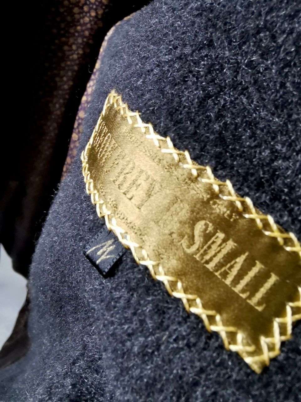 ...the piece also features our world leading pure silk label created exclusively for us by Mion SpA in Torreglia which is the first label in the luxury industry to completely eliminate plastic polyester yarns in it—specially hand dyed to a beautiful "Old gold" color as the exclusive label for our newest extreme high value works project for GBS Private at Le Berger in Japan--beautifully attached entirely by hand using pure silk threads; and is hand-signed and numbered by the designer.